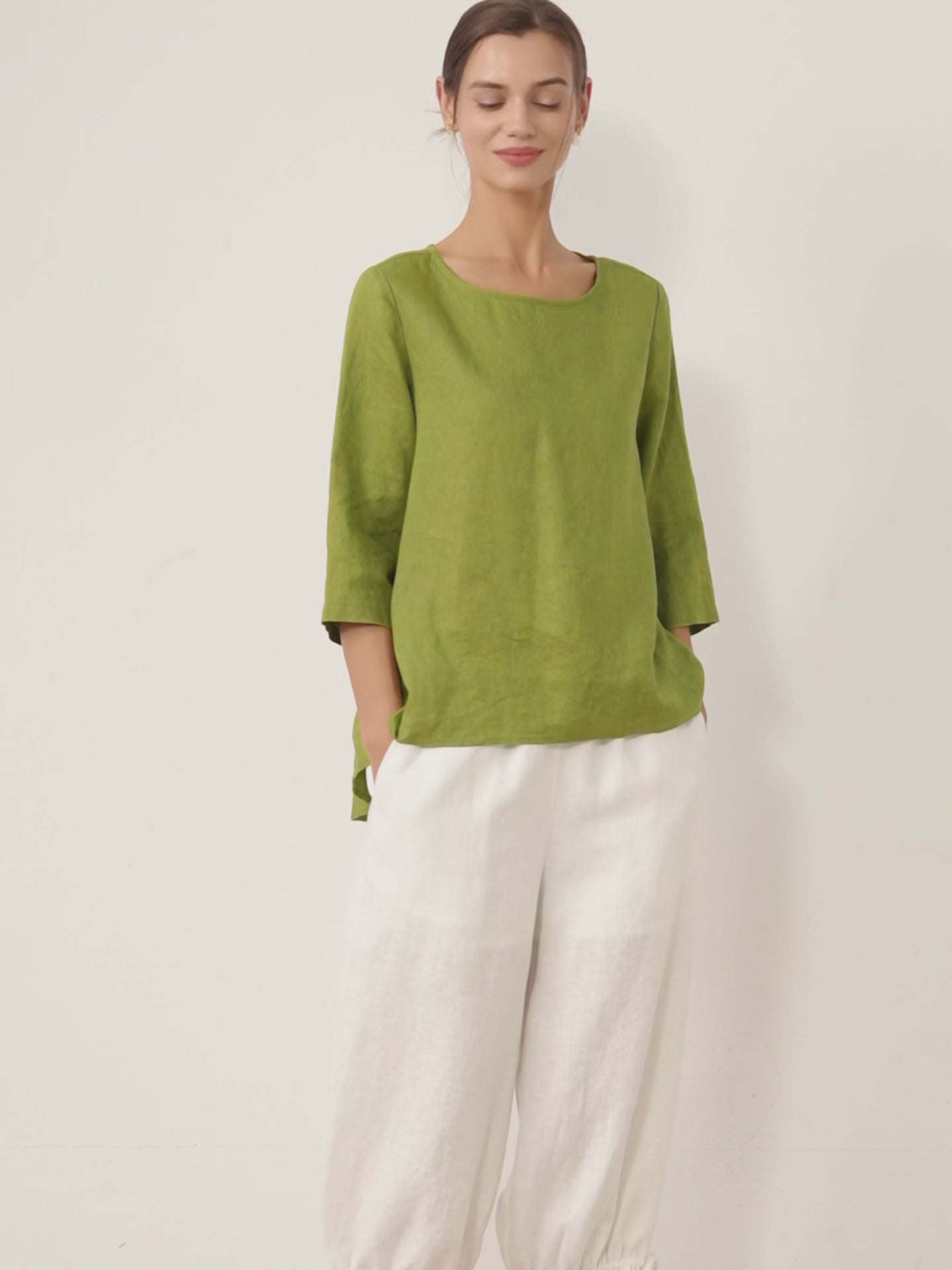 Haut en lin 100% à col rond et ourlet asymétrique BRIANNA