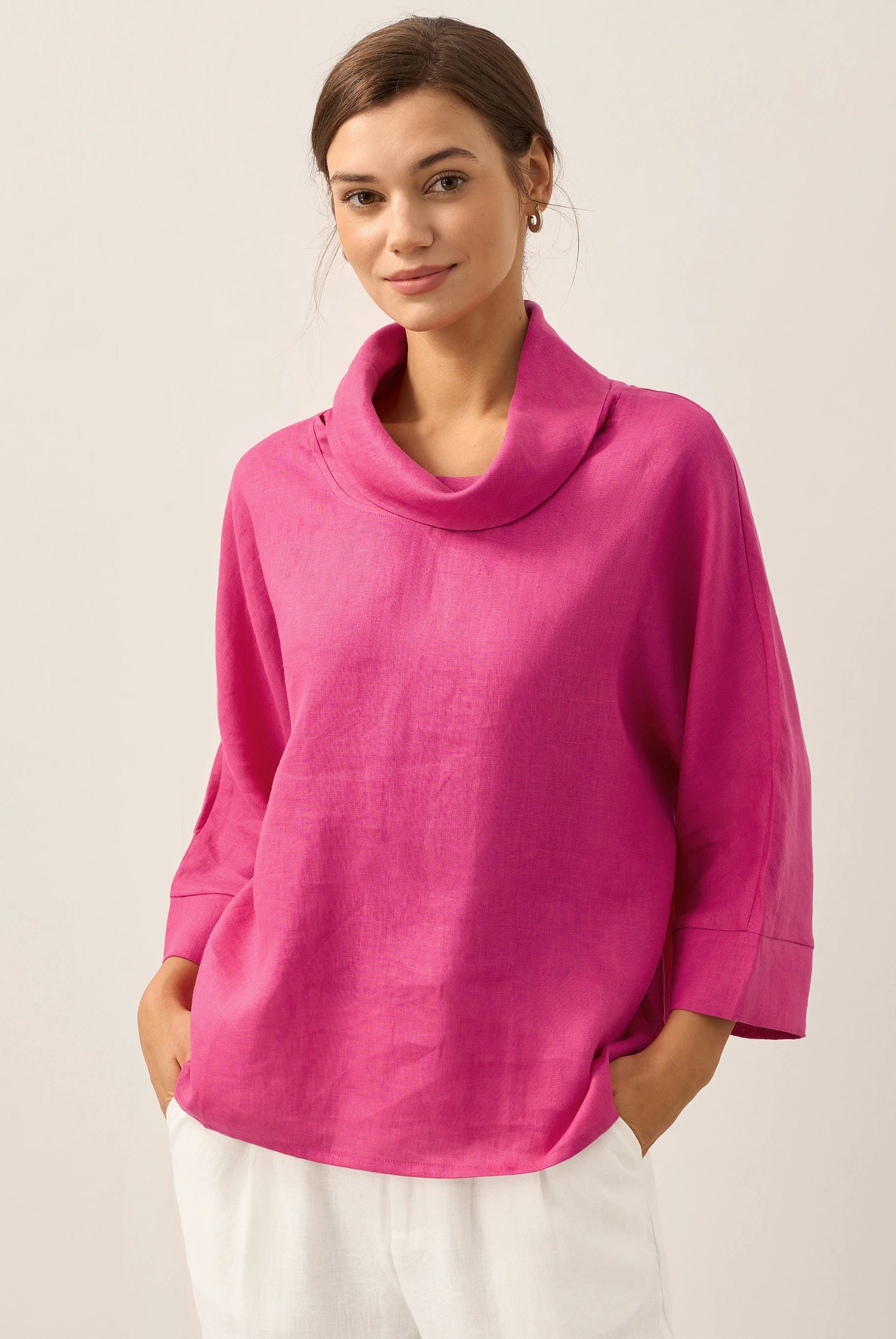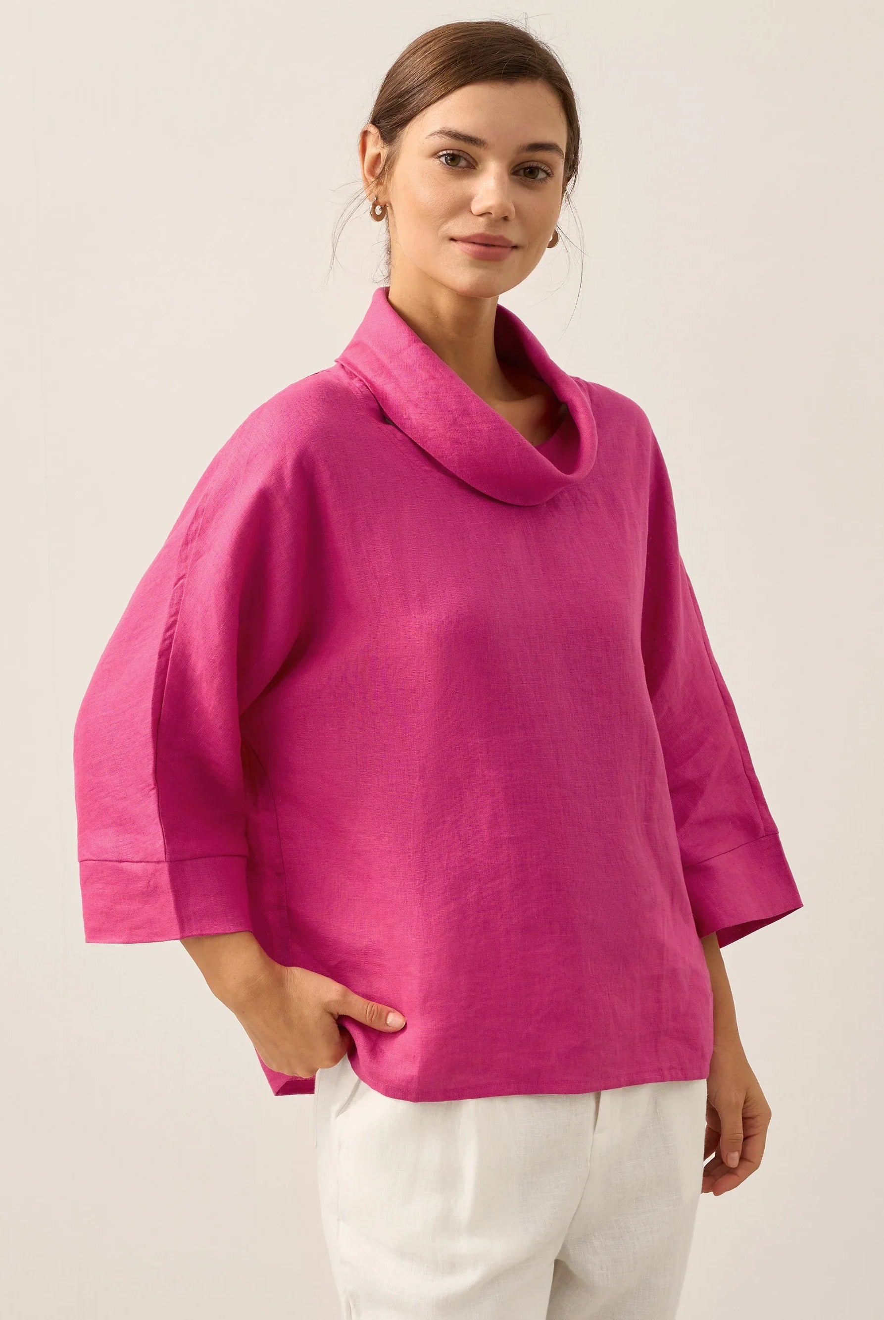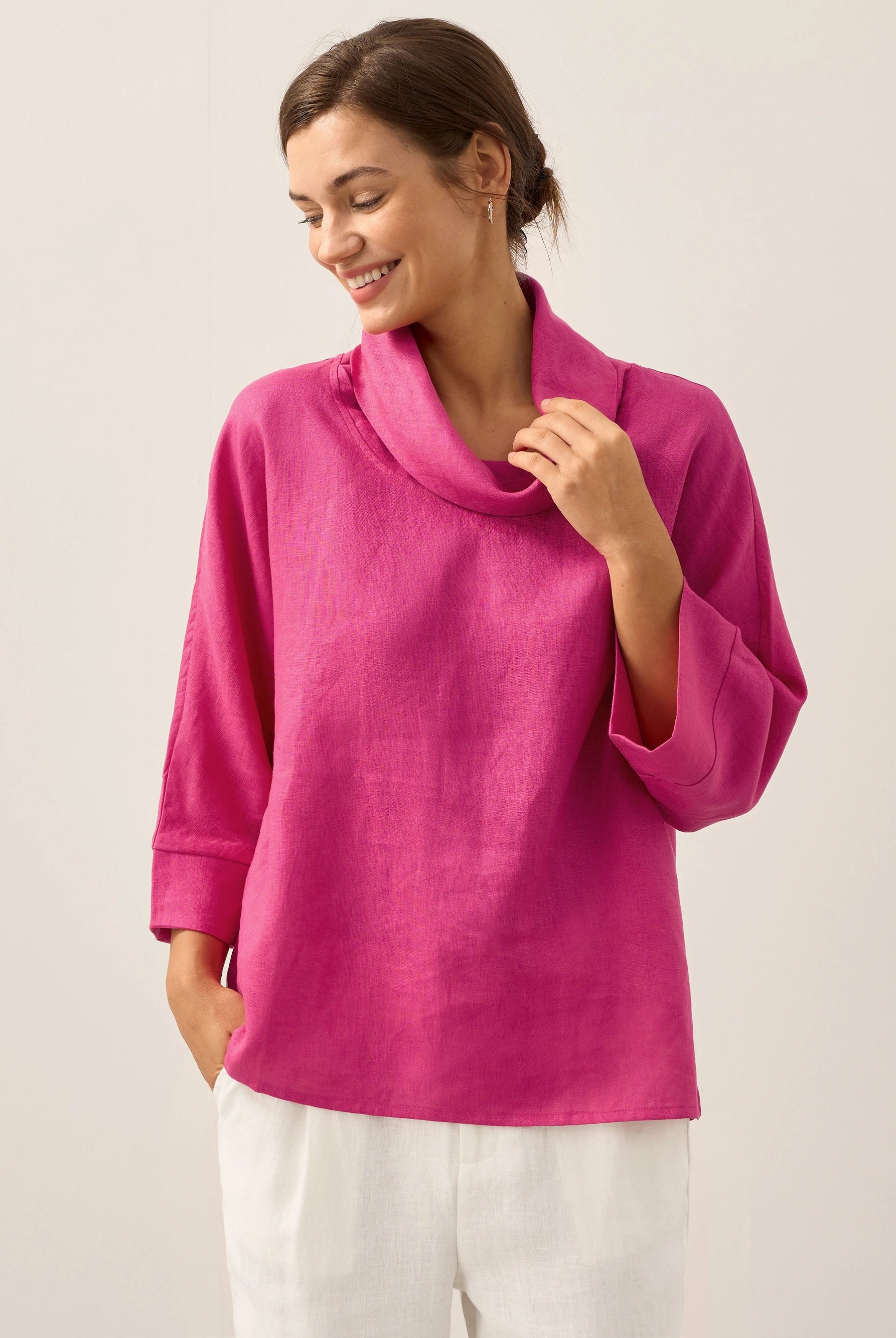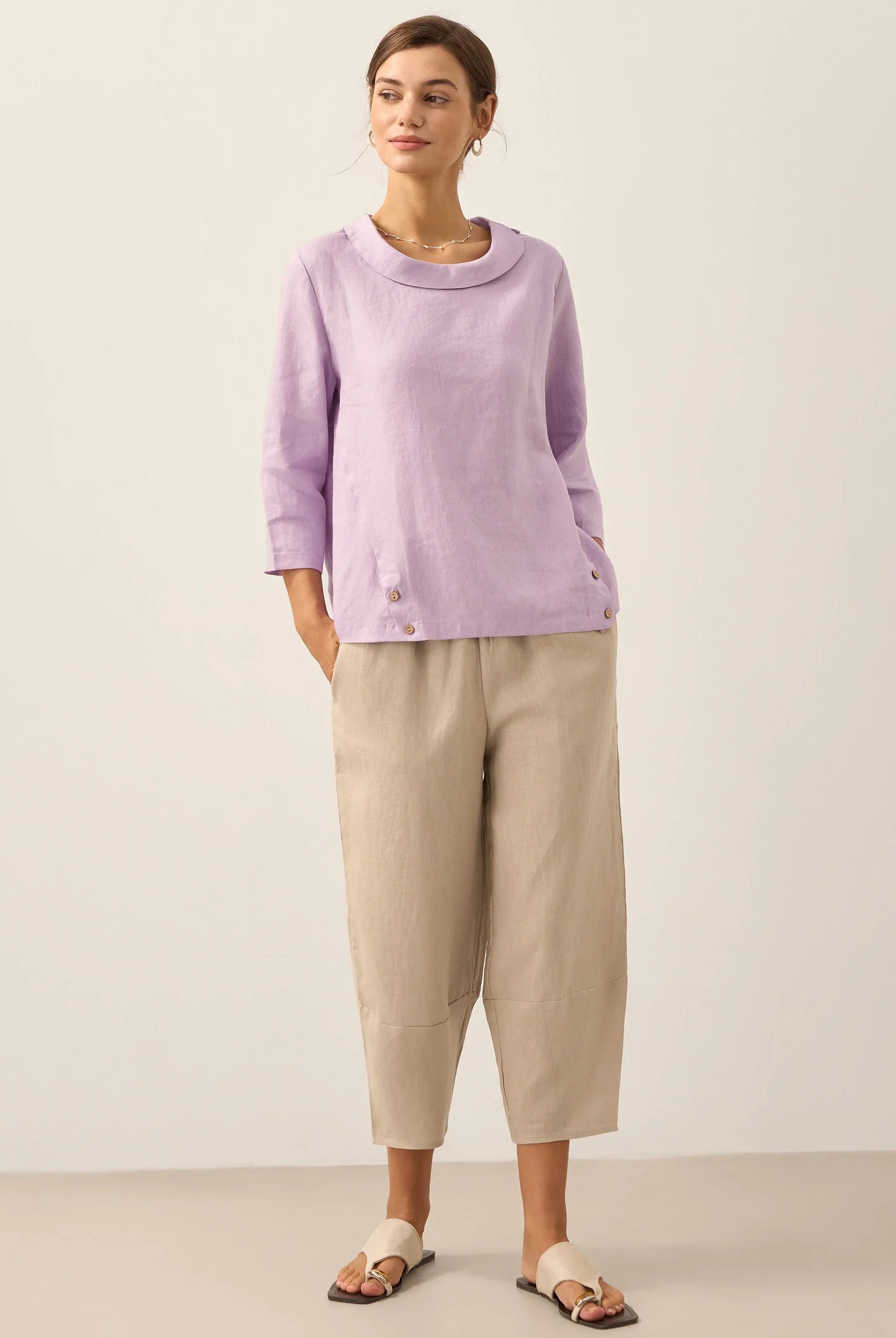 These trousers are created from a breathable Lyocell-wool blend. With the adjustable drawstring waist and flattering drape, they will become a favorite for sure.