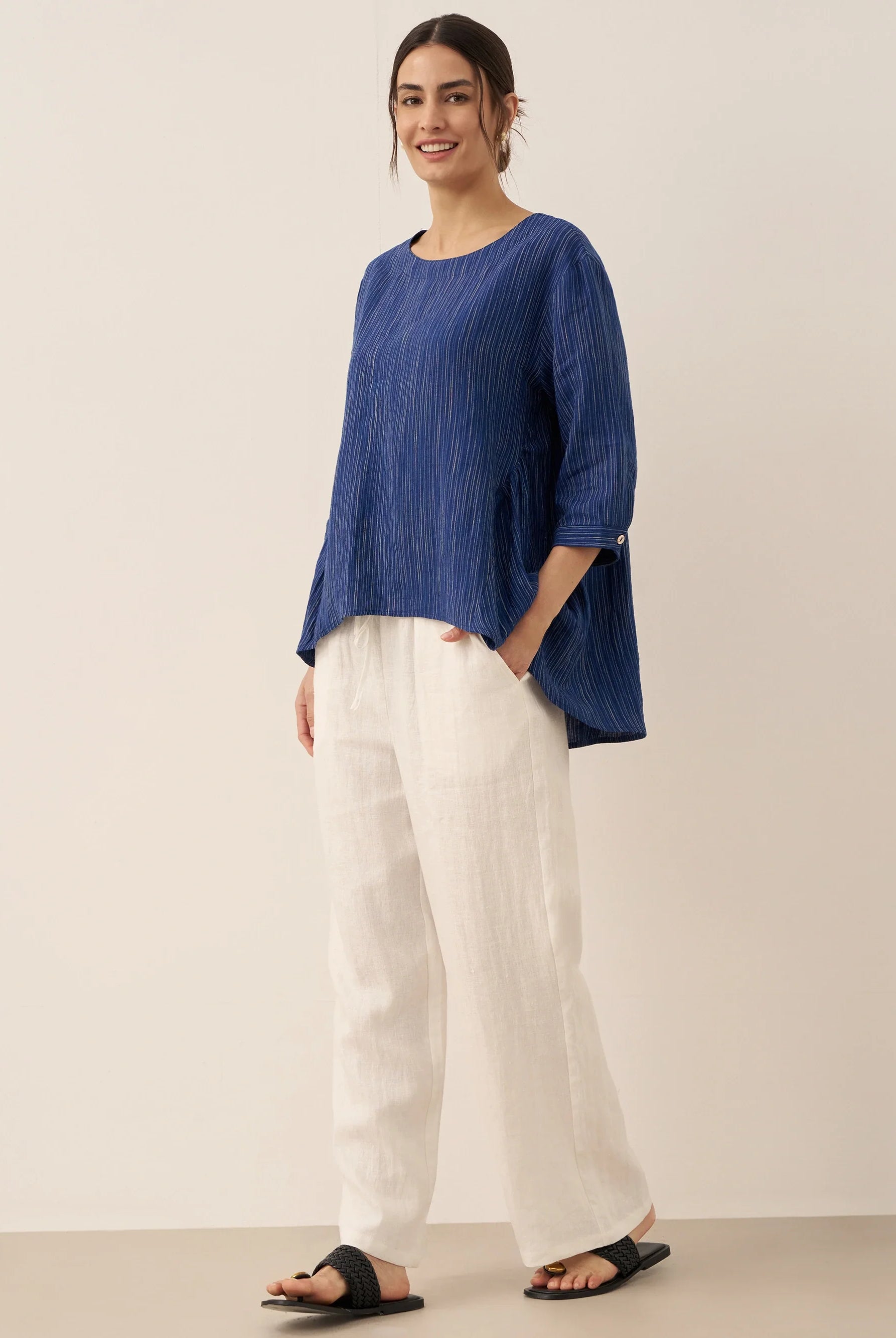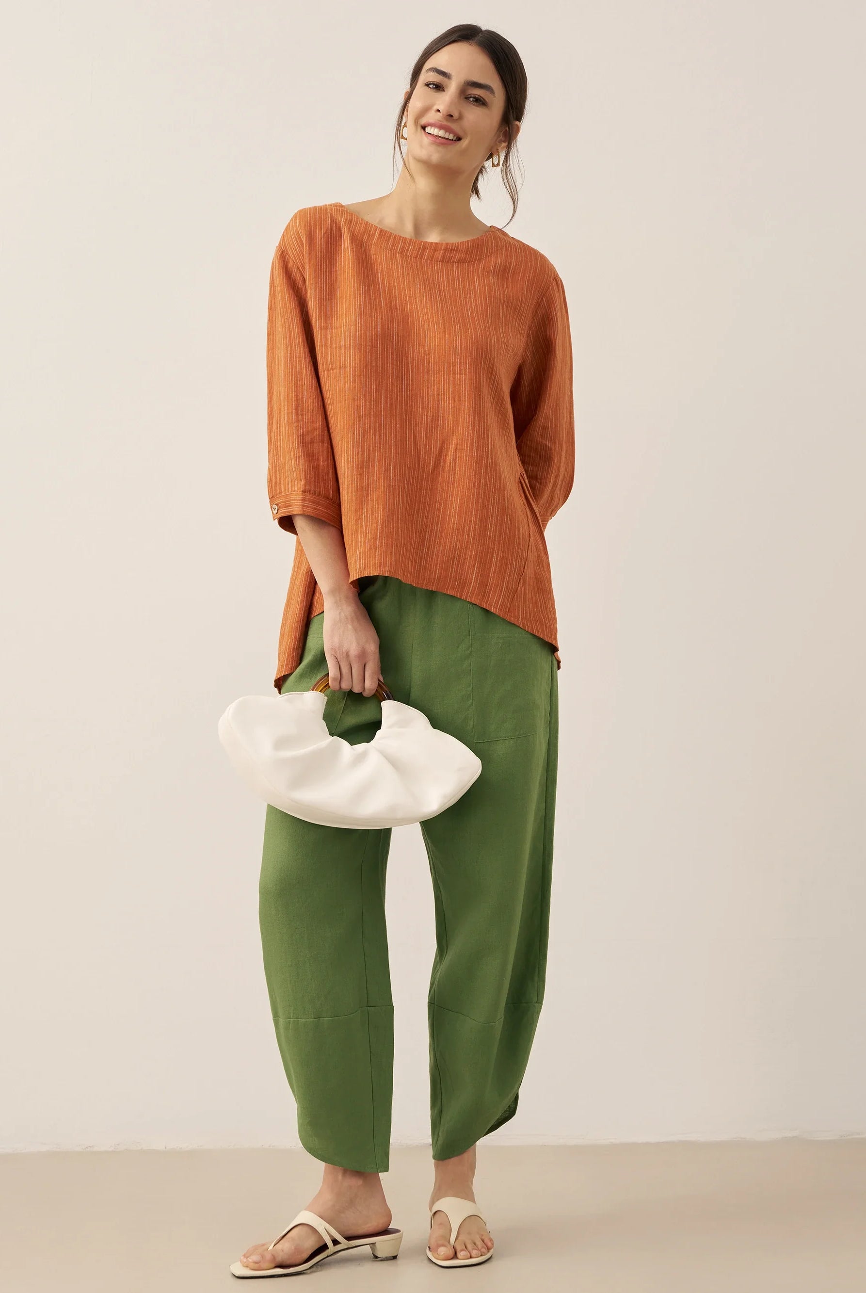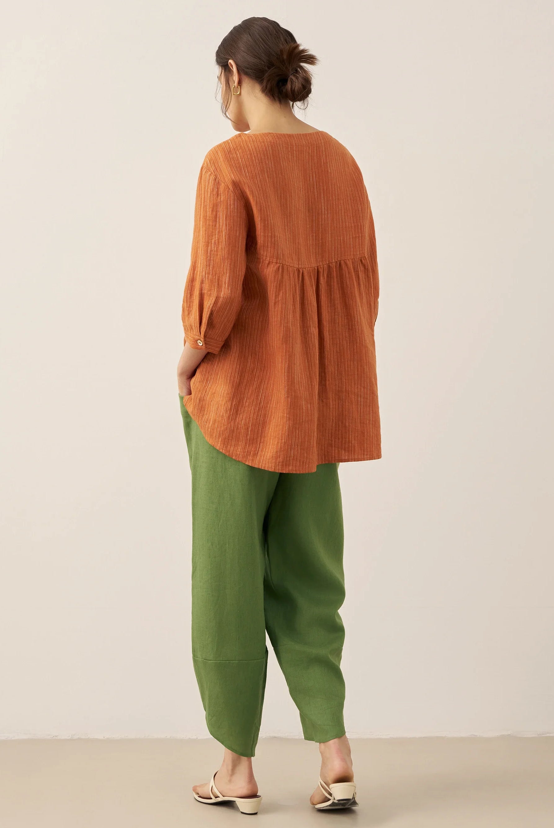The Tamsin trousers have the most gorgeous pintuck detail that elongates the legs, and drawstring waist for all day comfort. I got the M and the fit is perfect.