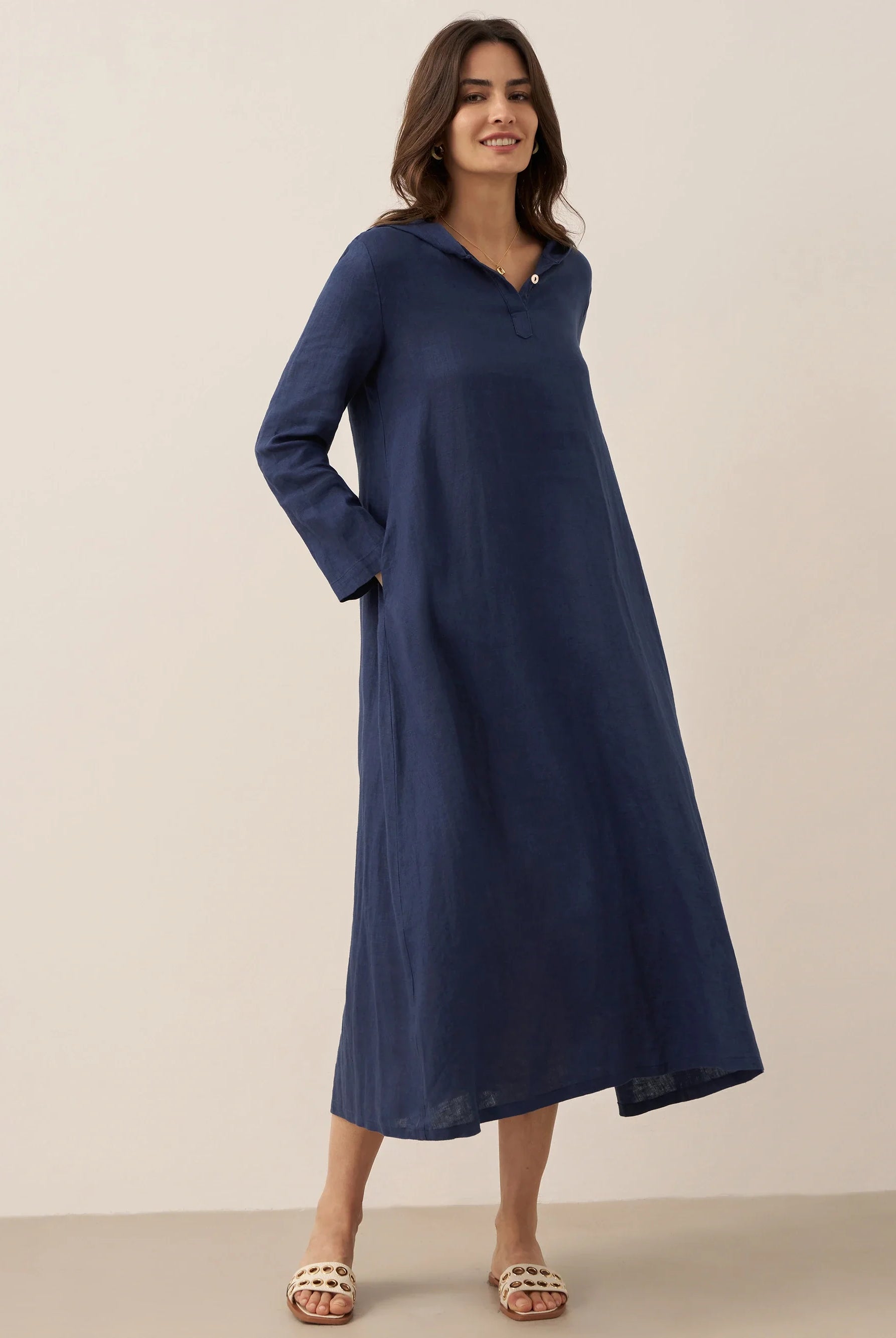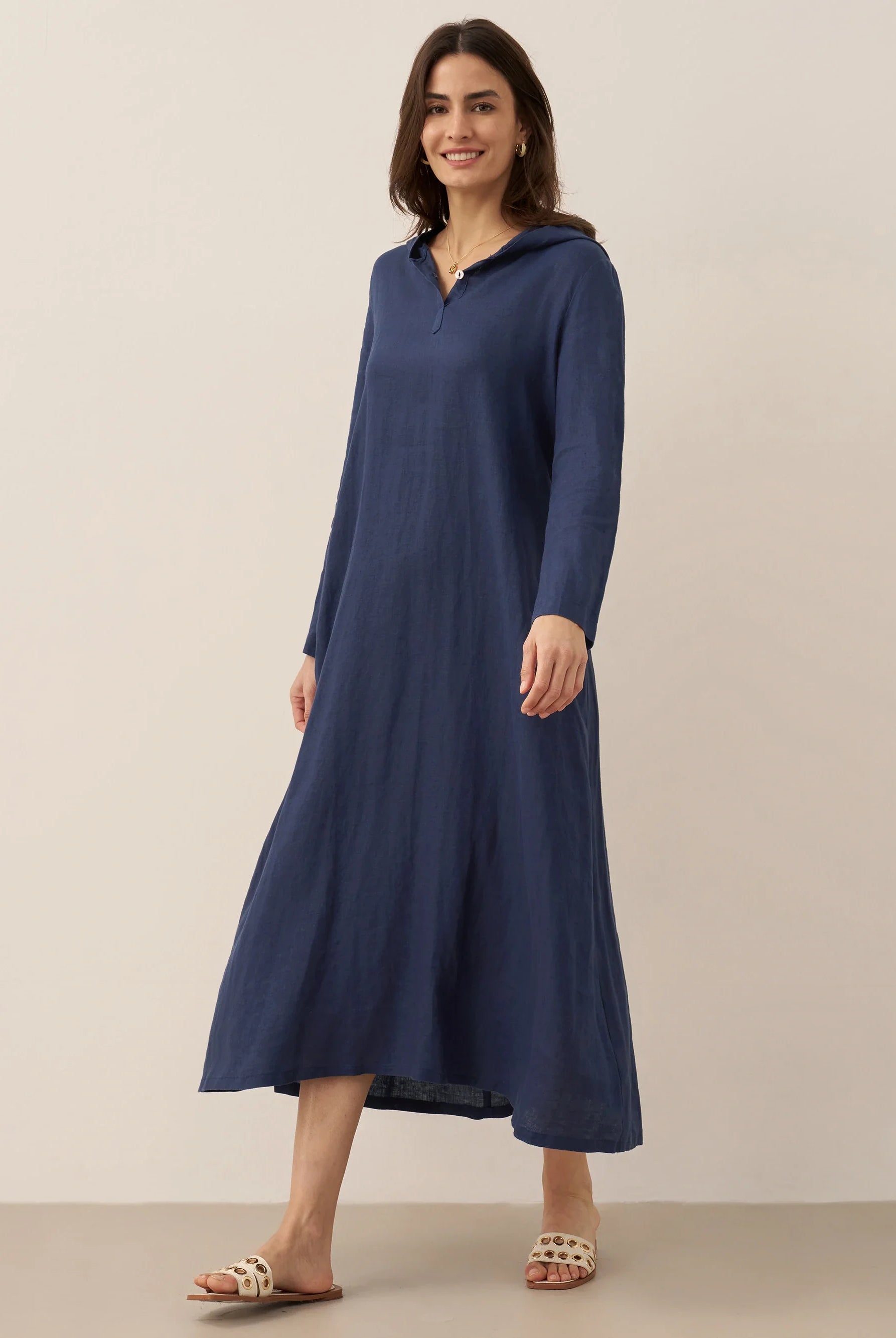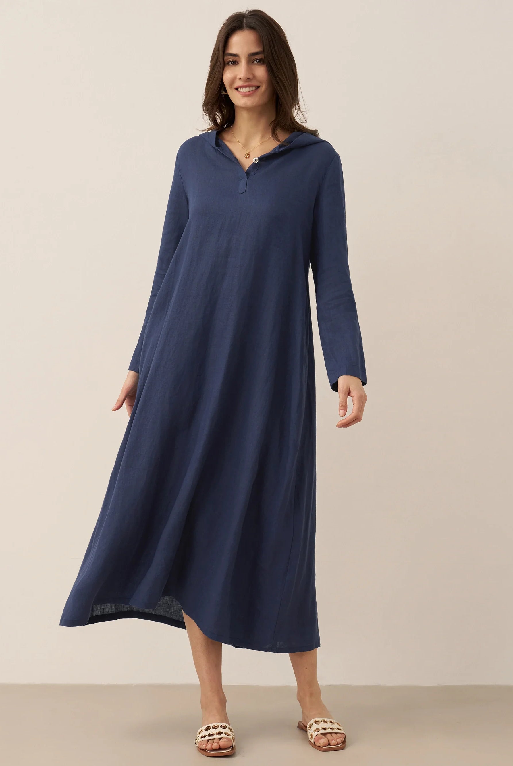 The blue dresses soft and romantic, light, flowing, and quietly charming. I got the size L and it fits beautifully.