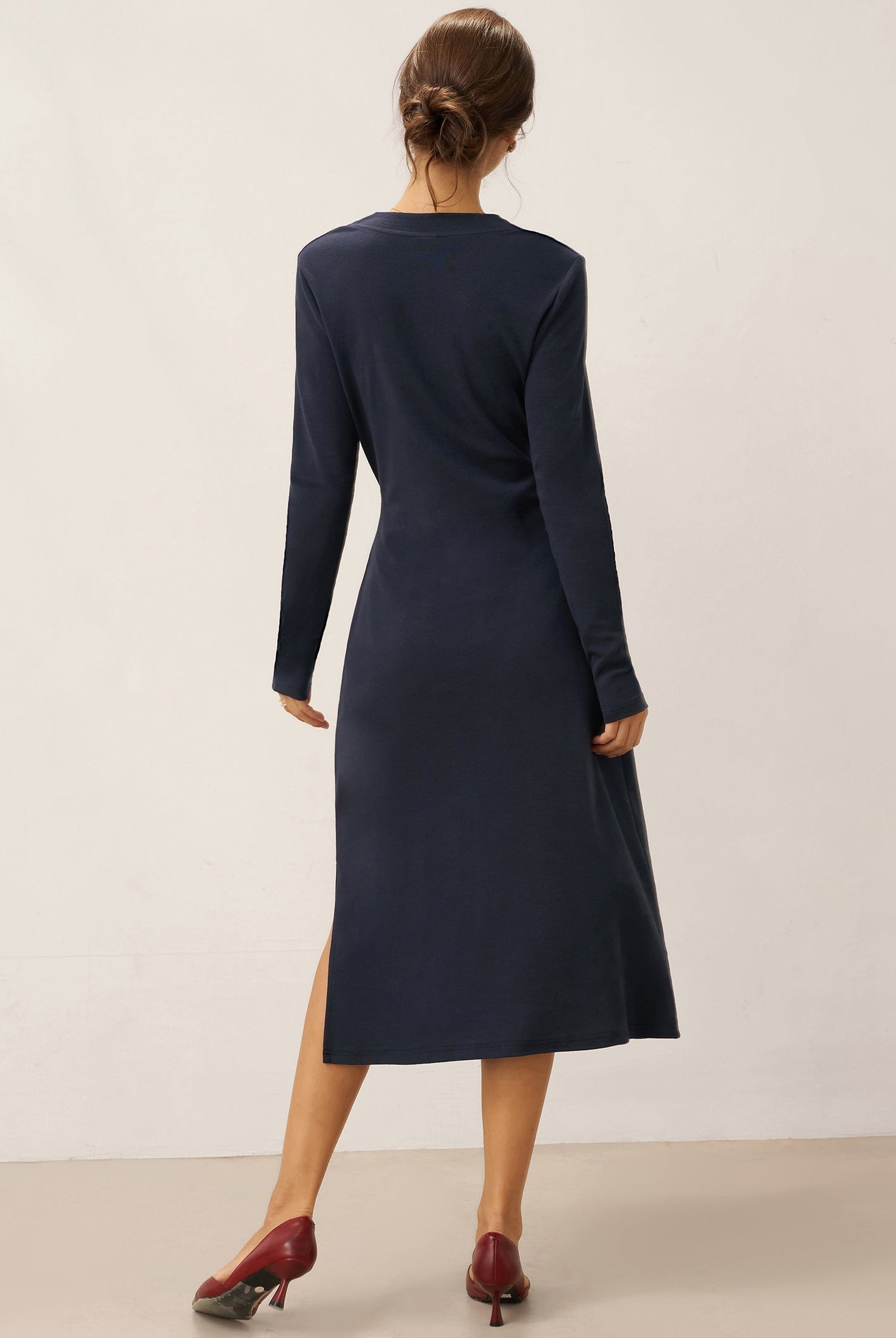 This dress is so sleek and elegantstructured, refined, and effortlessly poised. I got the size XL and the fit is perfect.
