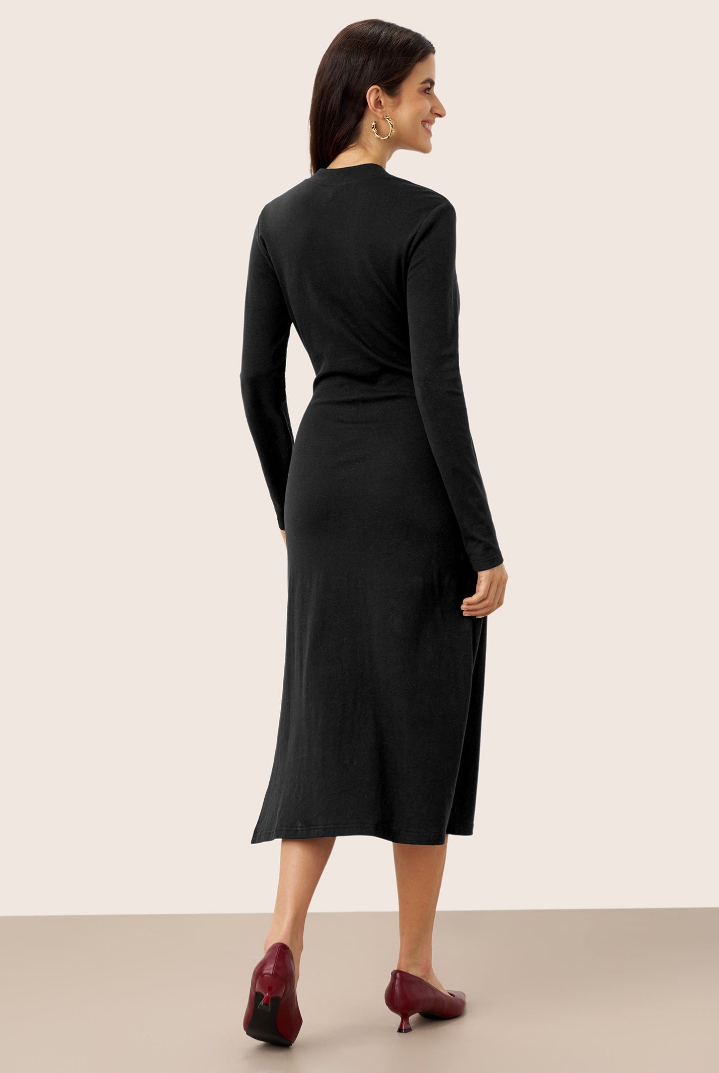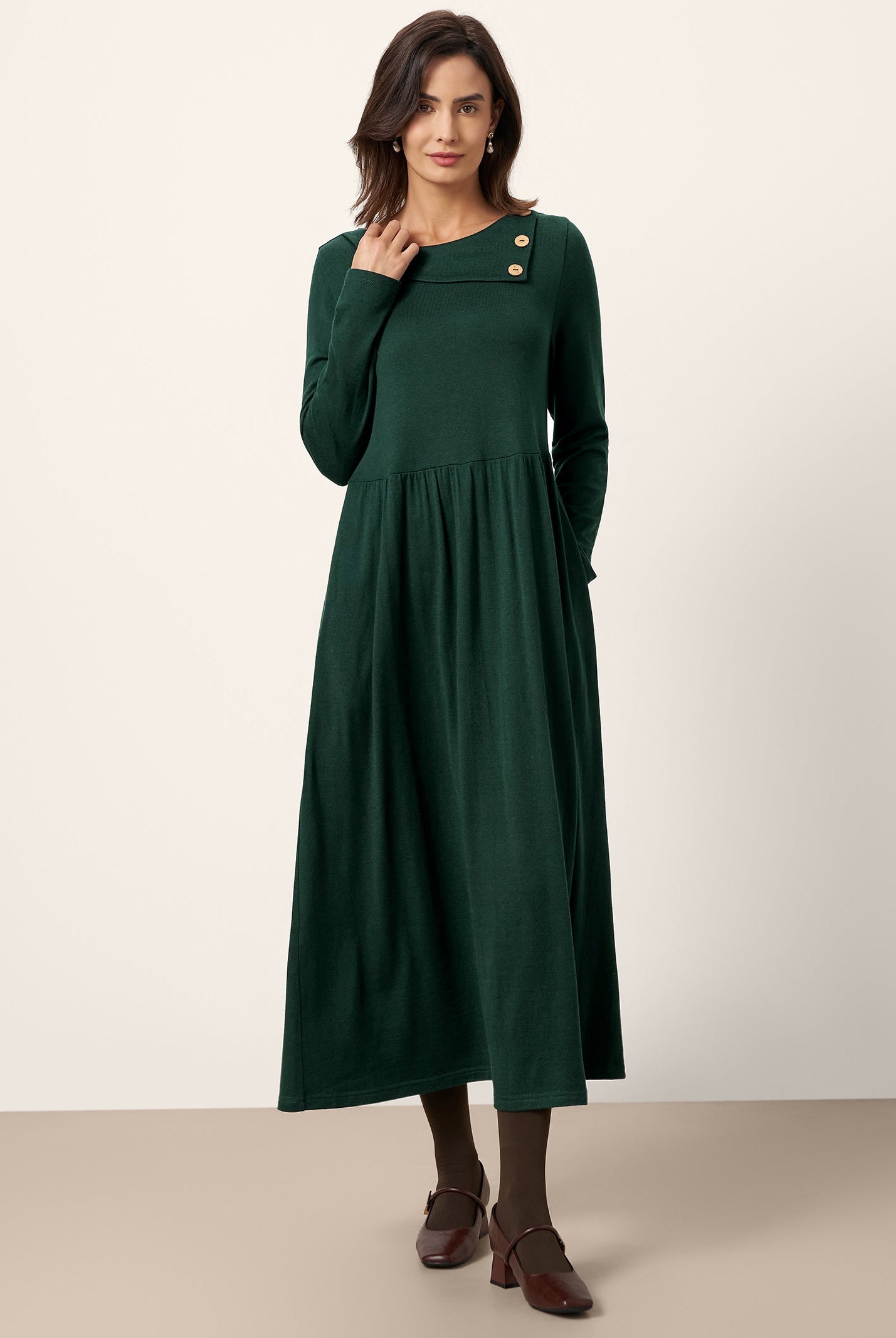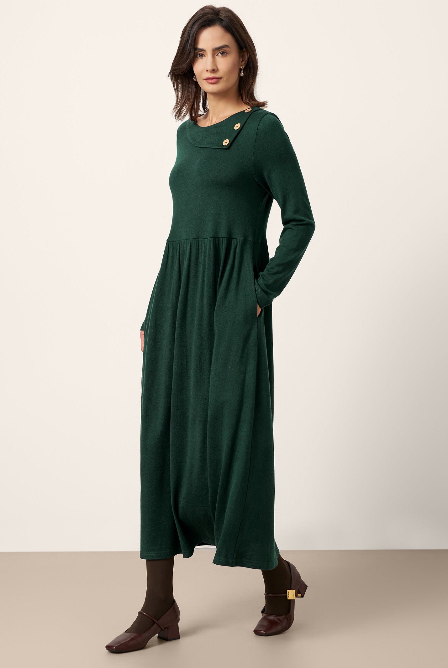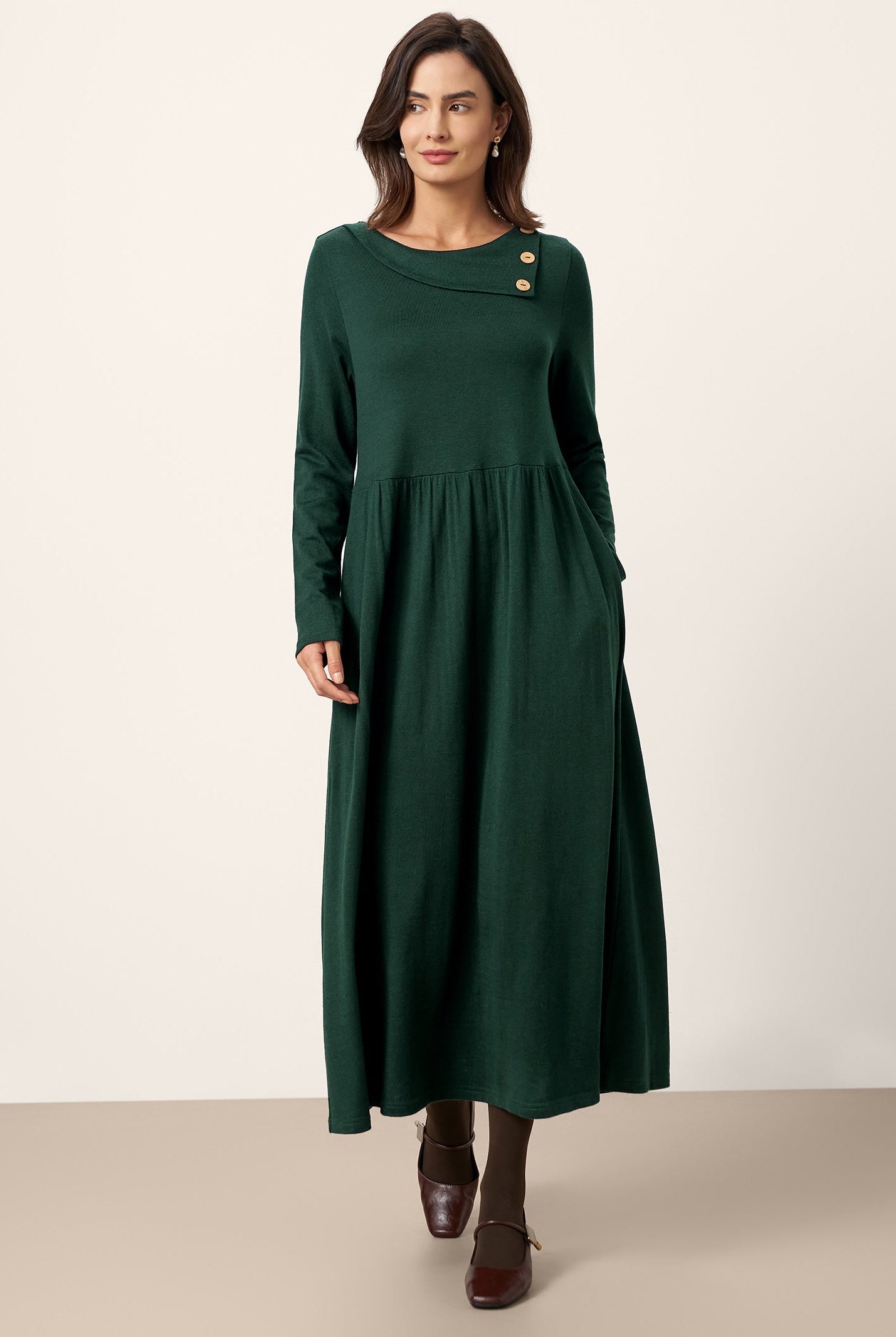 Wearing the Elsinore maxi feels like cozy elegance. The lyocell-wool blend is soft and warm, and the side-waist ruching with the cascading hem moves so beautifully. Im 173 cm, wearing a size M, and the length hits perfectlyone of my favorite dresses this season.