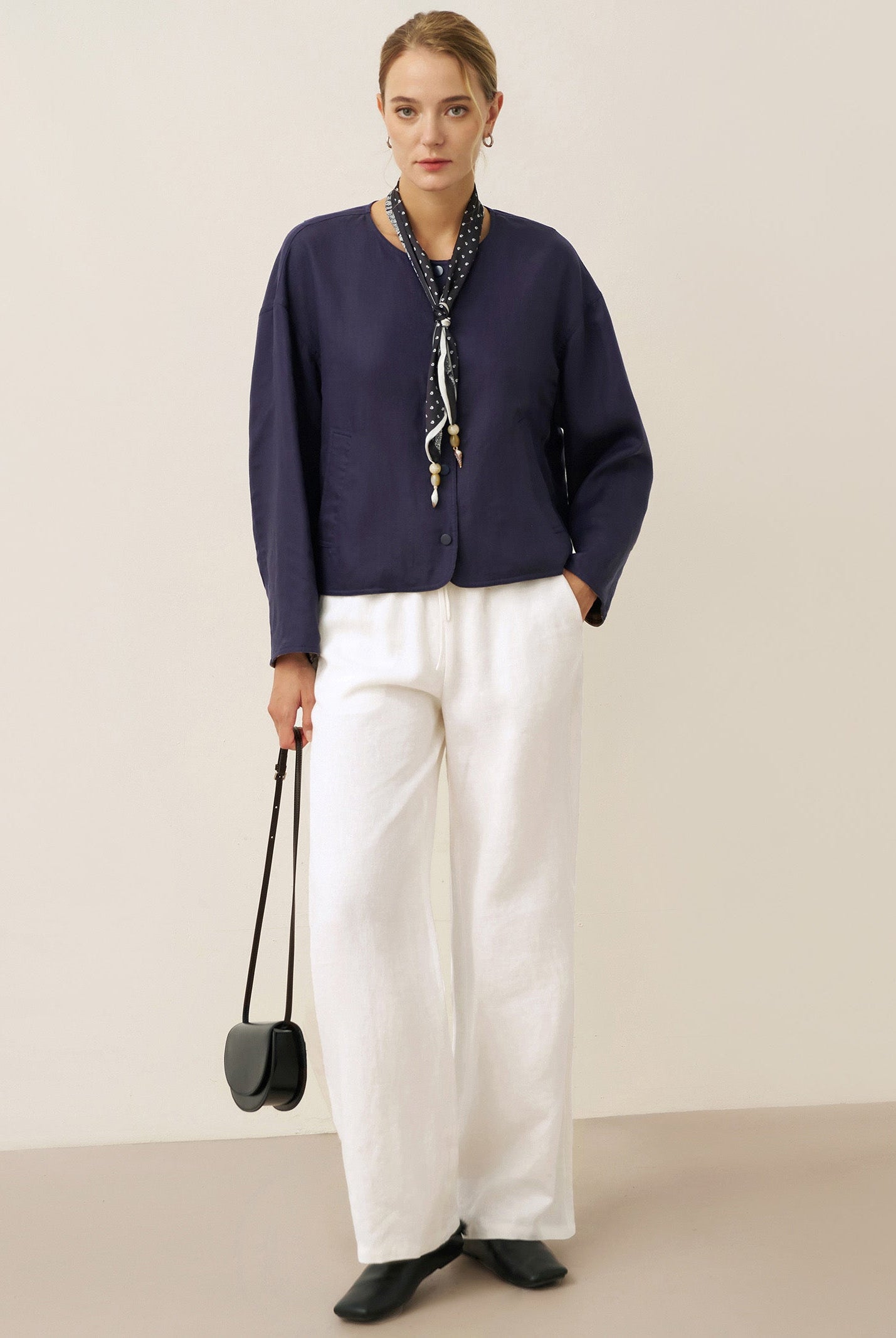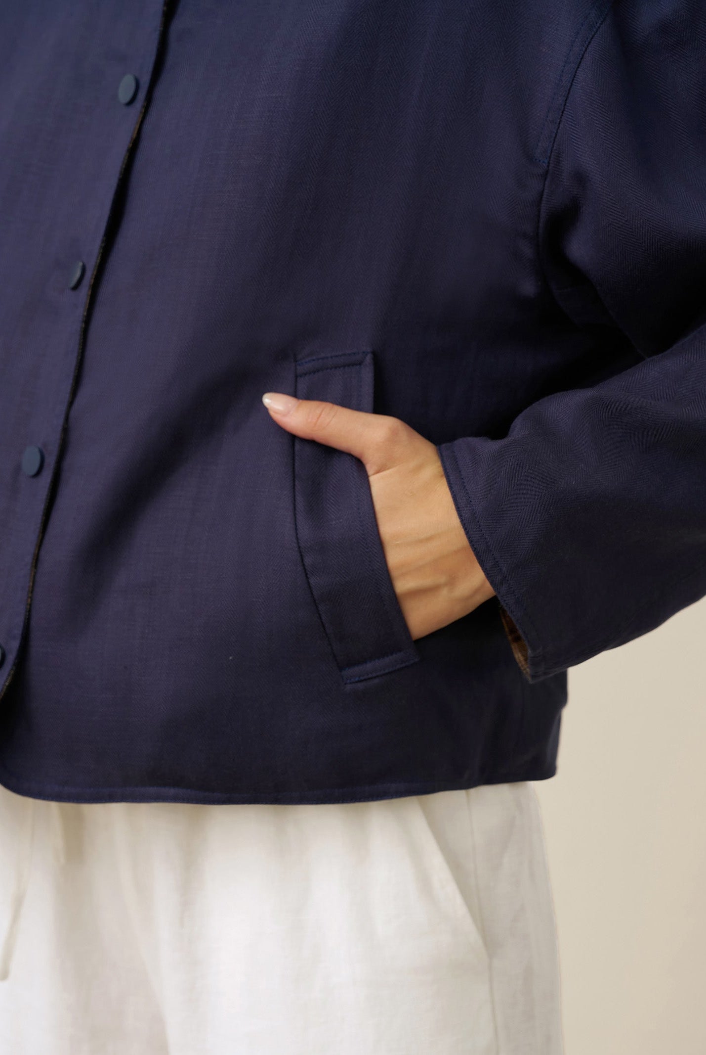 The sapphire coat blends wool and silk beautifully. The double-breasted lapel adds classic charm, and the material feels luxuriously soft. Perfect for dressing up or down this season, it's become my go-to outerwear.