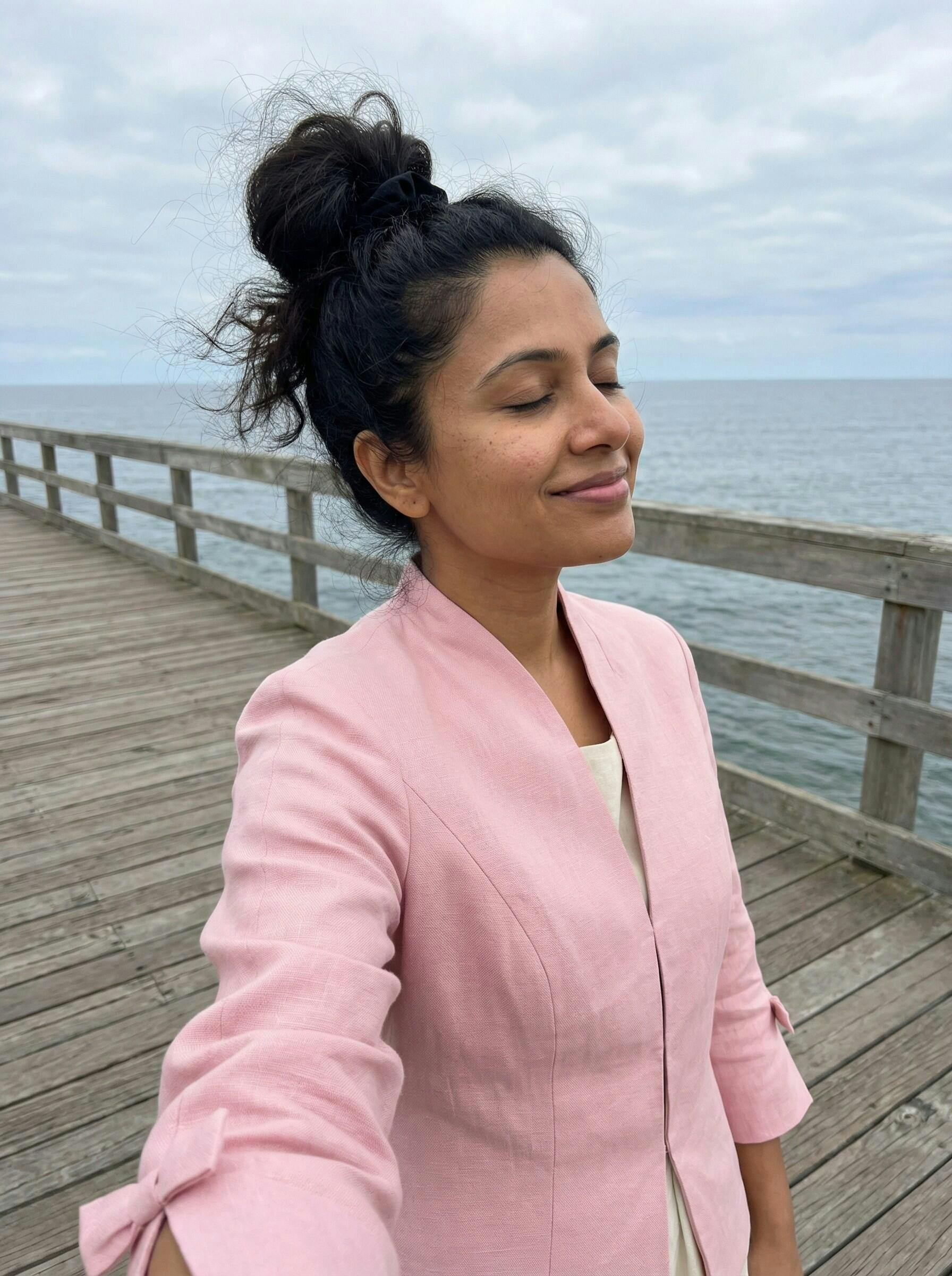 I’ve been wearing this for my early morning walks by the coast, and it’s exactly what I needed. The linen is breathable but still blocks a light breeze, and it feels relaxed yet put-together. The little bows on the sleeves are a sweet detail. Taking off one star because the blush pink looks a bit cooler in person, but it’s still really pretty.