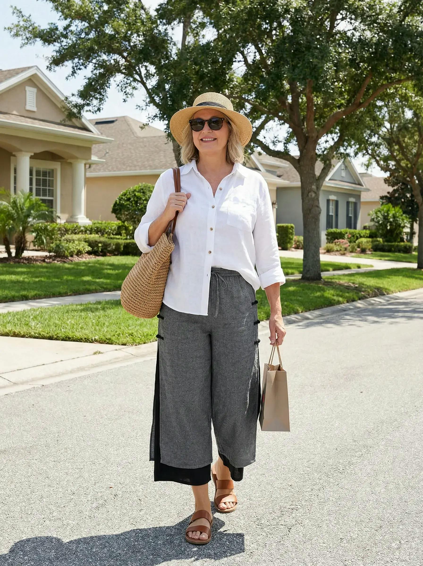 I’m really happy with these gray linen pants. The fabric feels soft on my skin and the fit is relaxed without looking sloppy. I love how the wide leg flows when I walk, and the drawstring waist makes them super comfortable to wear all day. I styled them here with a simple white shirt and sandals and the whole look felt effortless but still polished. Definitely a new go-to in my spring wardrobe.