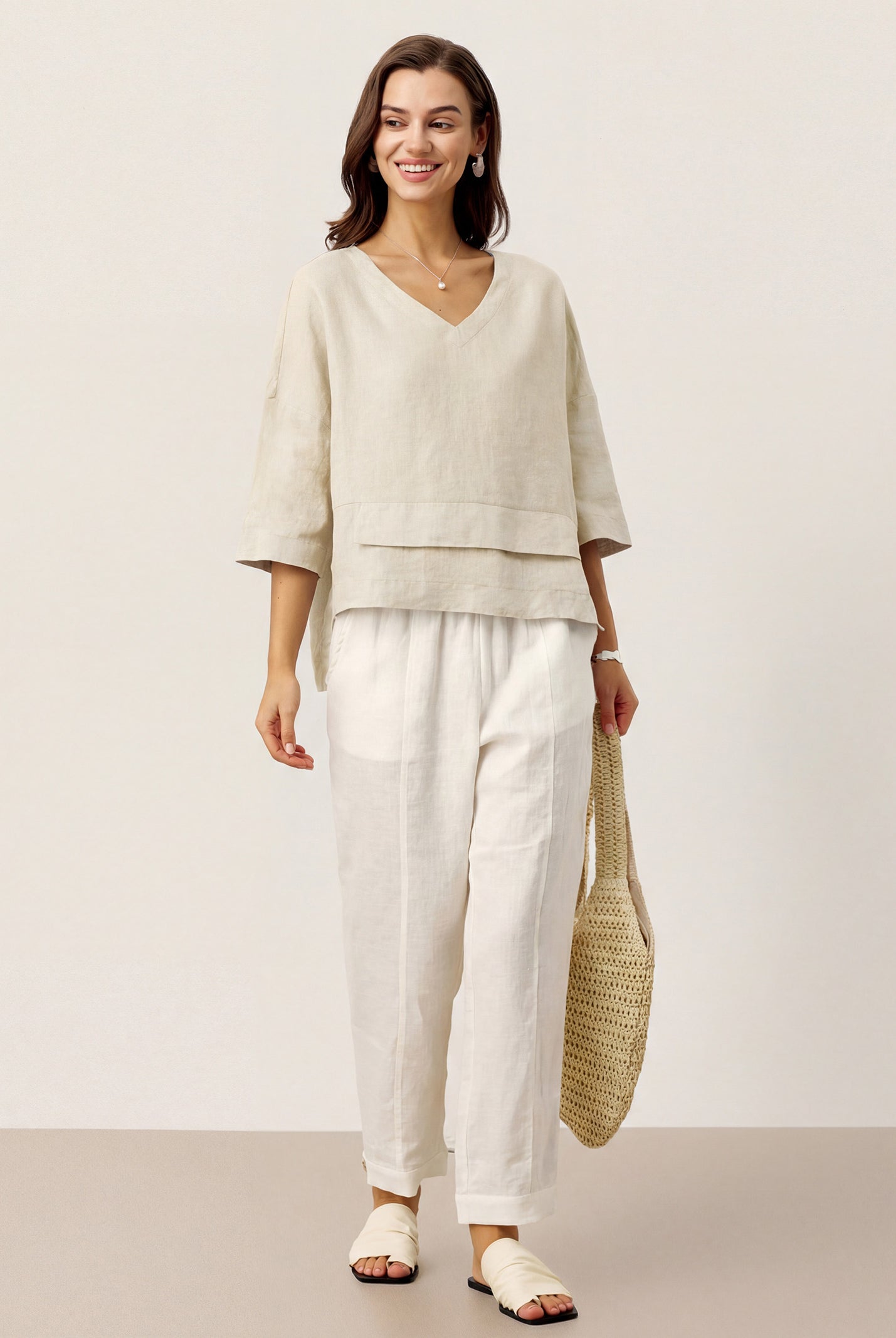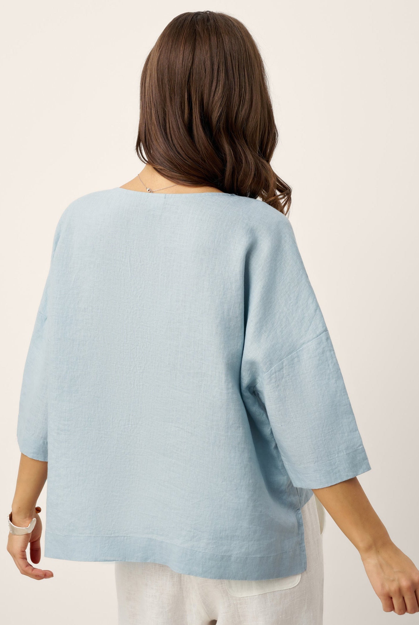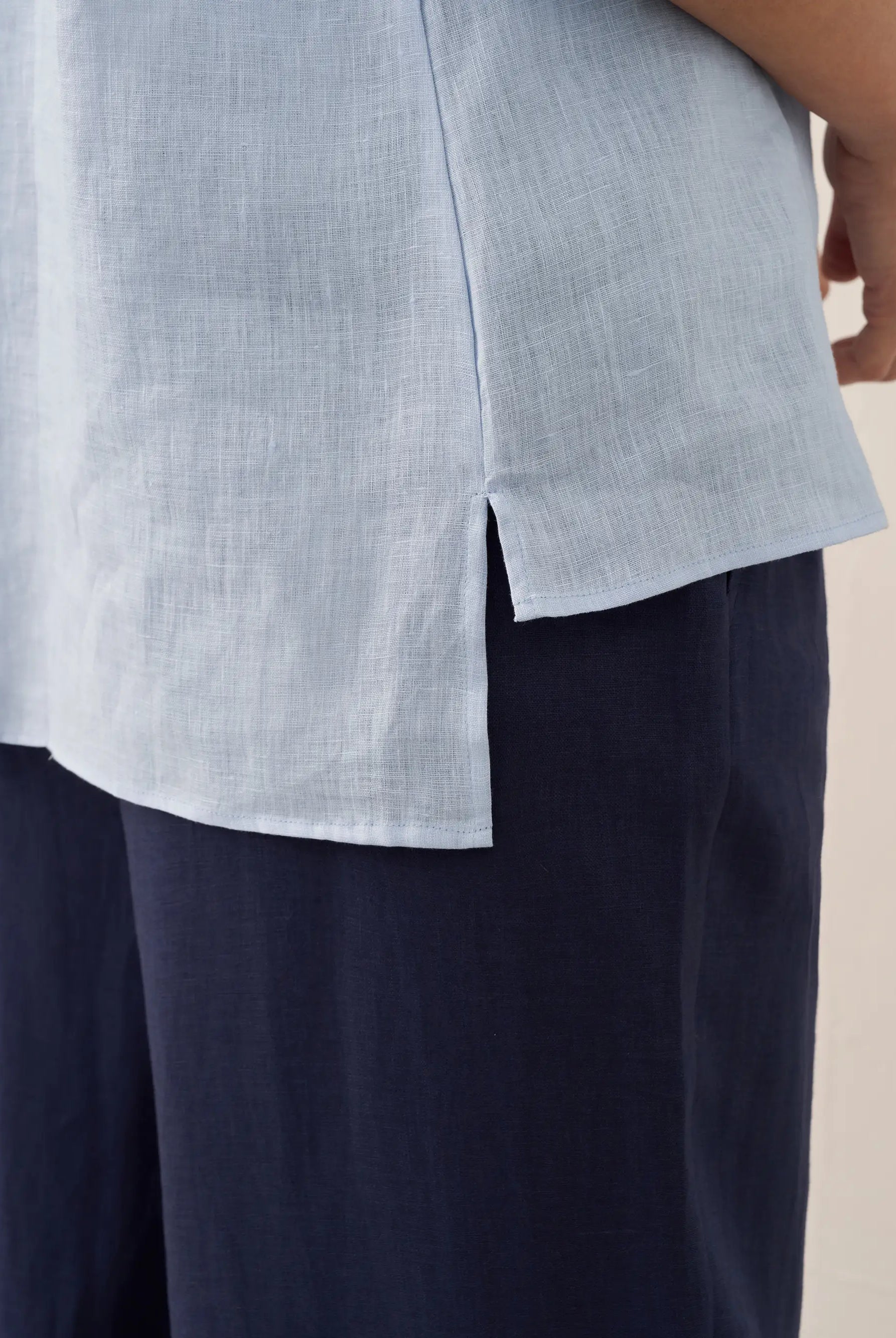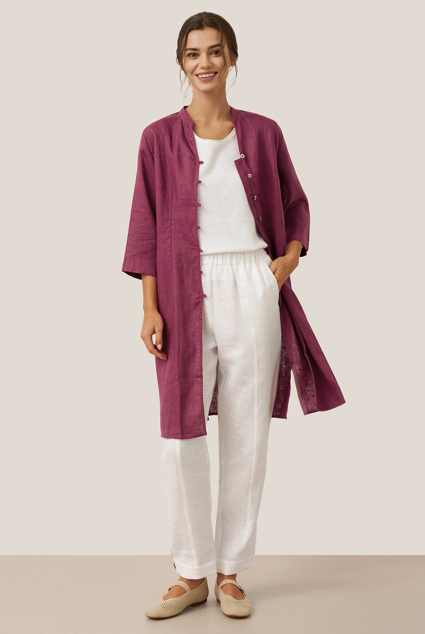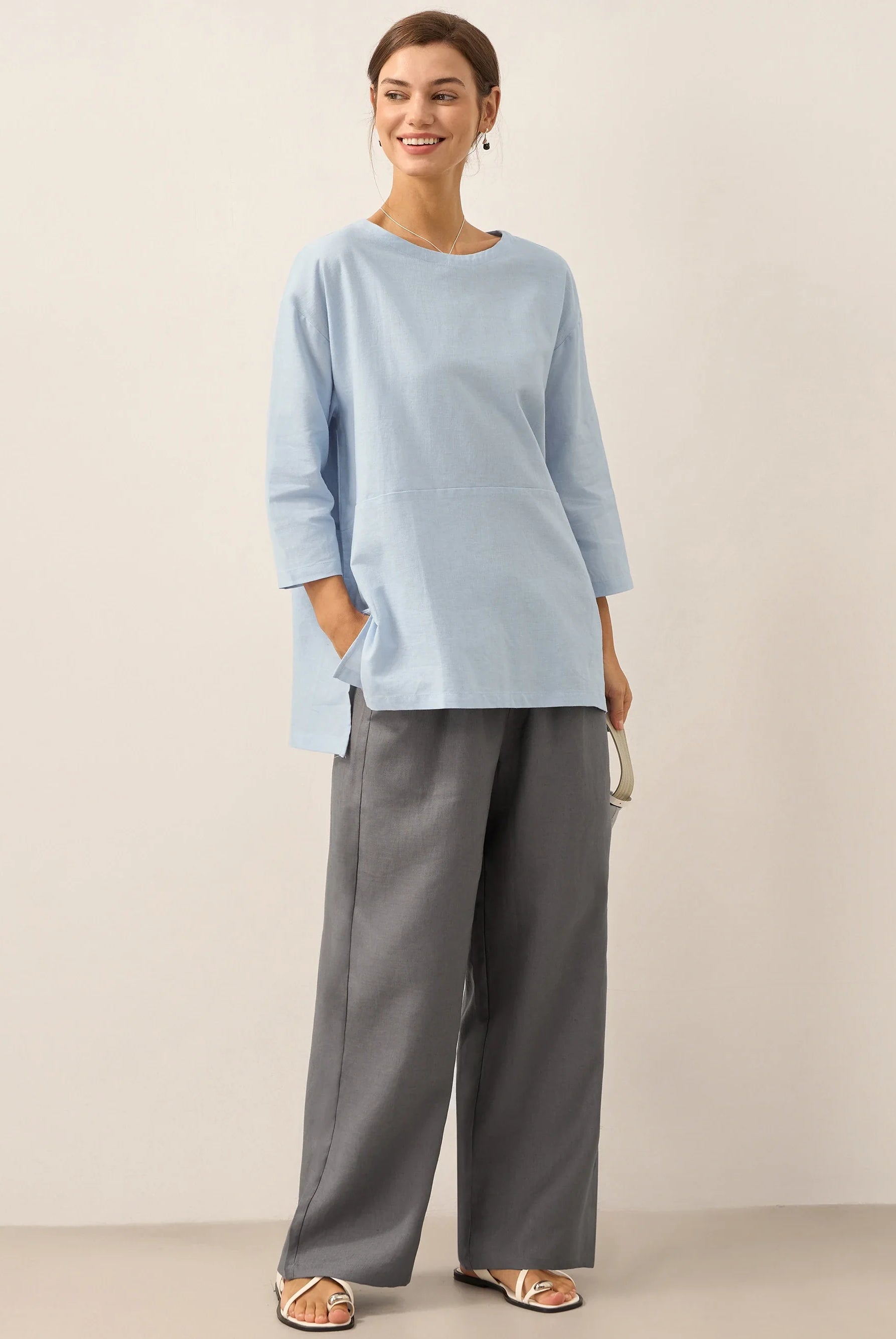 Glissez-vous dans notre haut en lin ultraléger — aussi aérien qu’un après-midi de lecture, où chaque frémissement du tissu porte le parfum des fleurs et des vieux livres.