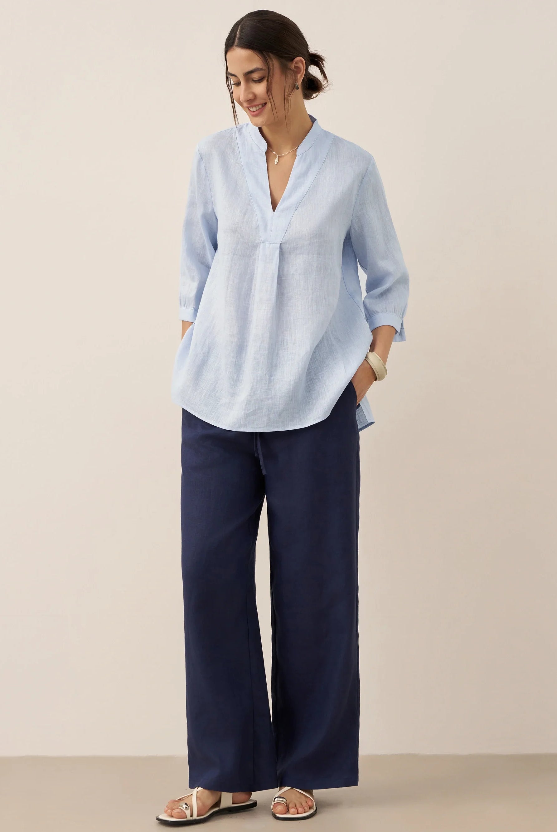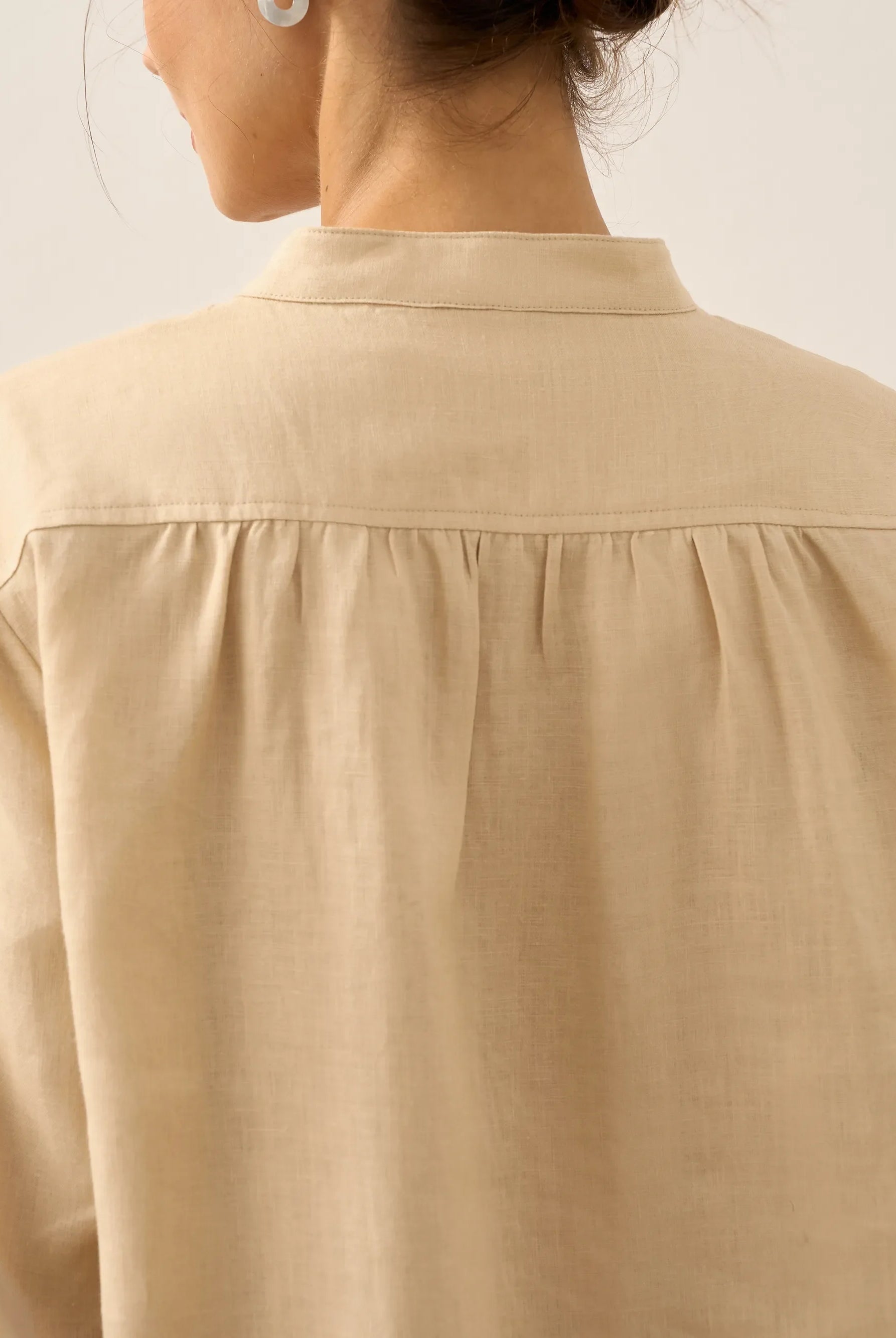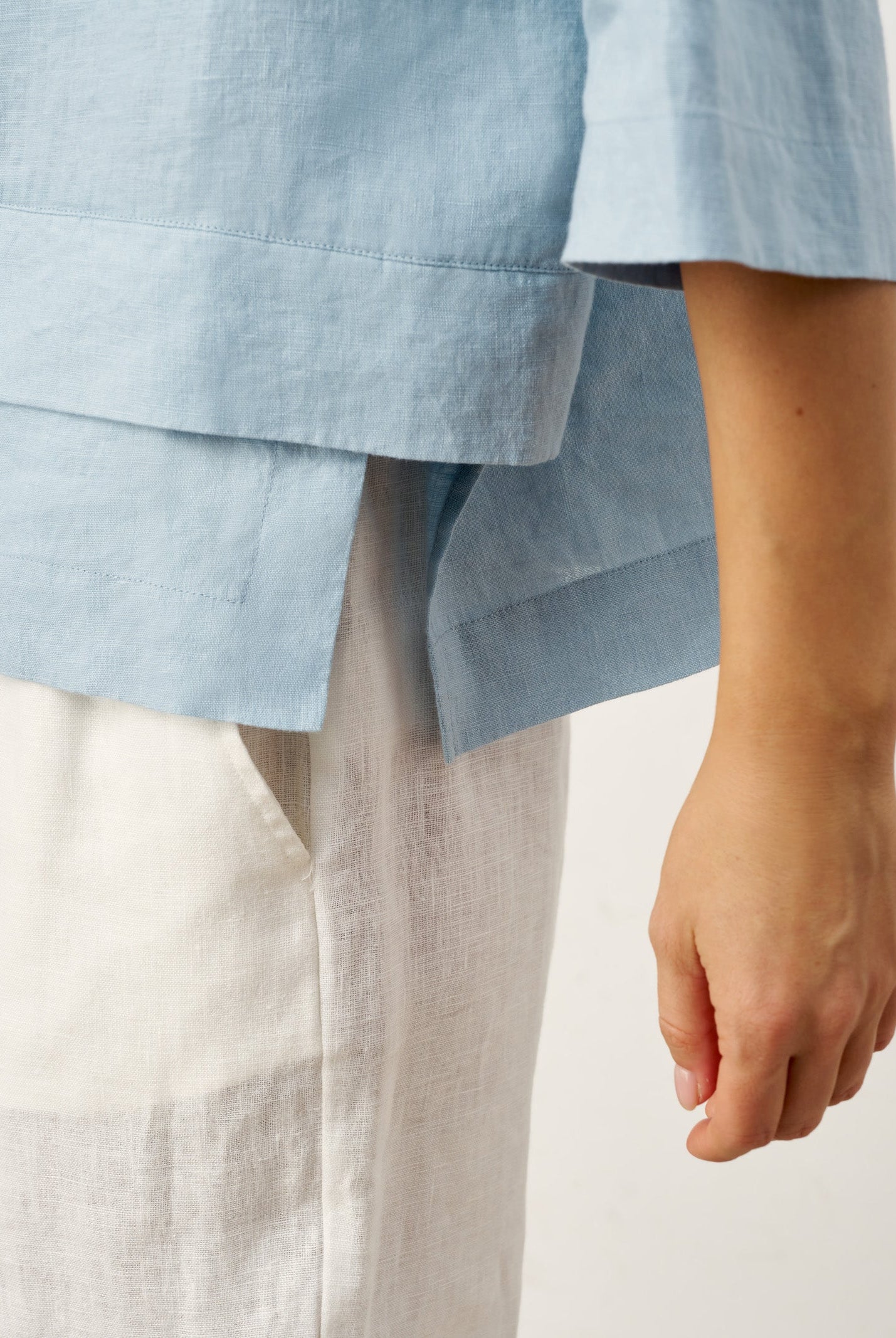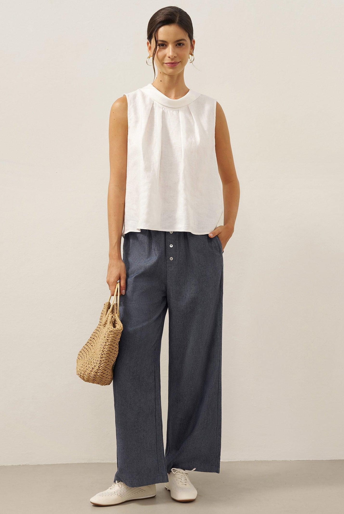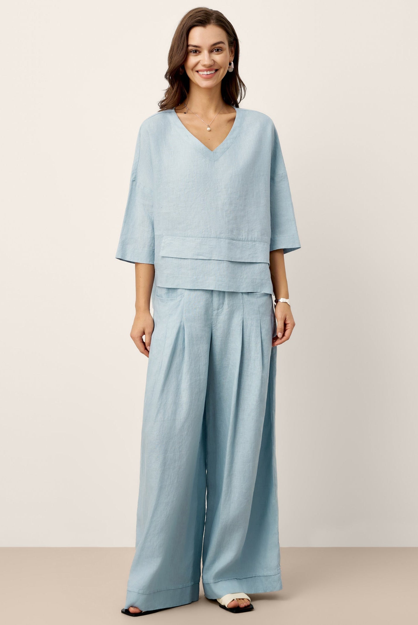 Glissez-vous dans notre haut en lin ultraléger — aussi aérien qu’un après-midi de lecture, où chaque frémissement du tissu porte le parfum des fleurs et des vieux livres.