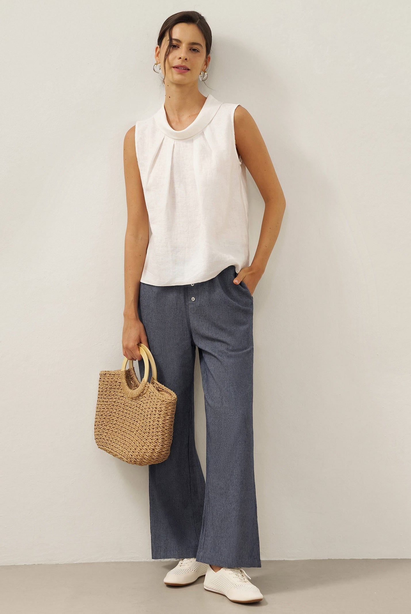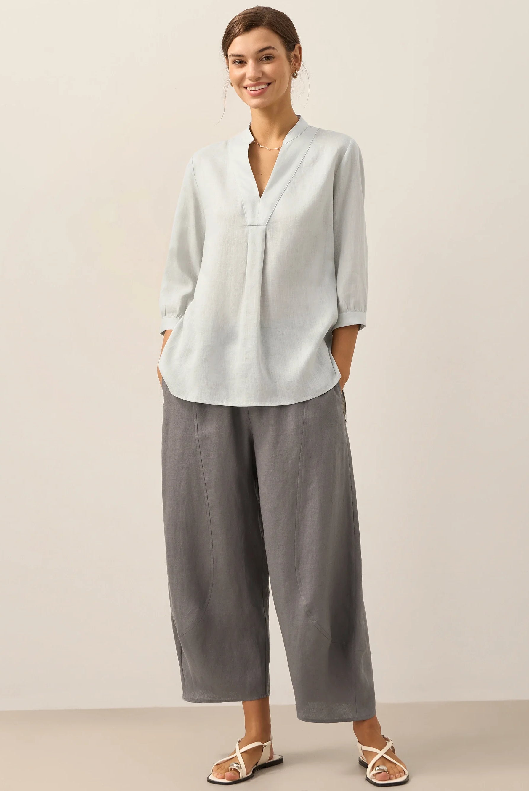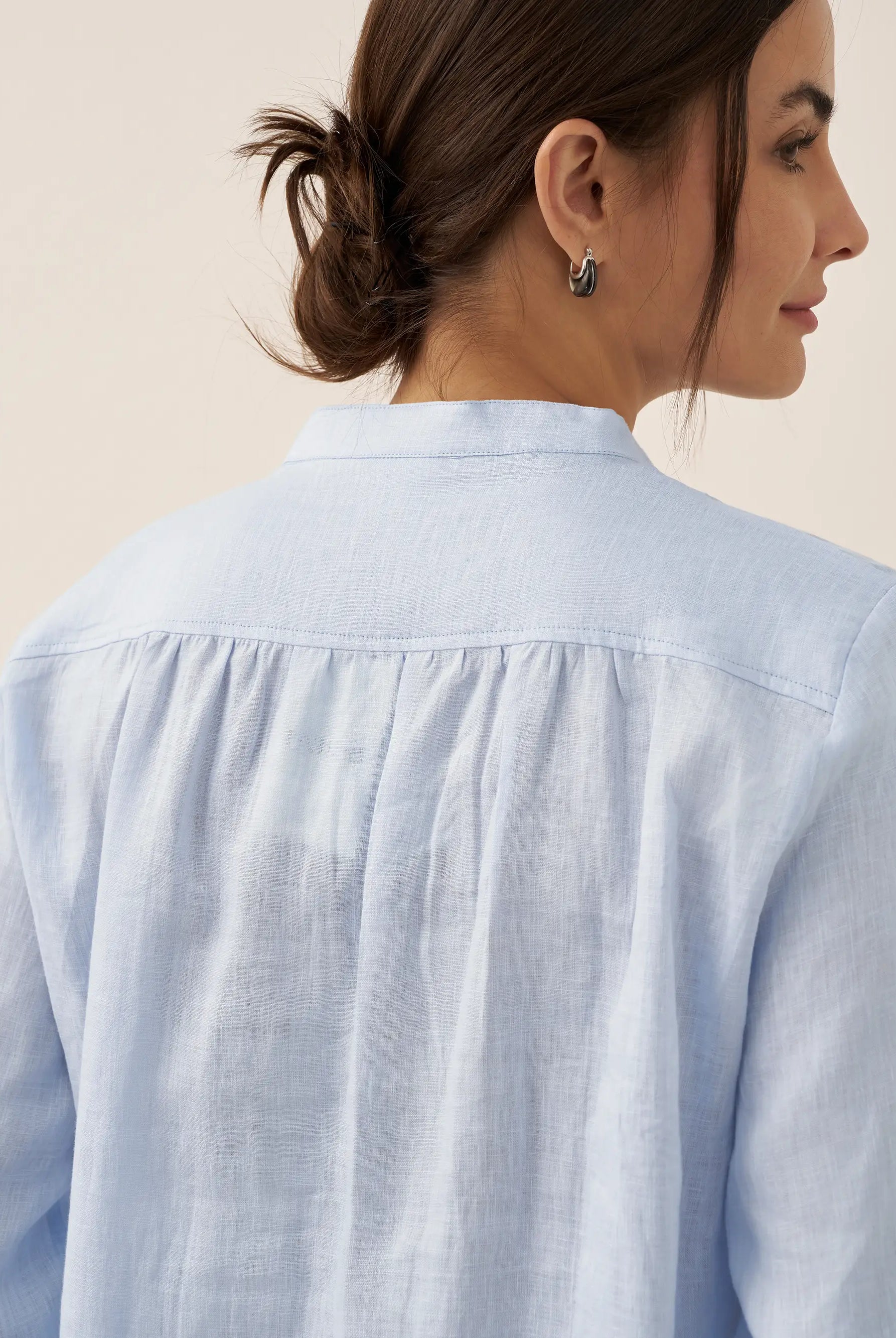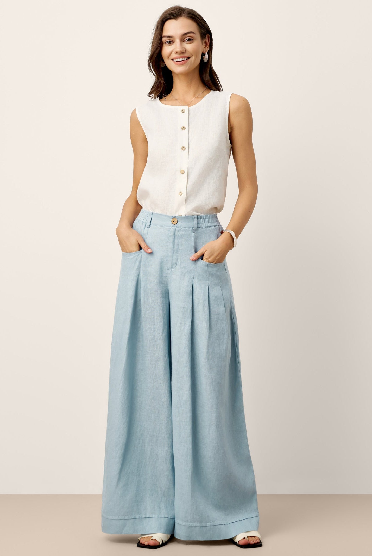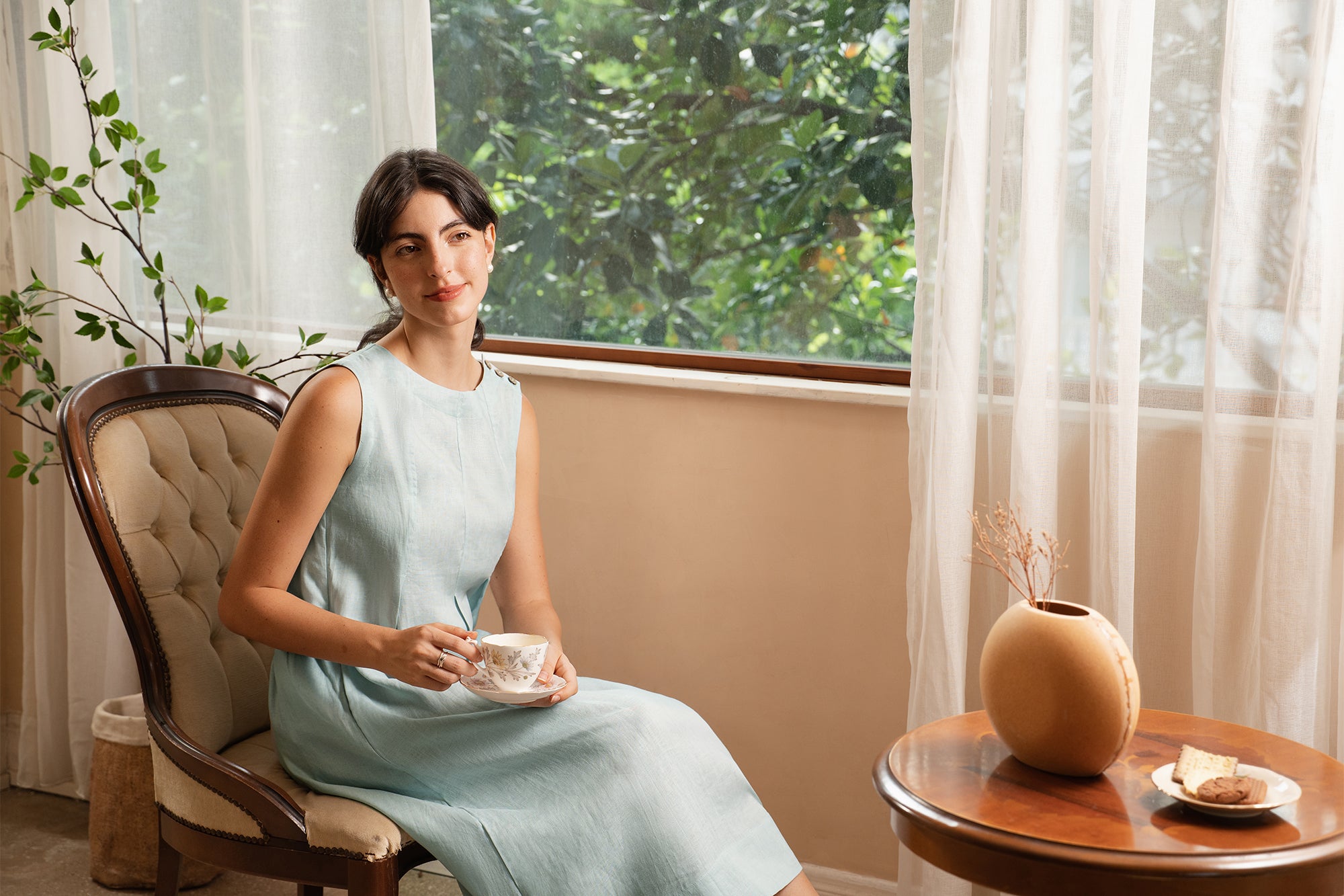 Glissez-vous dans notre haut en lin ultraléger — aussi aérien qu’un après-midi de lecture, où chaque frémissement du tissu porte le parfum des fleurs et des vieux livres.