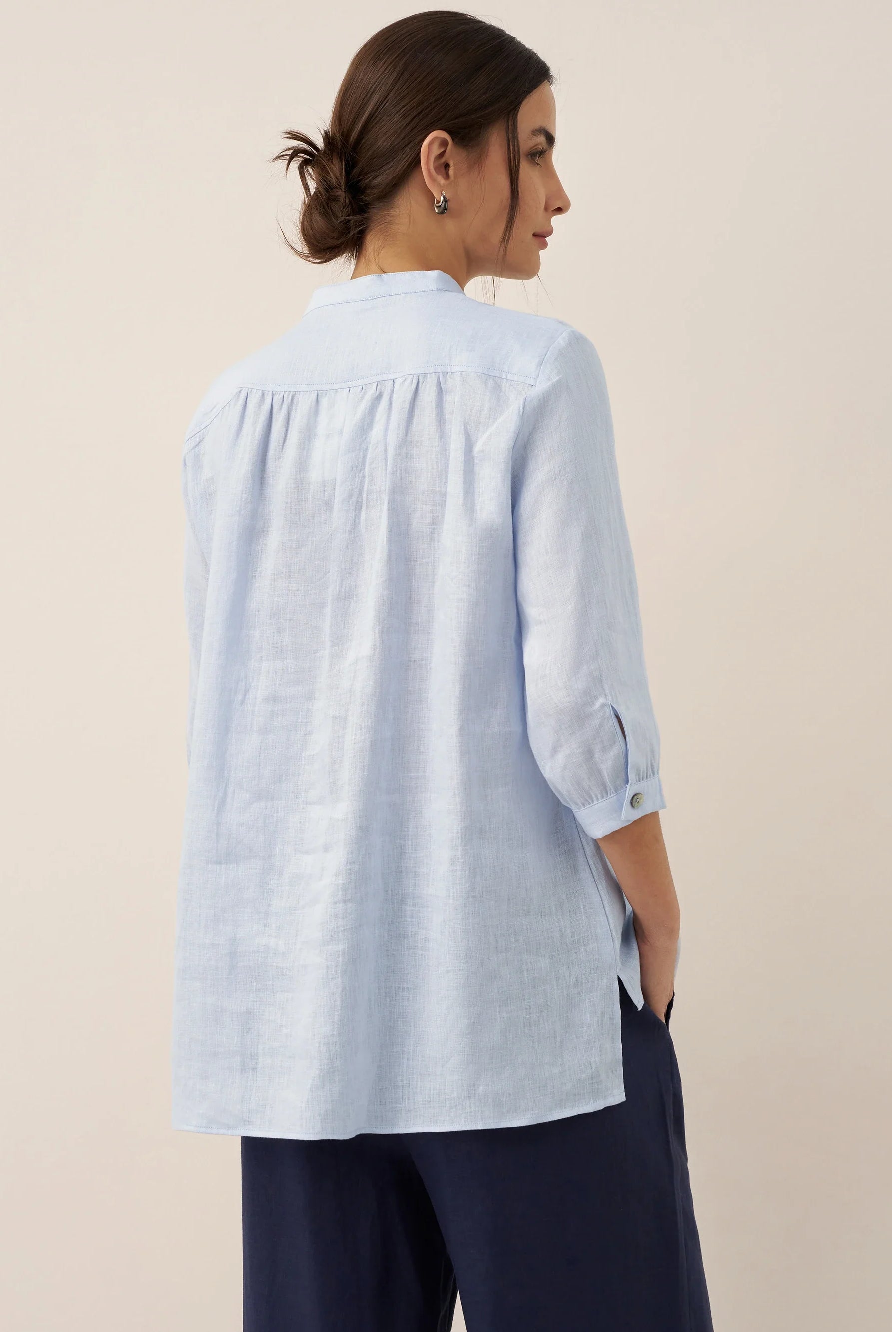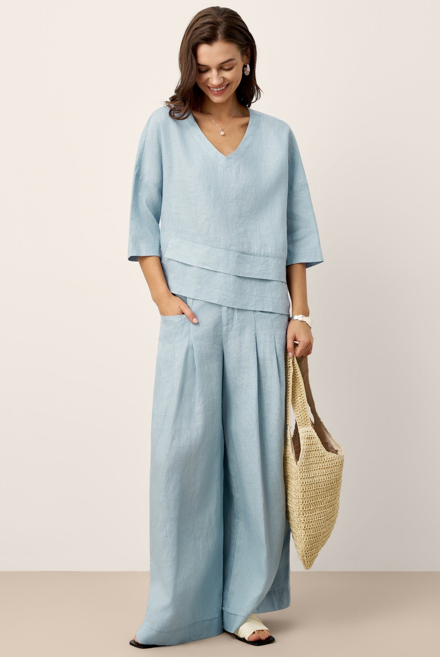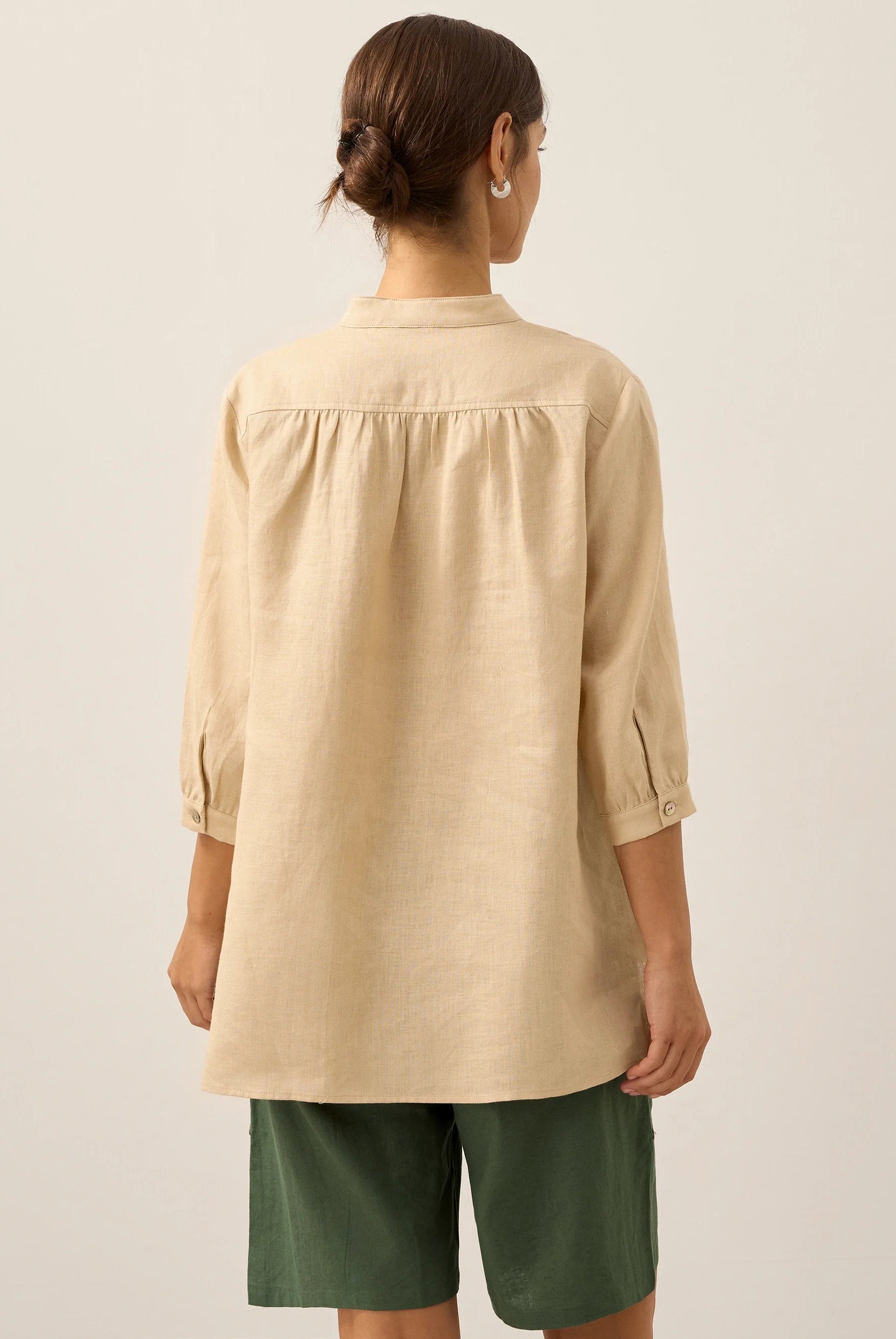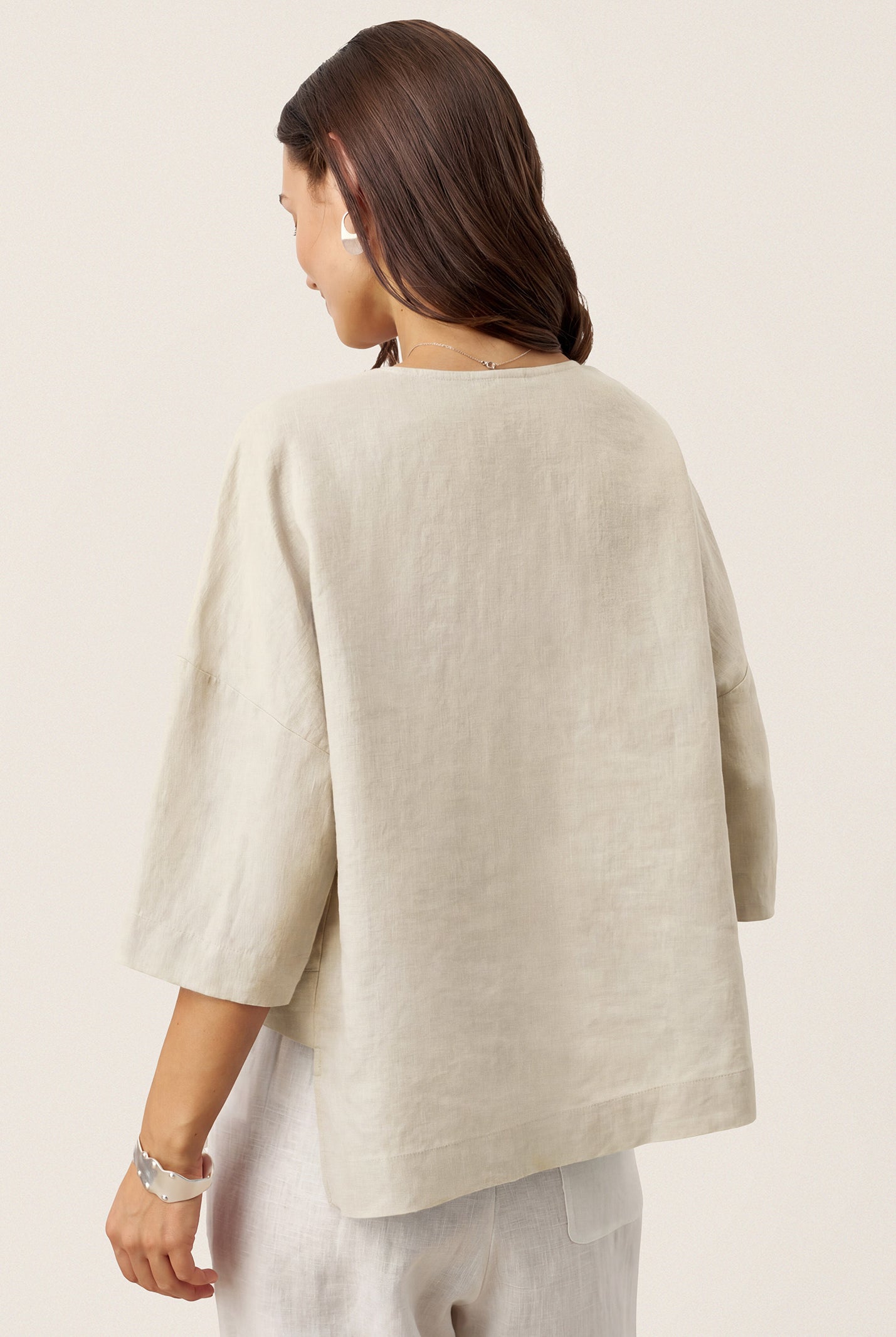 Glissez-vous dans notre haut en lin ultraléger — aussi aérien qu’un après-midi de lecture, où chaque frémissement du tissu porte le parfum des fleurs et des vieux livres.