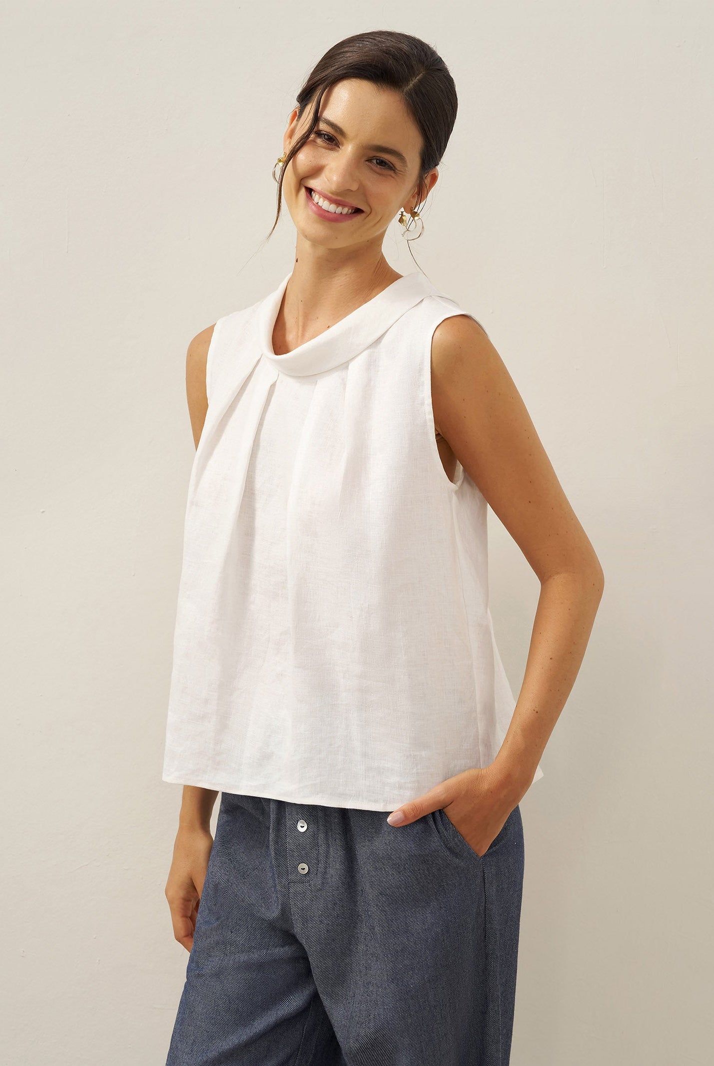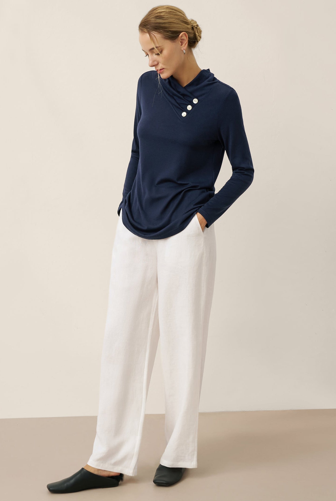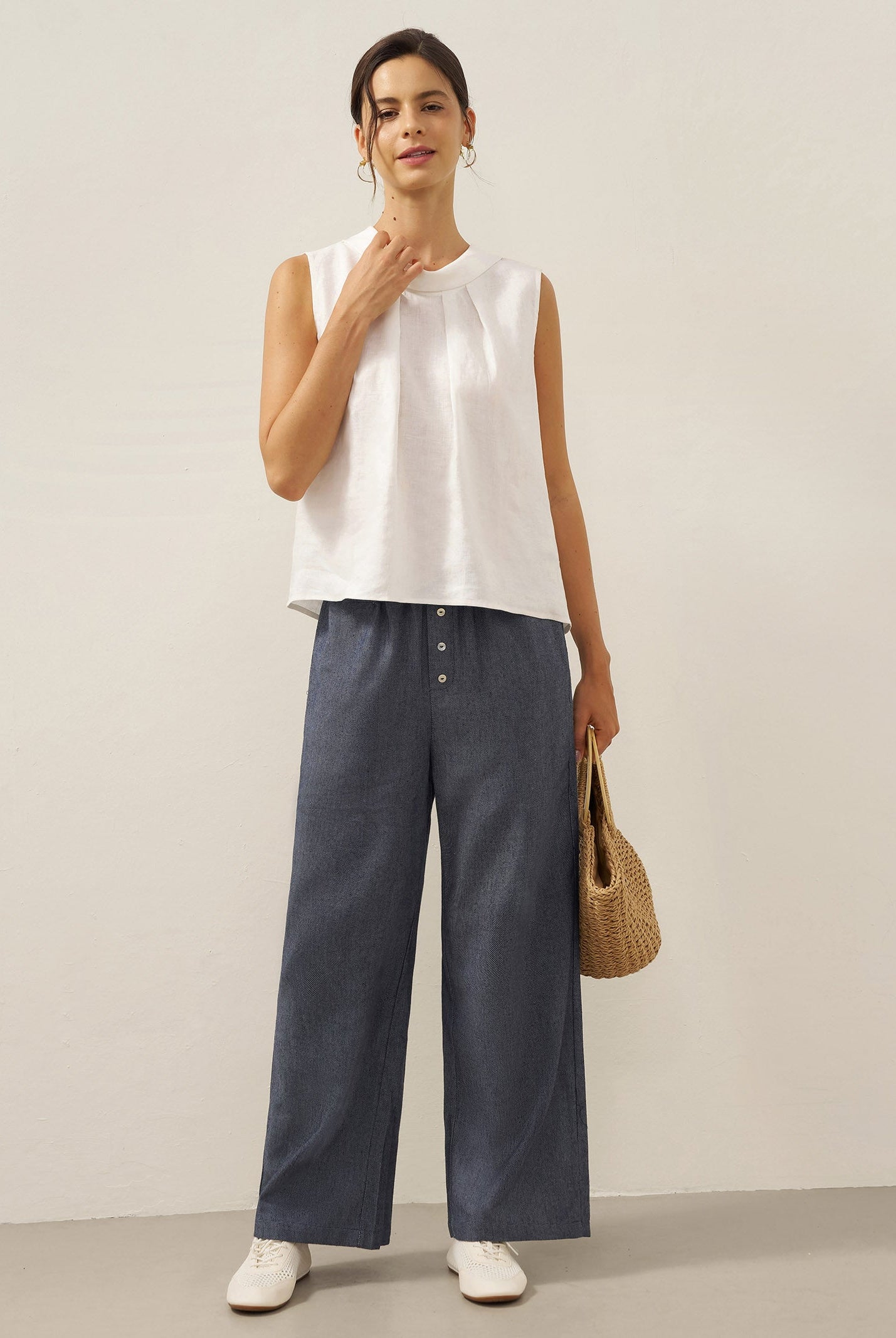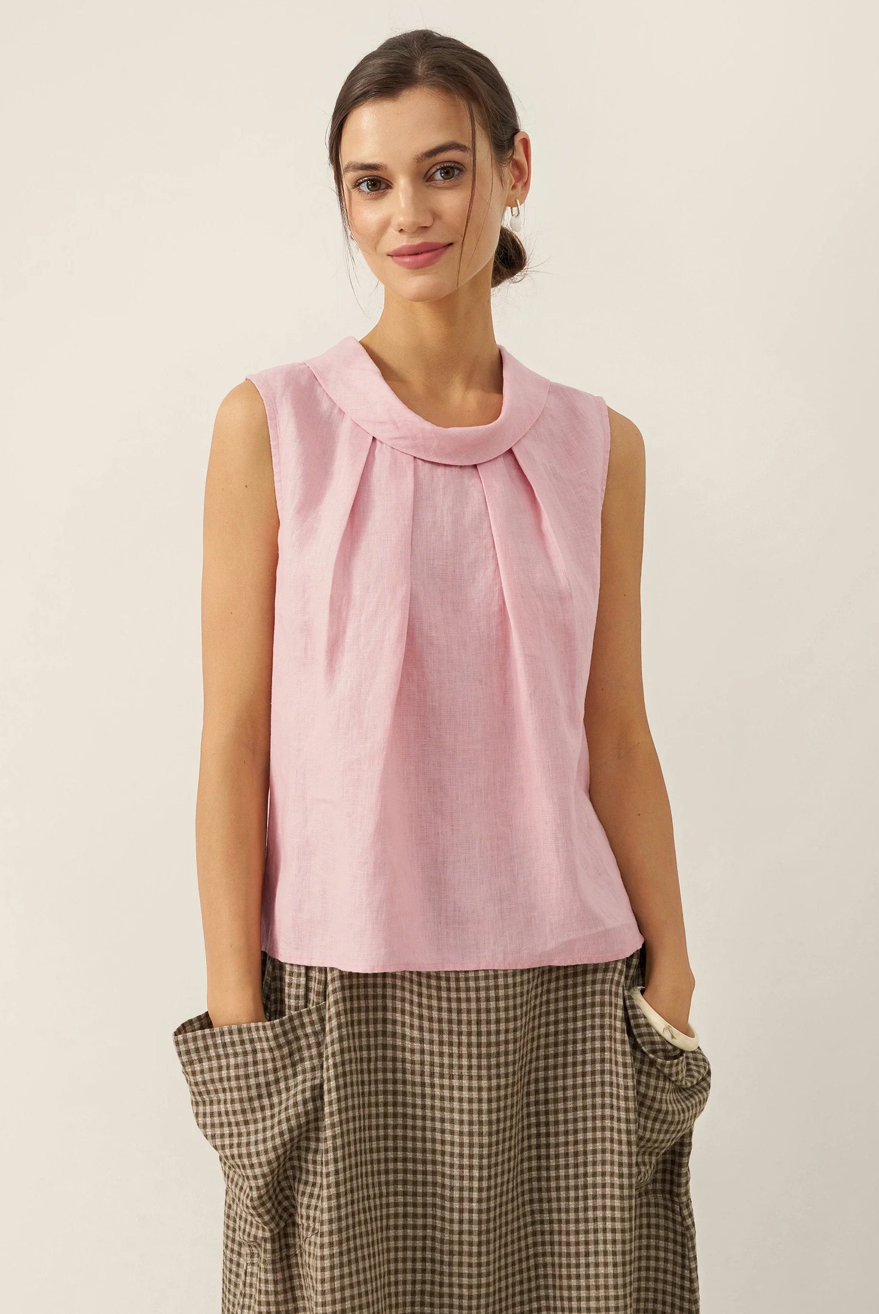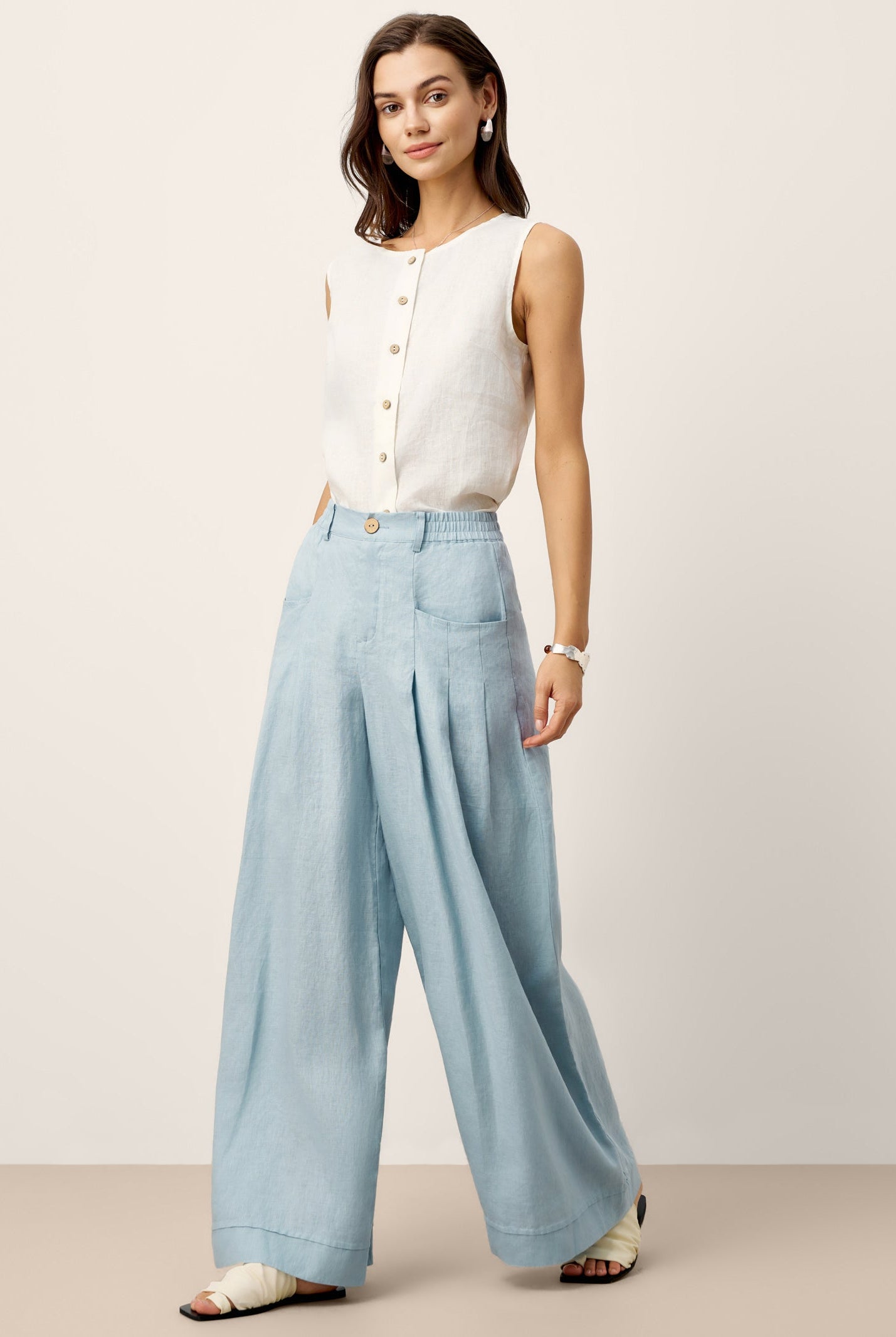 Glissez-vous dans notre haut en lin ultraléger — aussi aérien qu’un après-midi de lecture, où chaque frémissement du tissu porte le parfum des fleurs et des vieux livres.