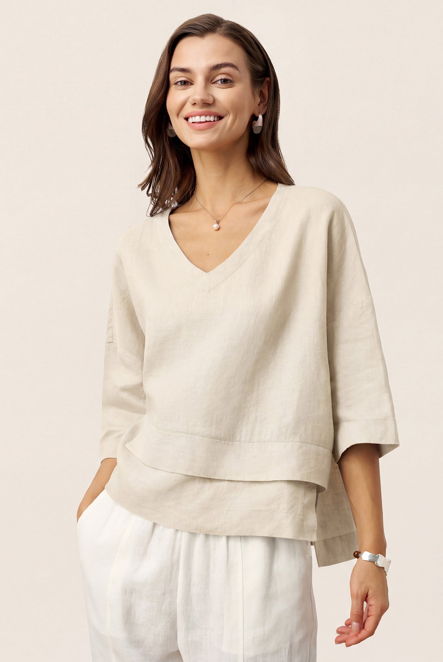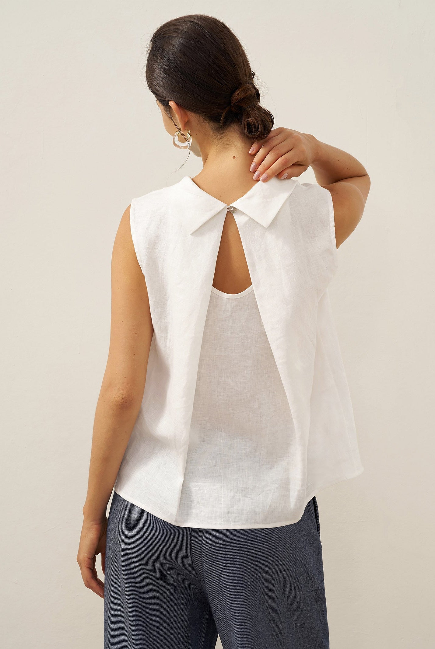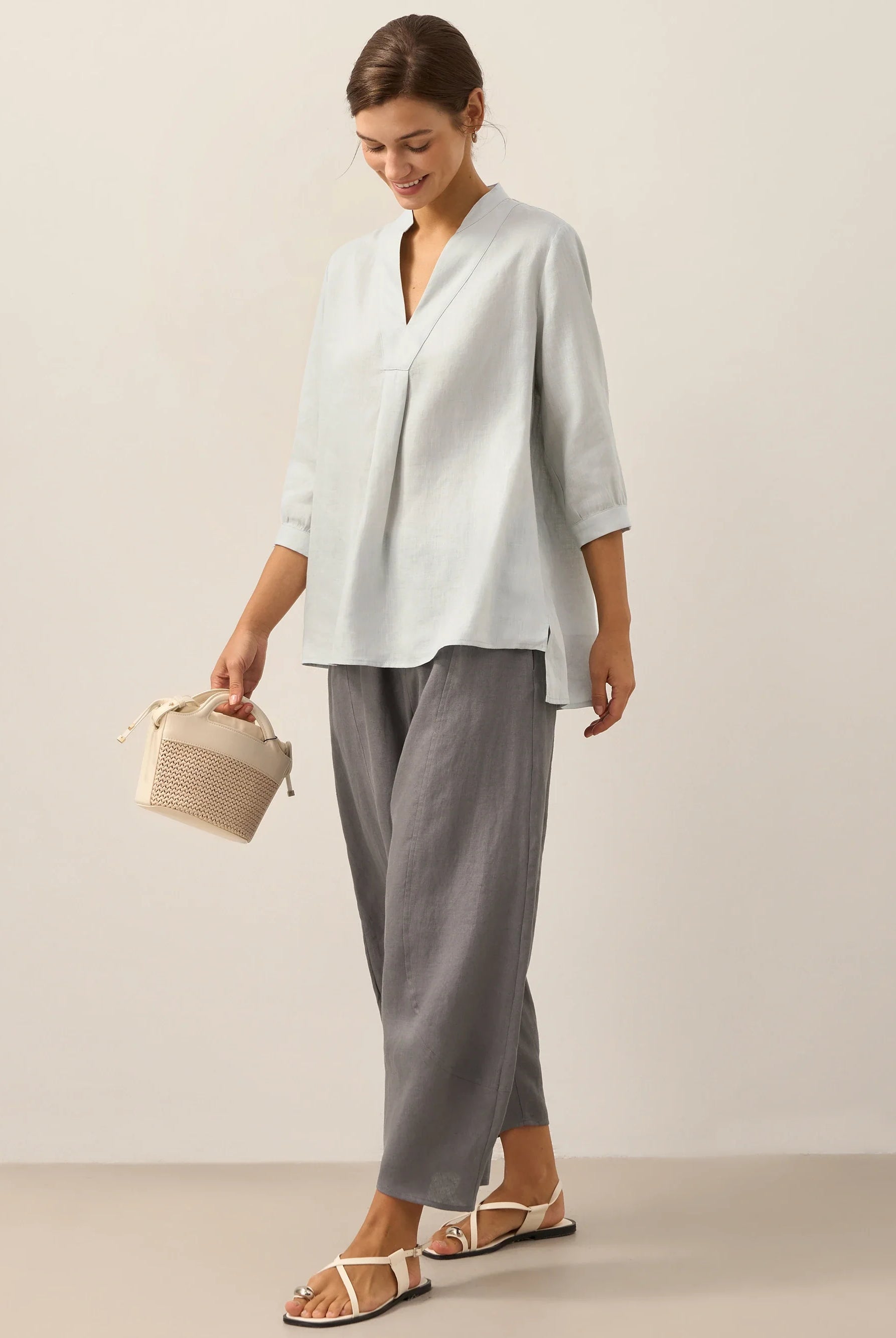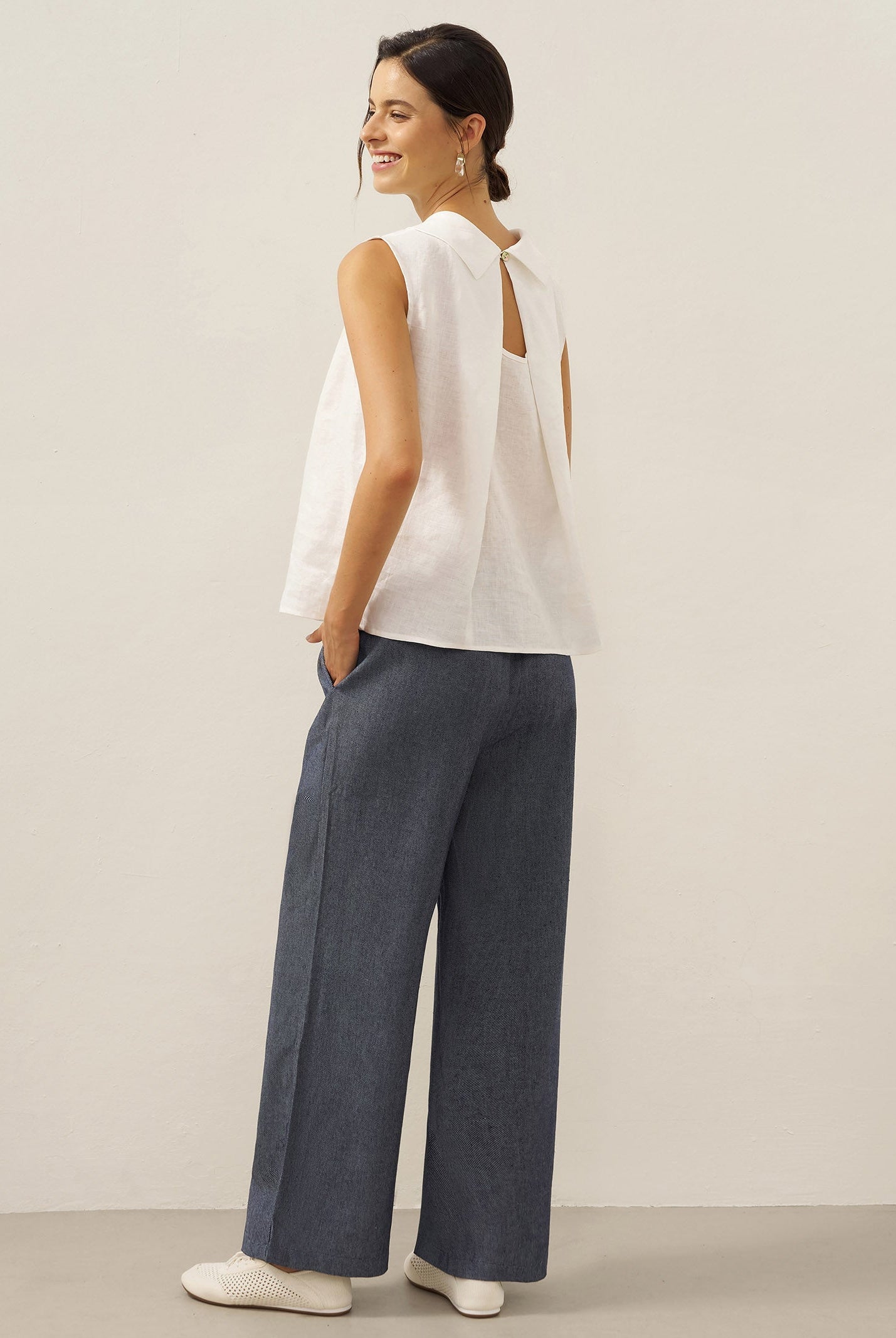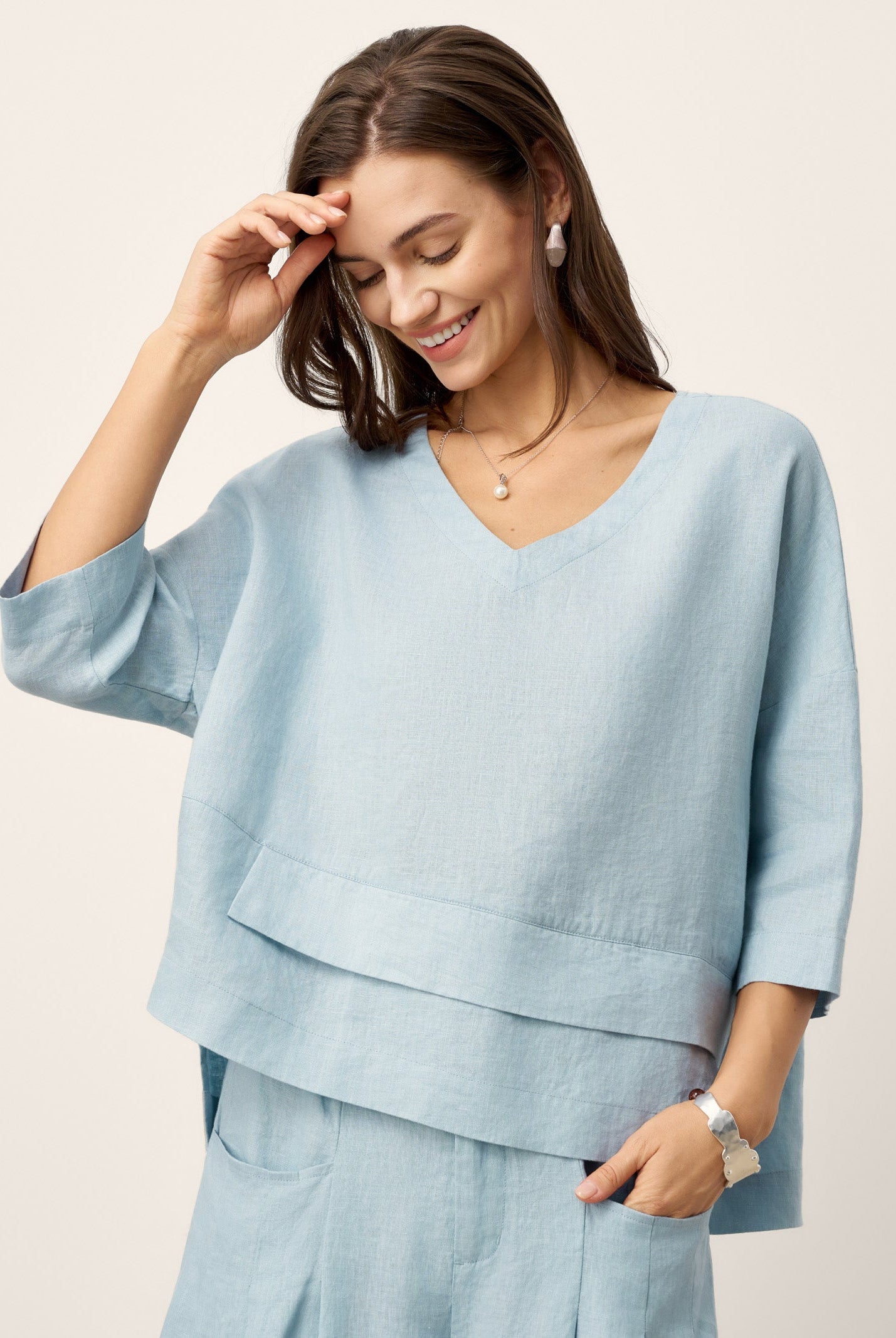 Glissez-vous dans notre haut en lin ultraléger — aussi aérien qu’un après-midi de lecture, où chaque frémissement du tissu porte le parfum des fleurs et des vieux livres.