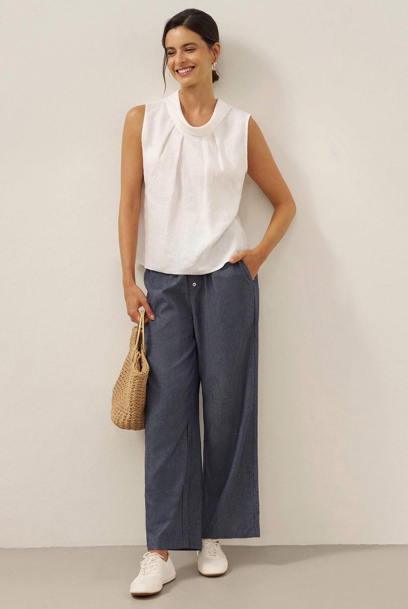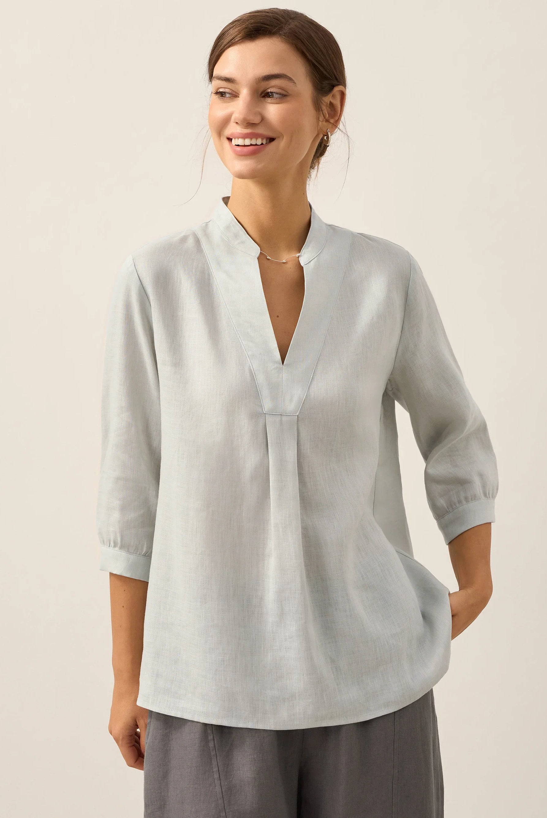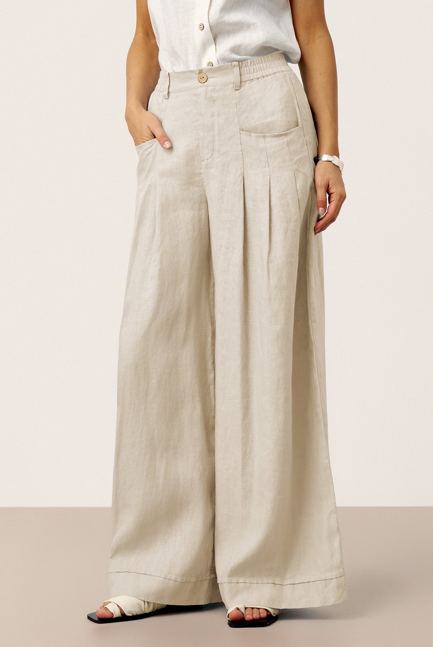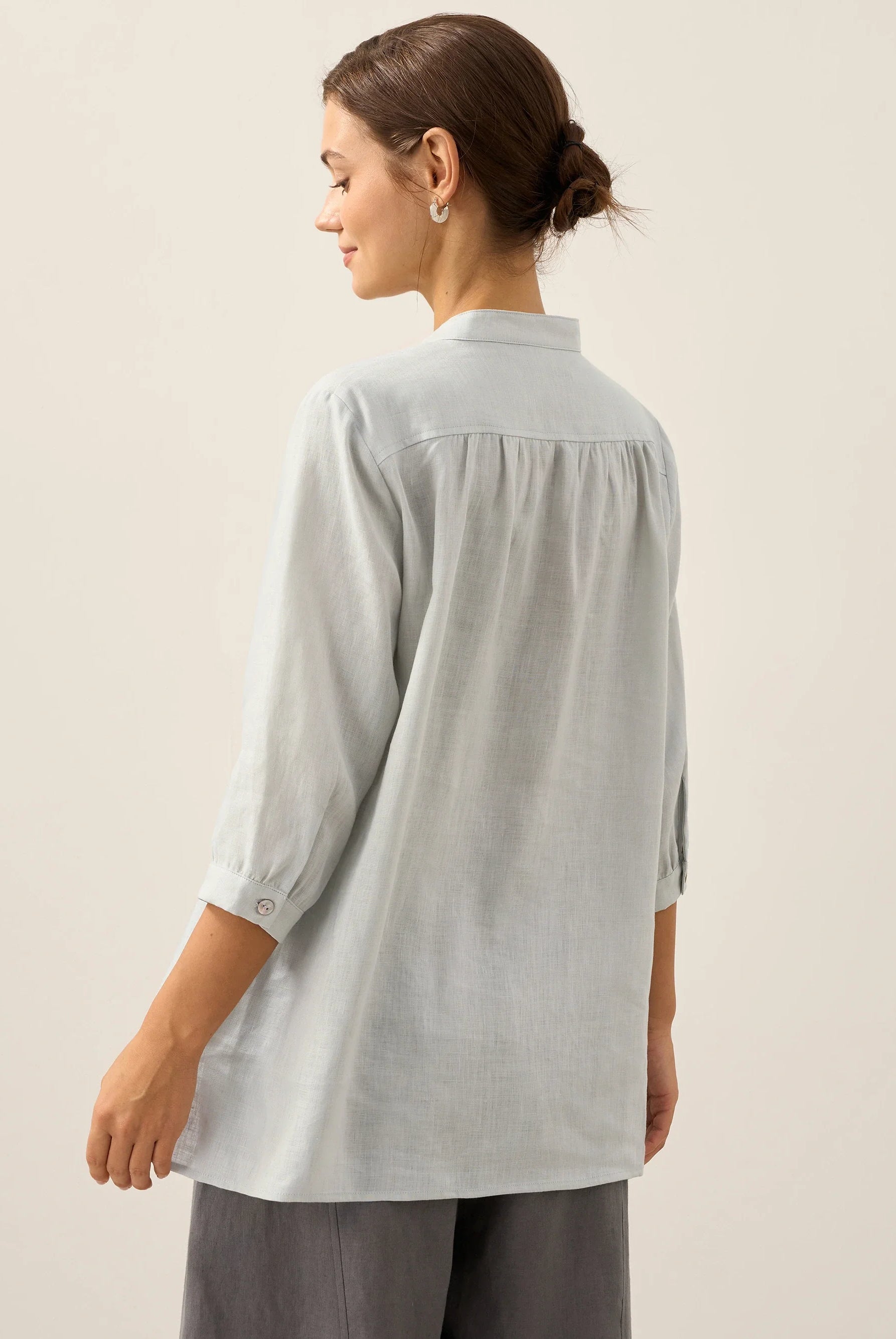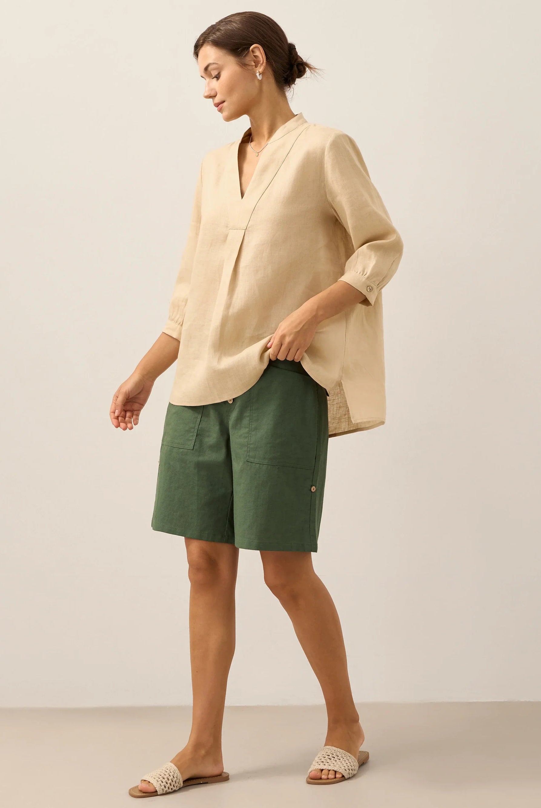 Glissez-vous dans notre haut en lin ultraléger — aussi aérien qu’un après-midi de lecture, où chaque frémissement du tissu porte le parfum des fleurs et des vieux livres.