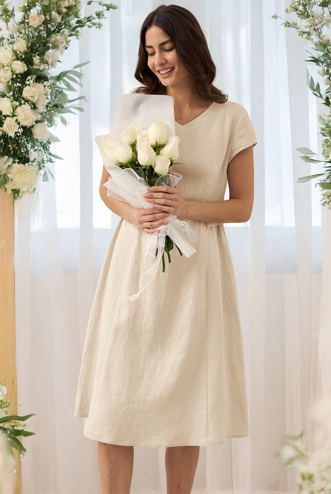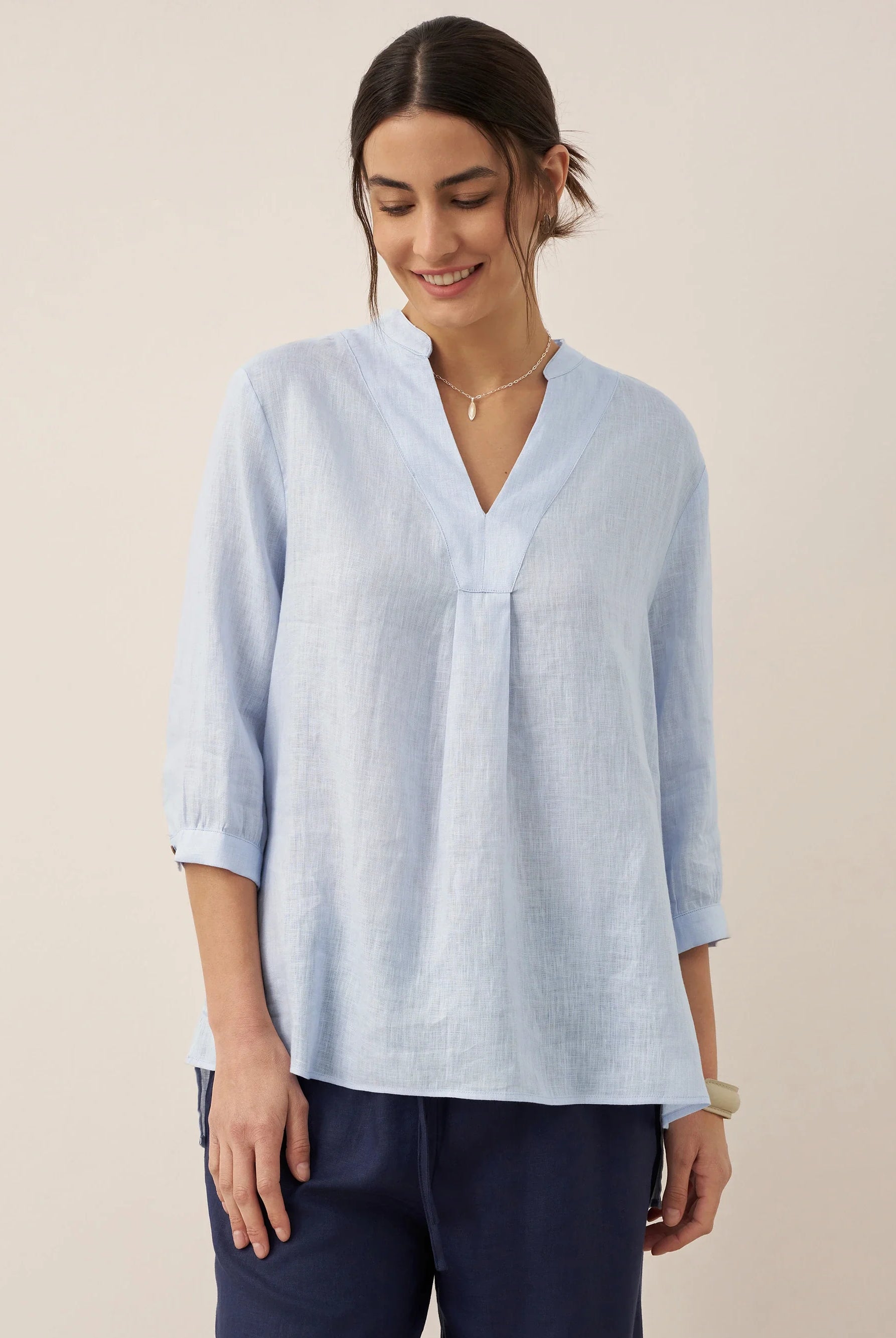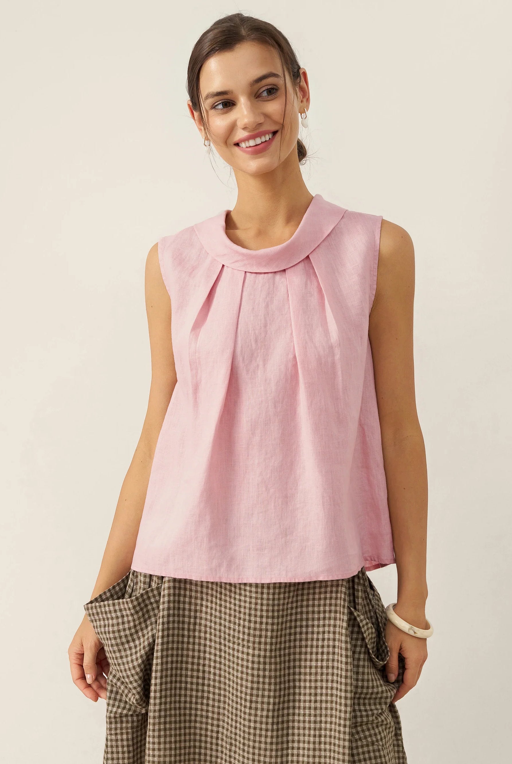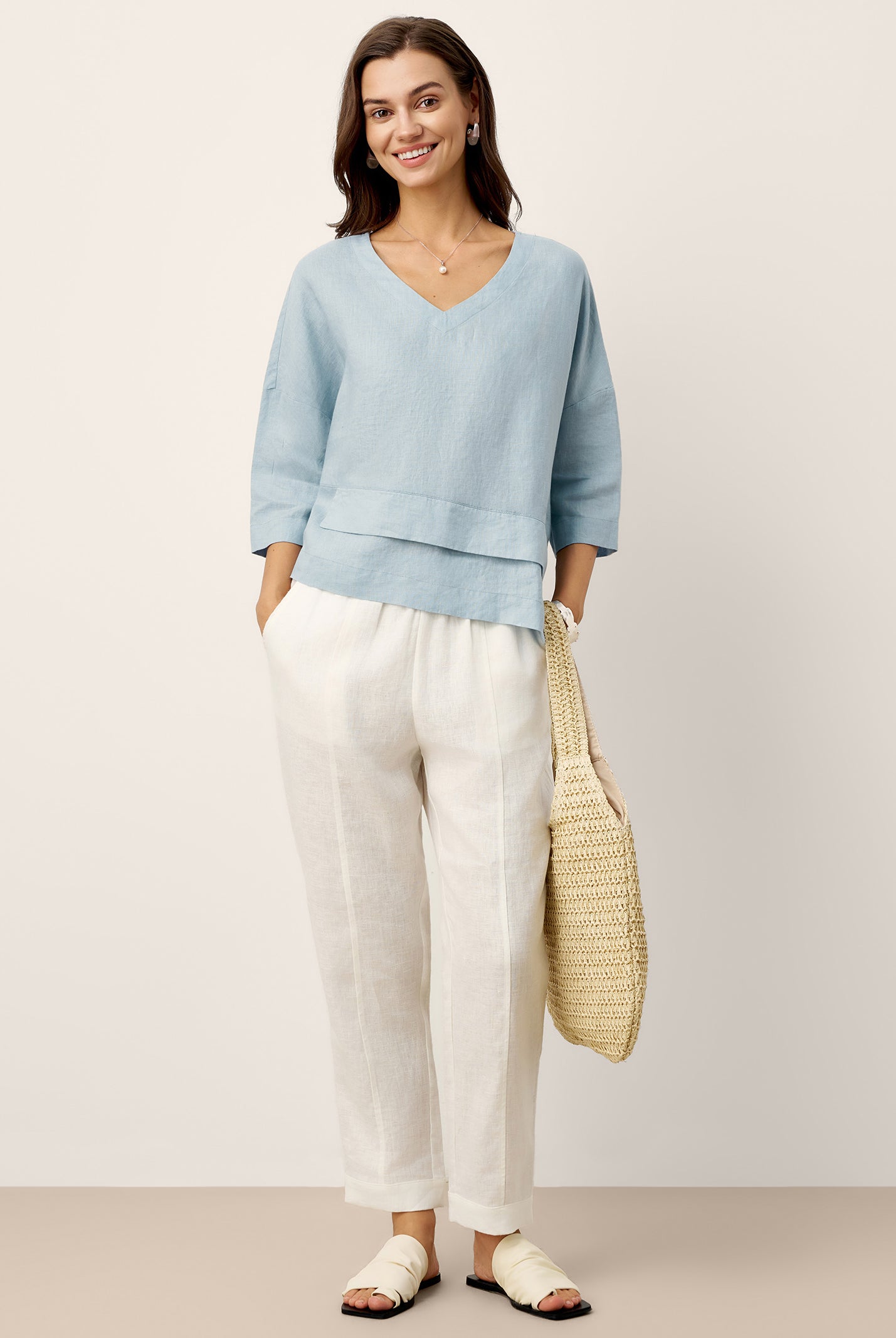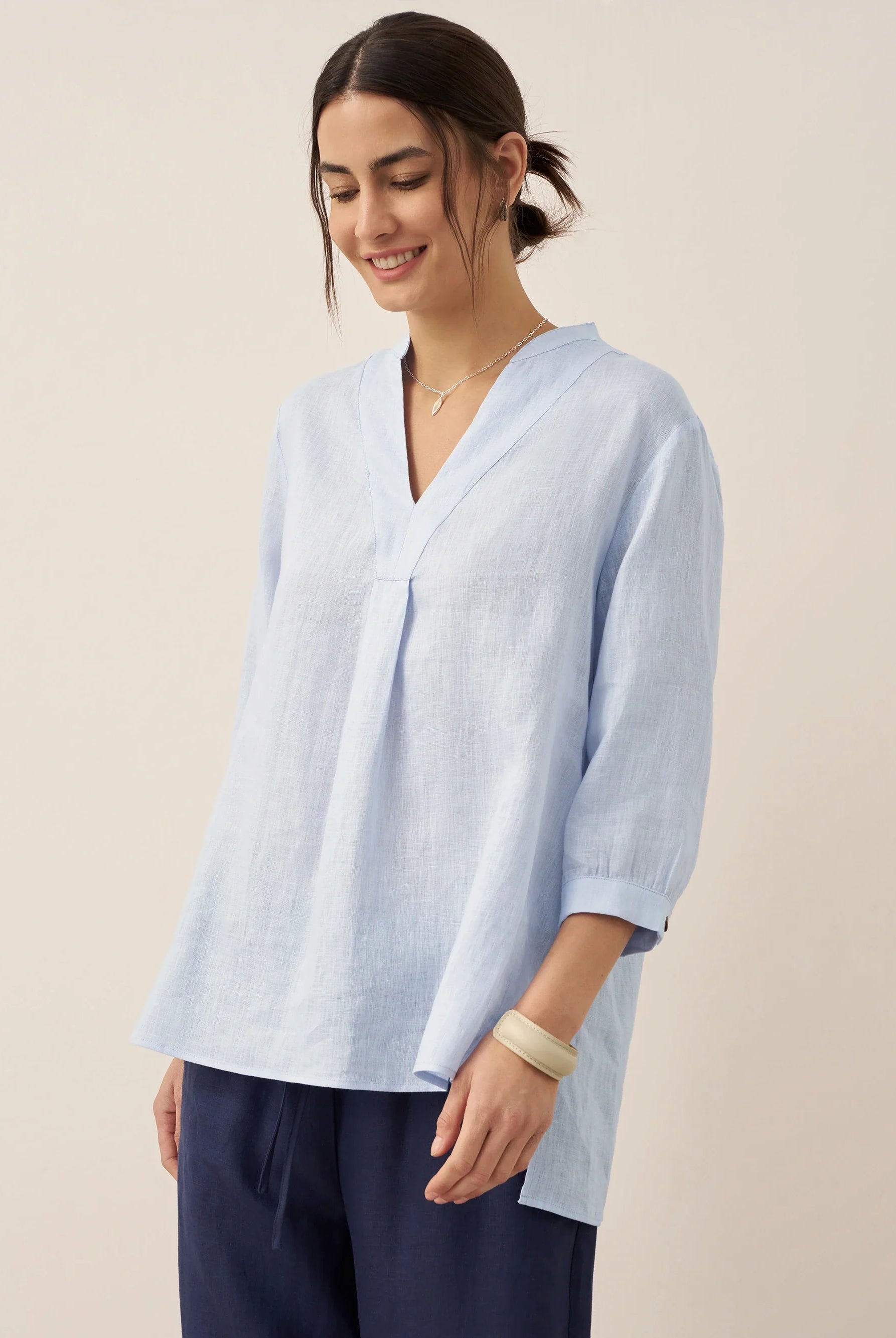 Glissez-vous dans notre haut en lin ultraléger — aussi aérien qu’un après-midi de lecture, où chaque frémissement du tissu porte le parfum des fleurs et des vieux livres.