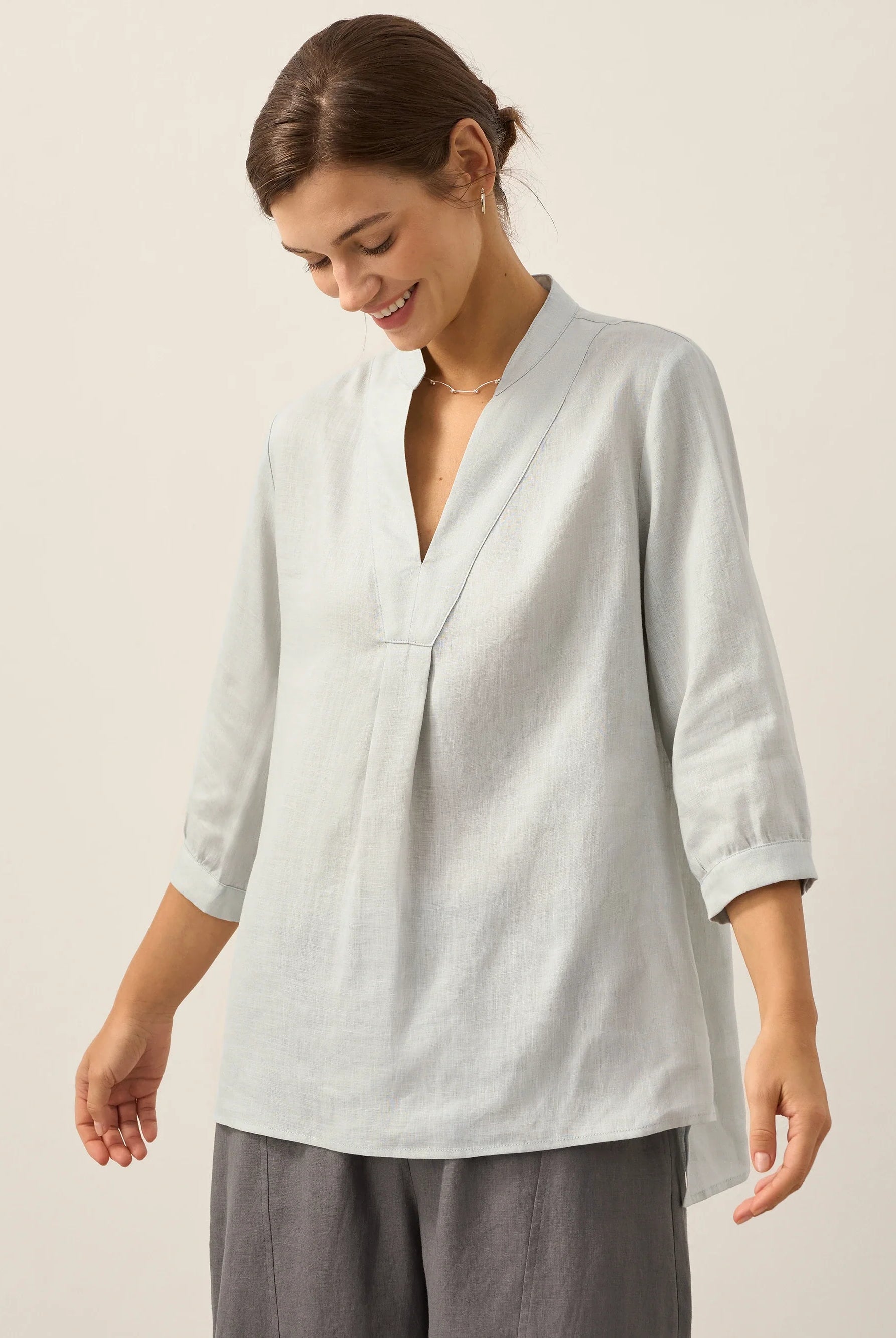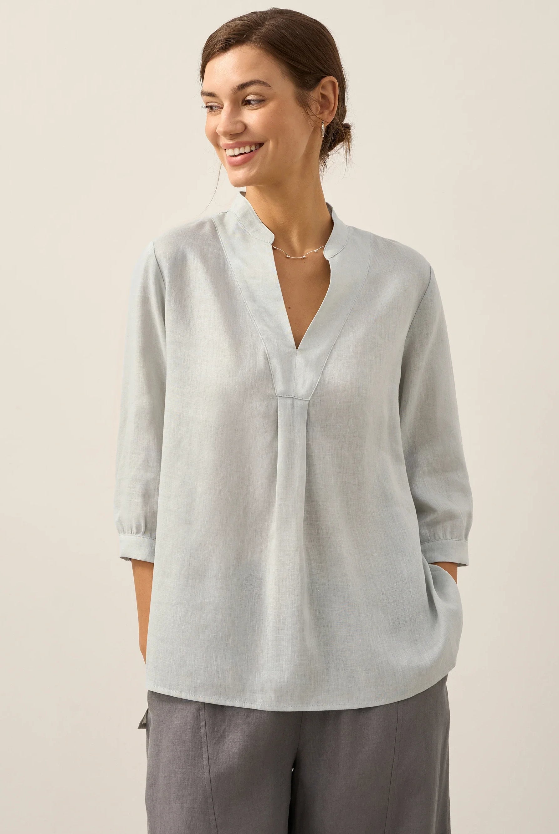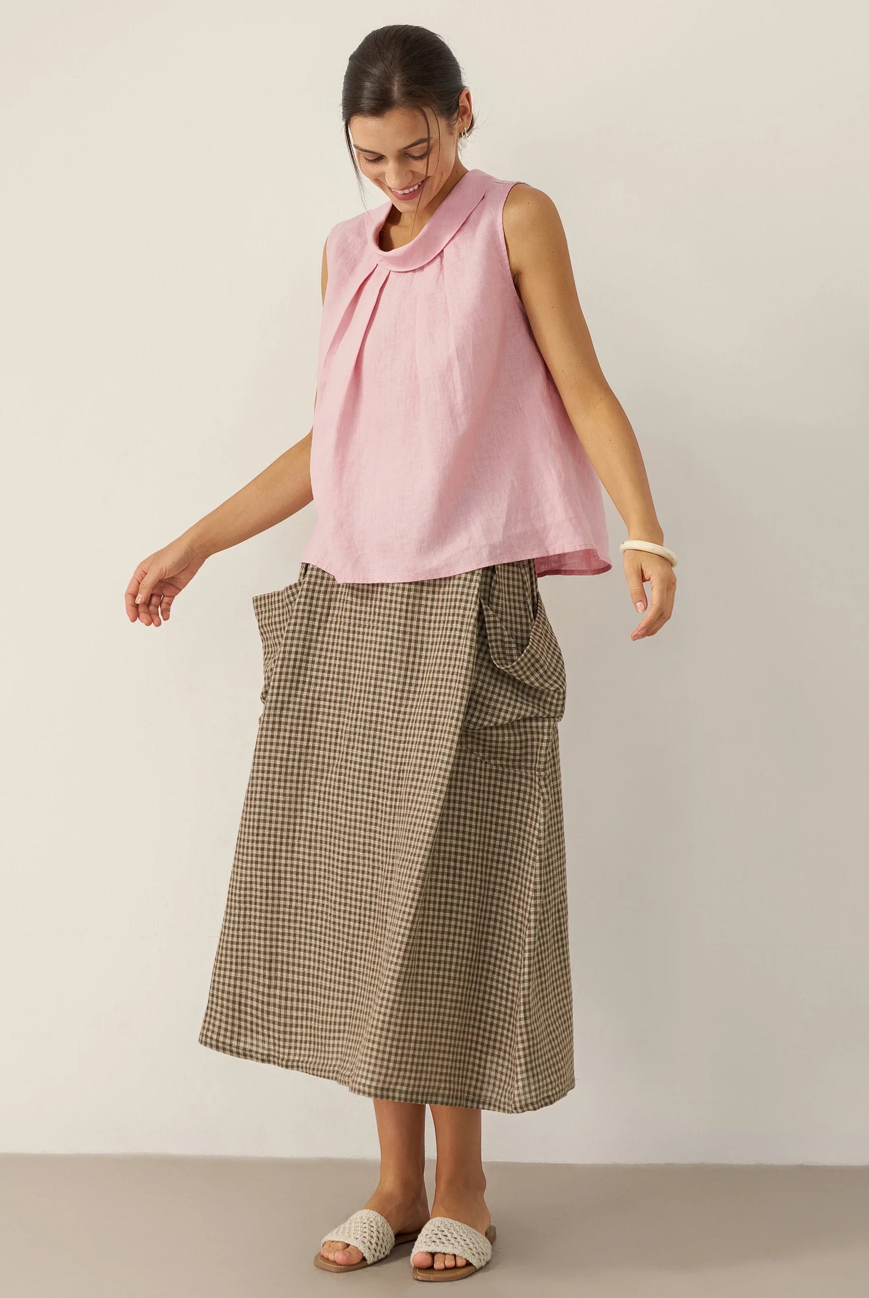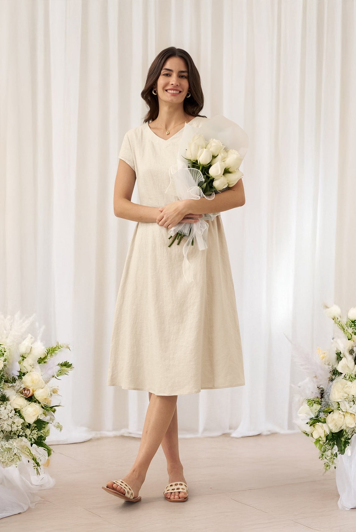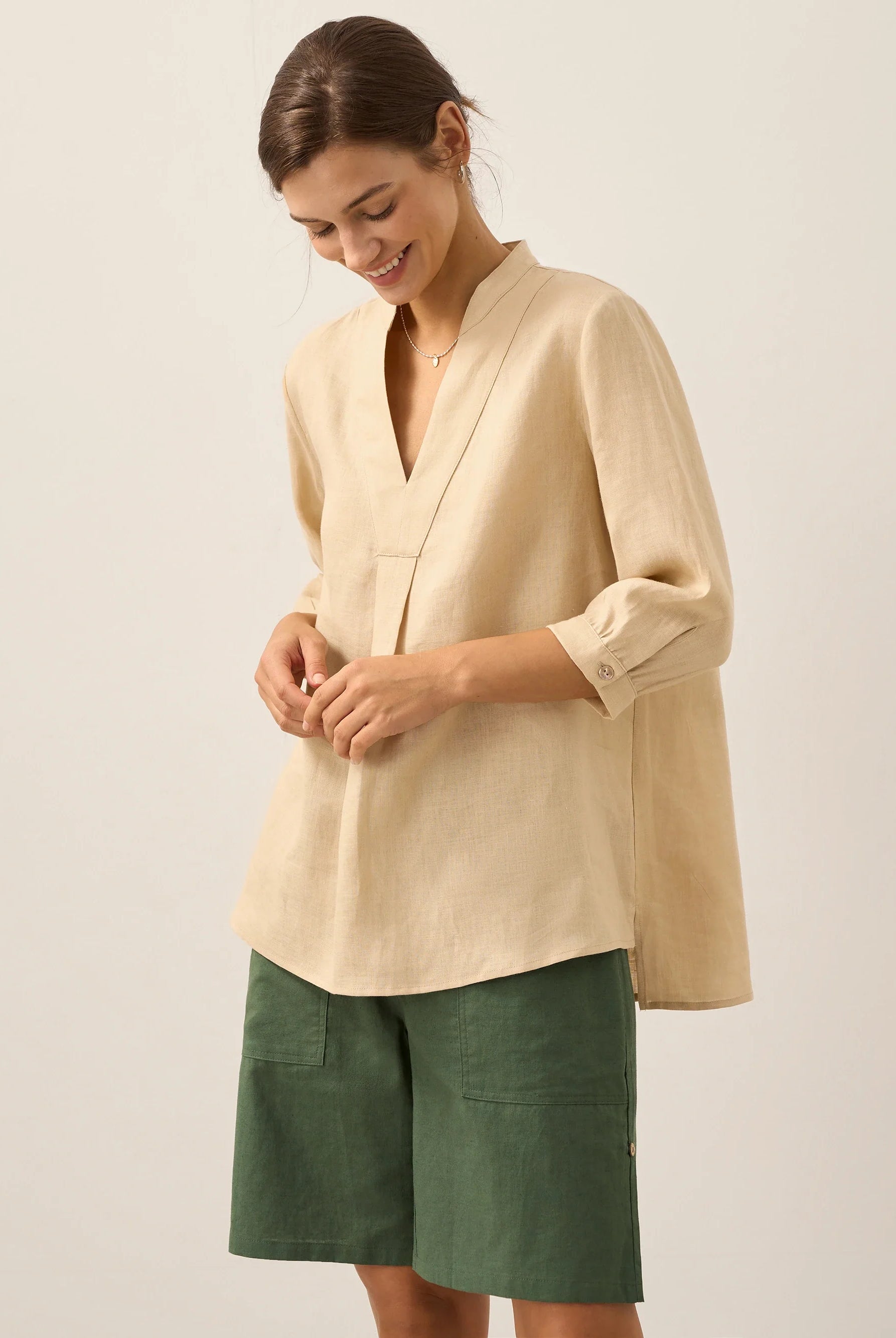 Glissez-vous dans notre haut en lin ultraléger — aussi aérien qu’un après-midi de lecture, où chaque frémissement du tissu porte le parfum des fleurs et des vieux livres.