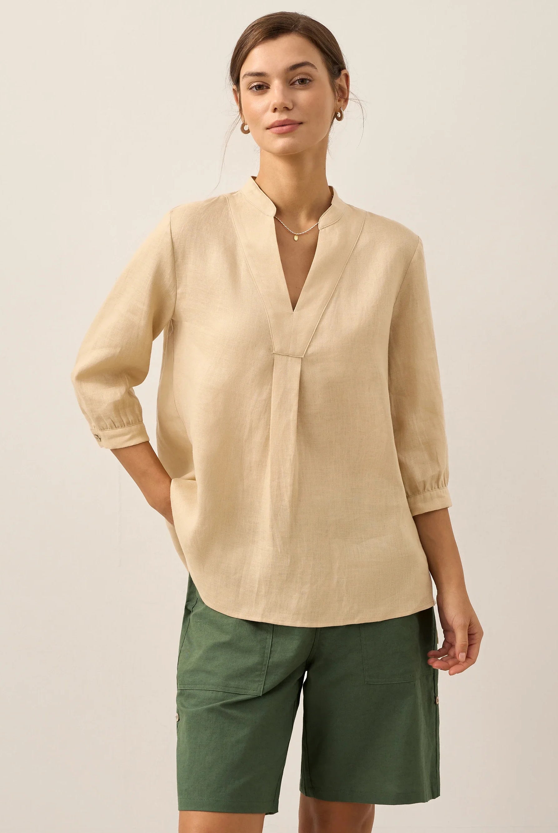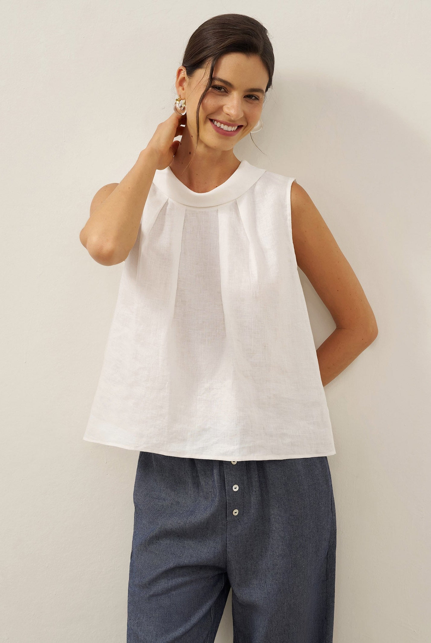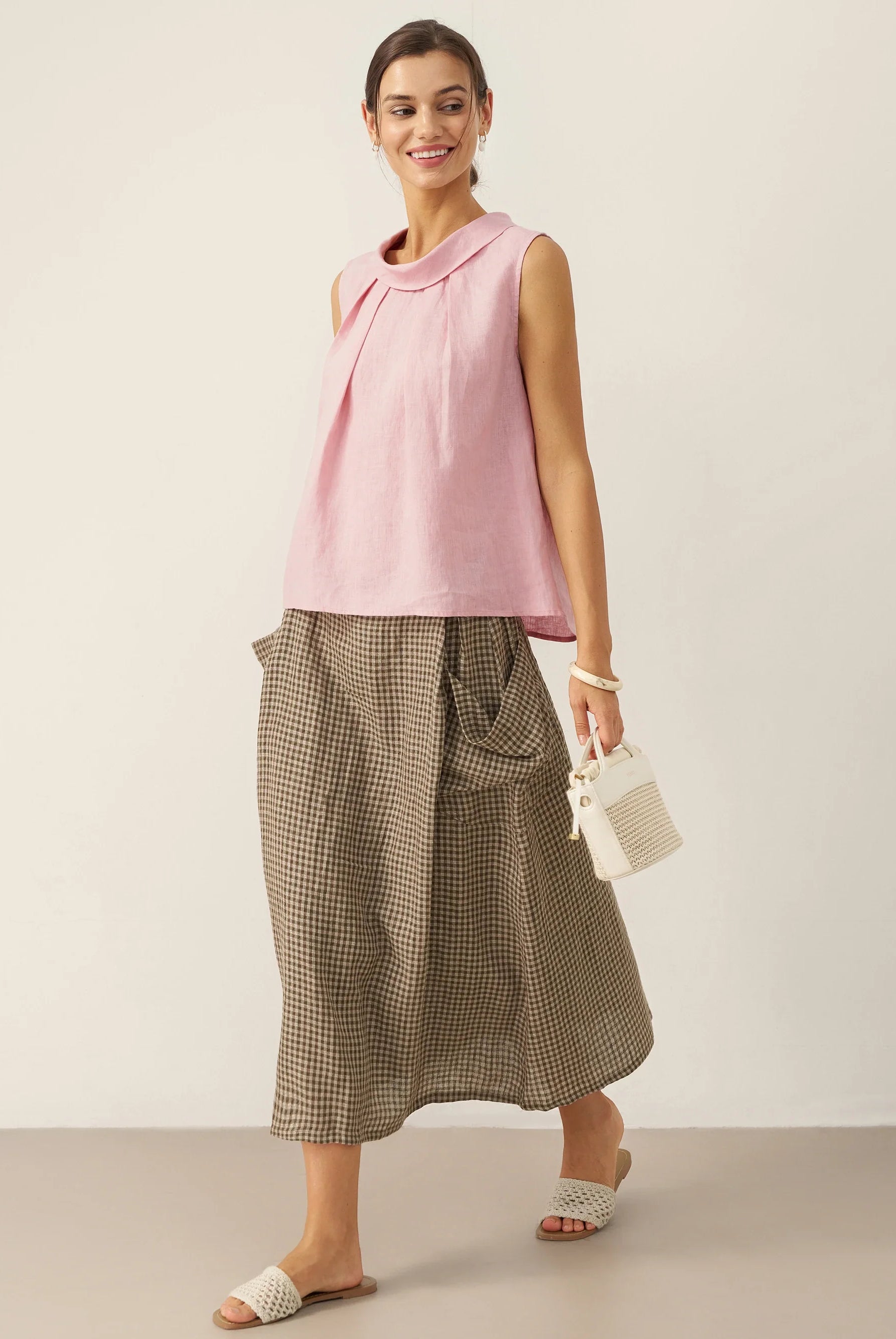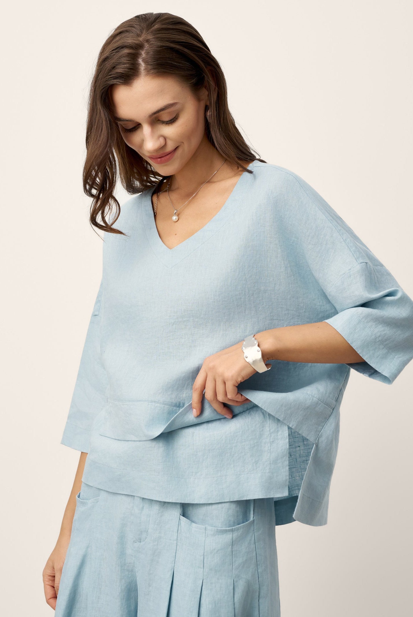Glissez-vous dans notre haut en lin ultraléger — aussi aérien qu’un après-midi de lecture, où chaque frémissement du tissu porte le parfum des fleurs et des vieux livres.