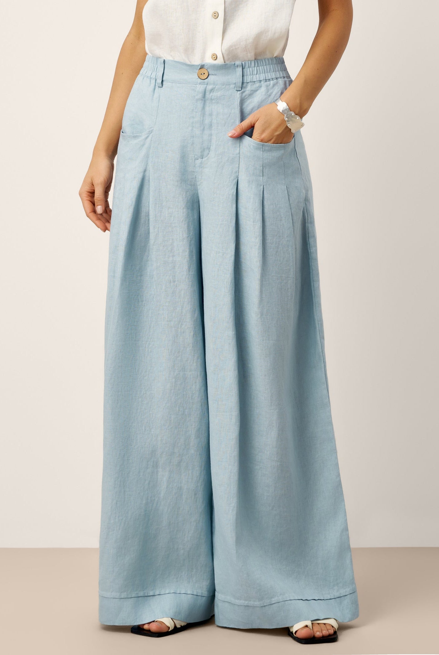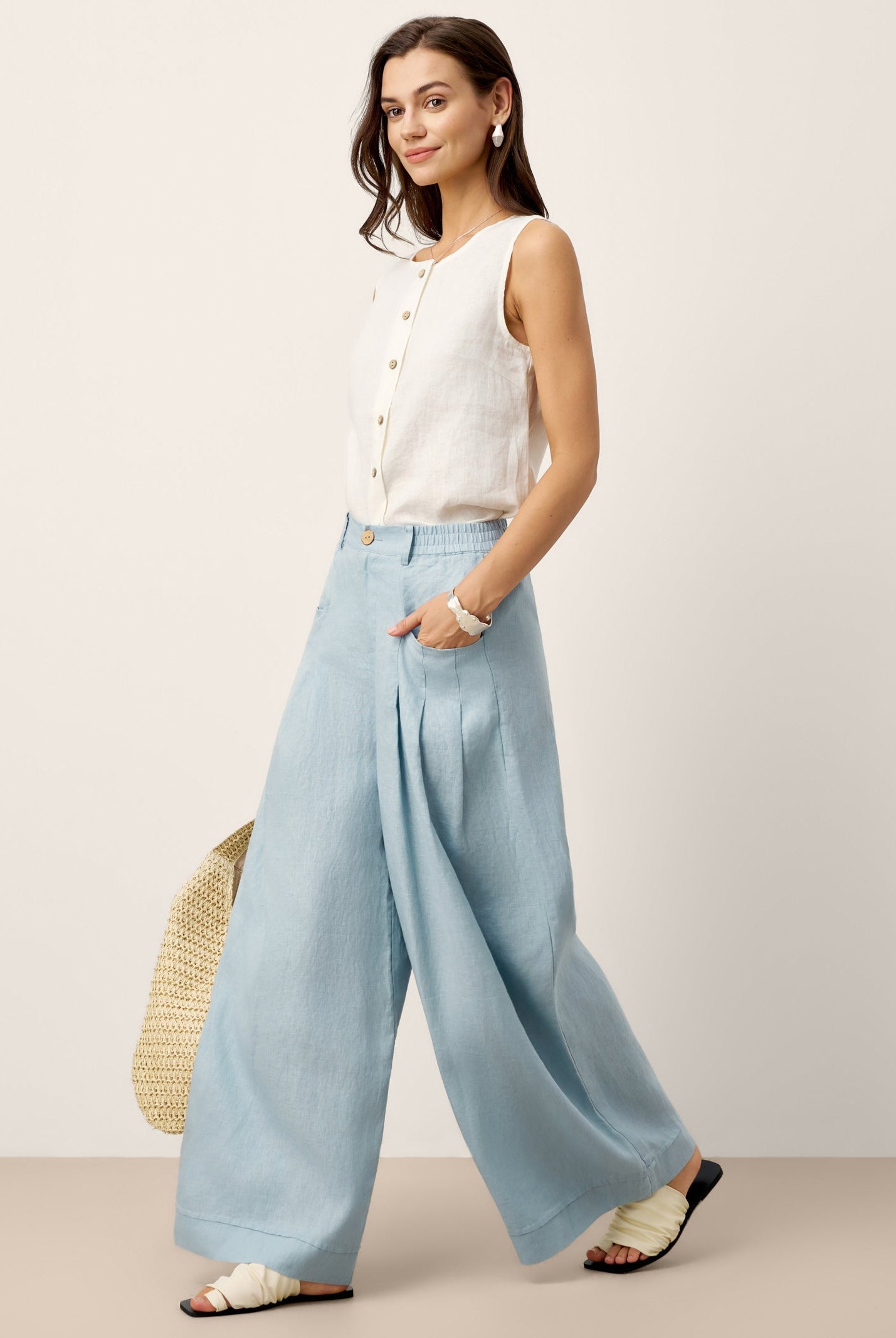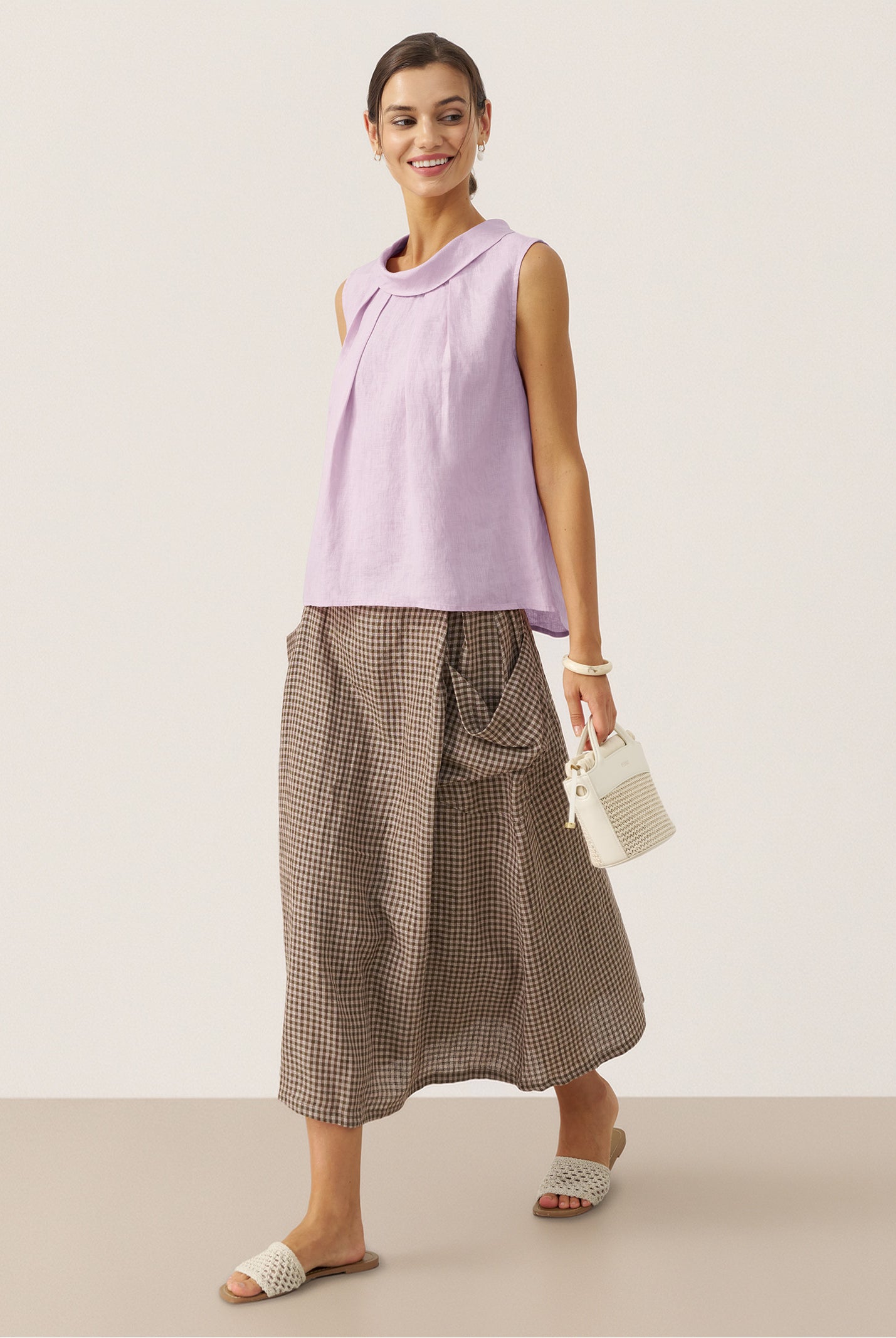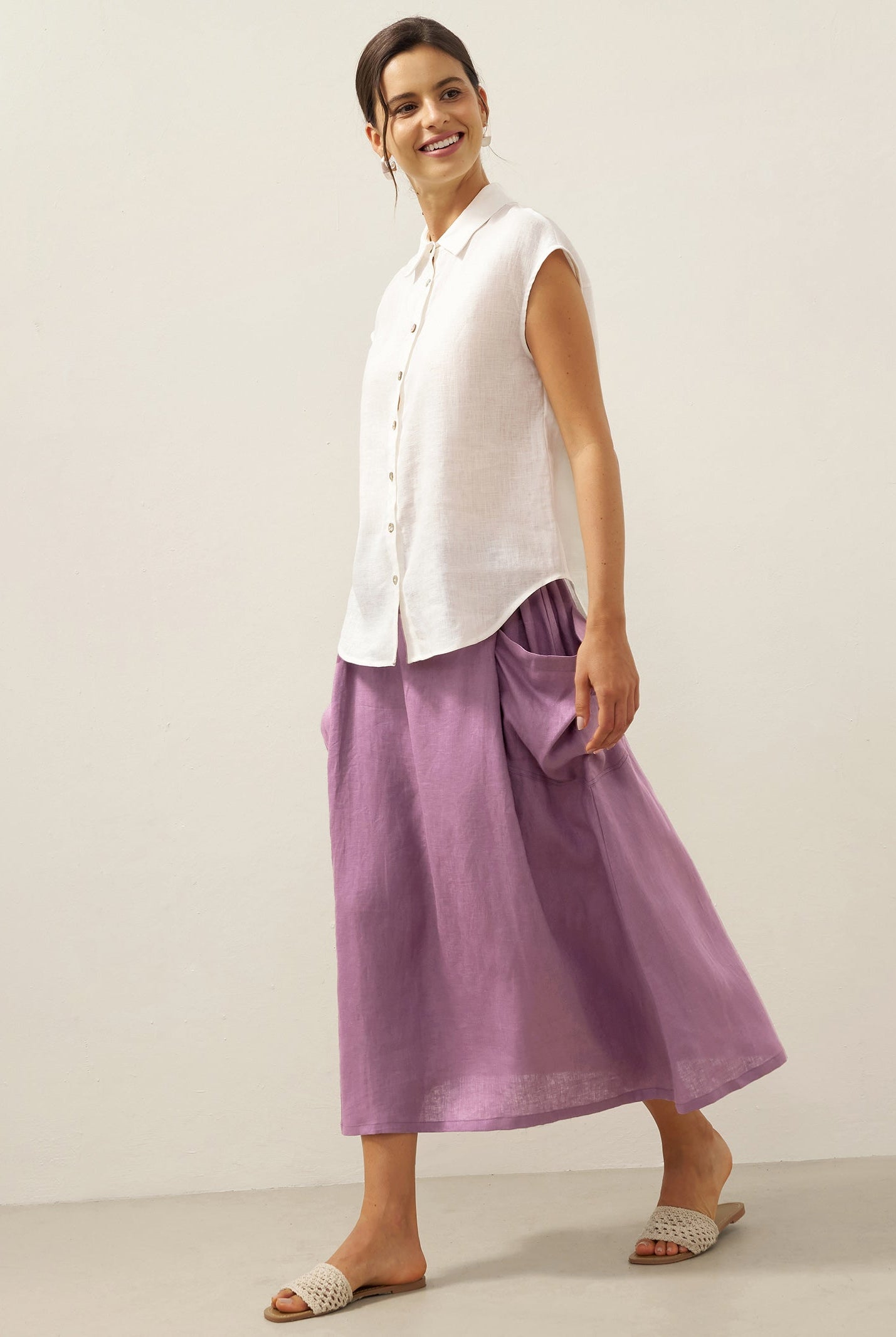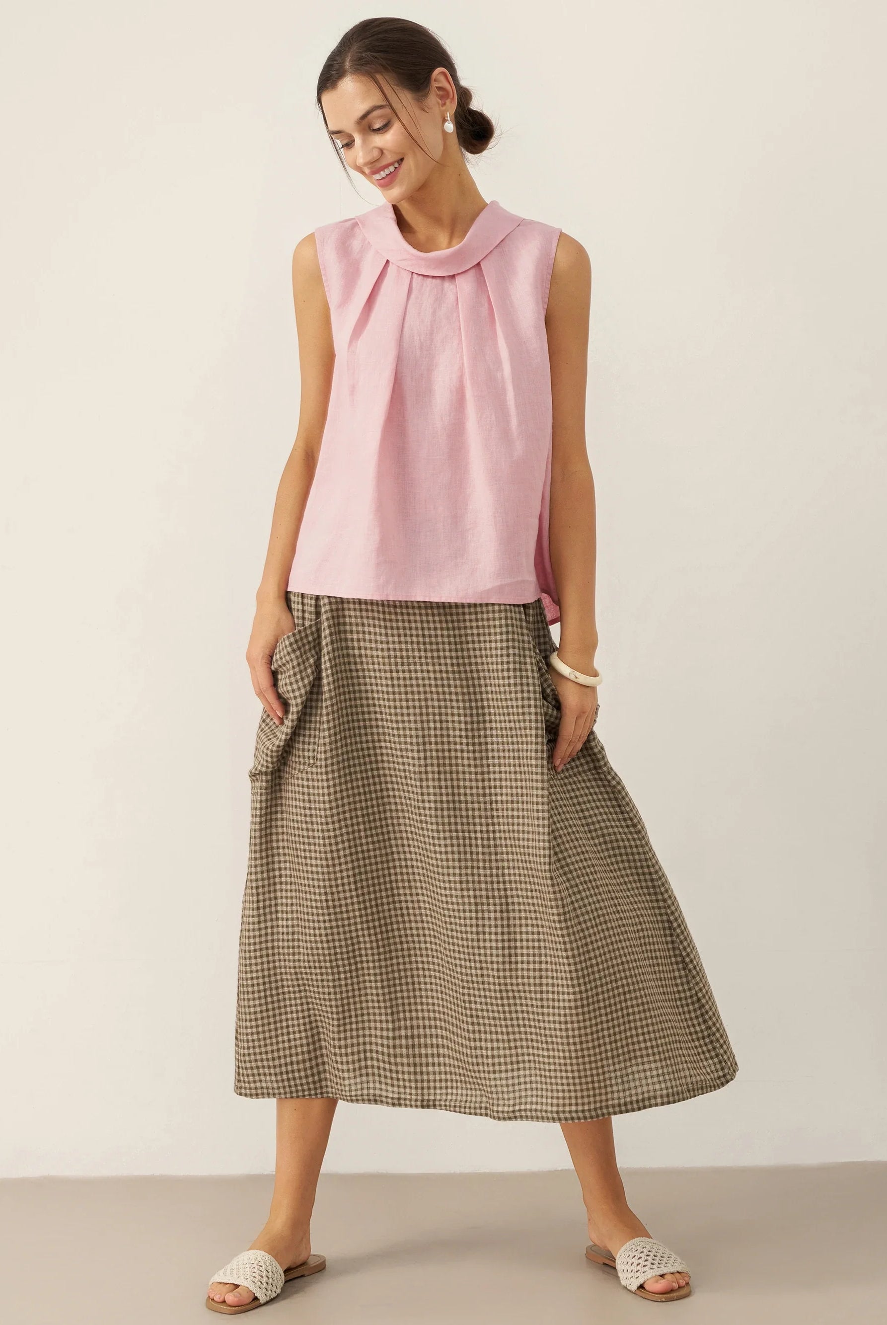 Glissez-vous dans notre haut en lin ultraléger — aussi aérien qu’un après-midi de lecture, où chaque frémissement du tissu porte le parfum des fleurs et des vieux livres.