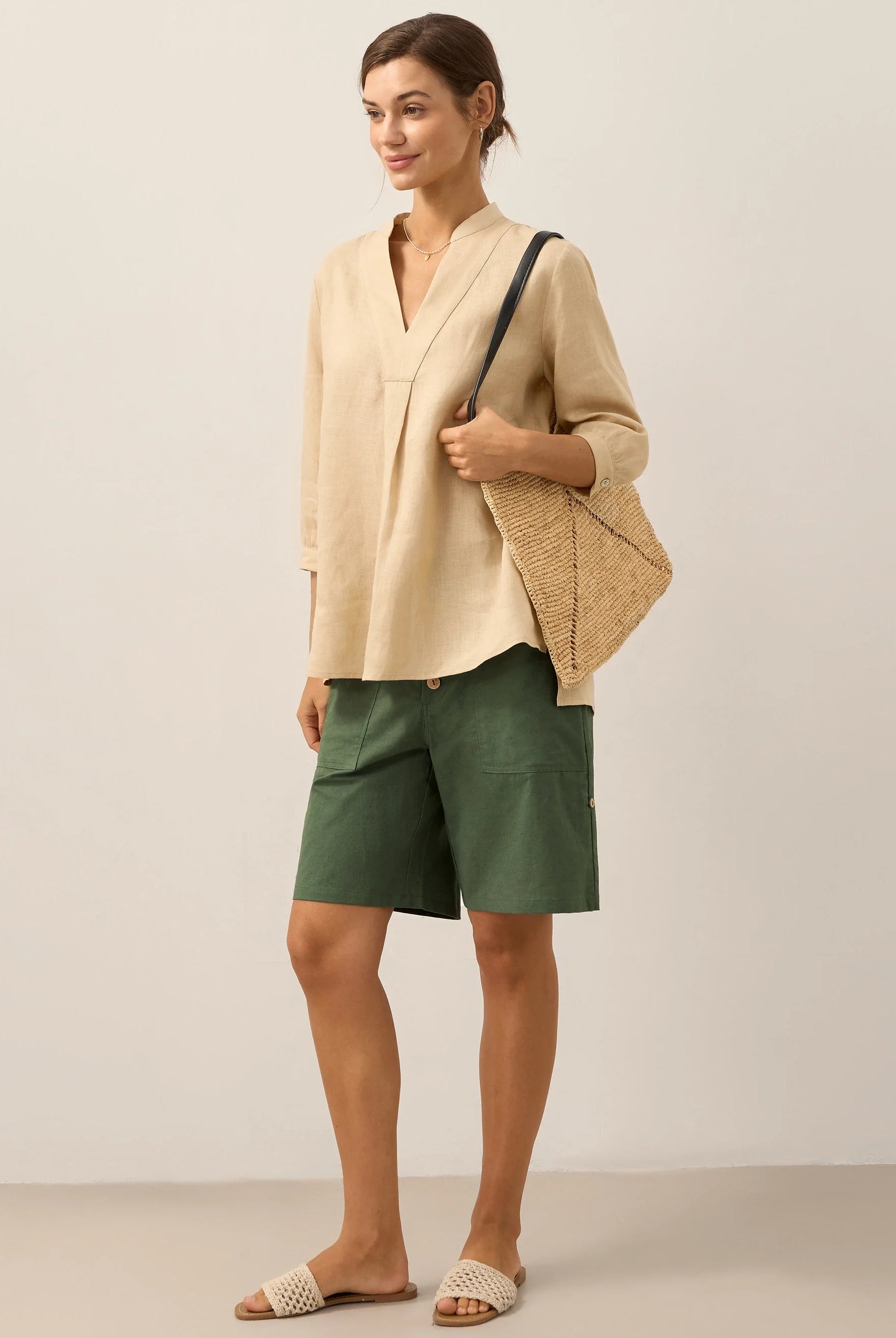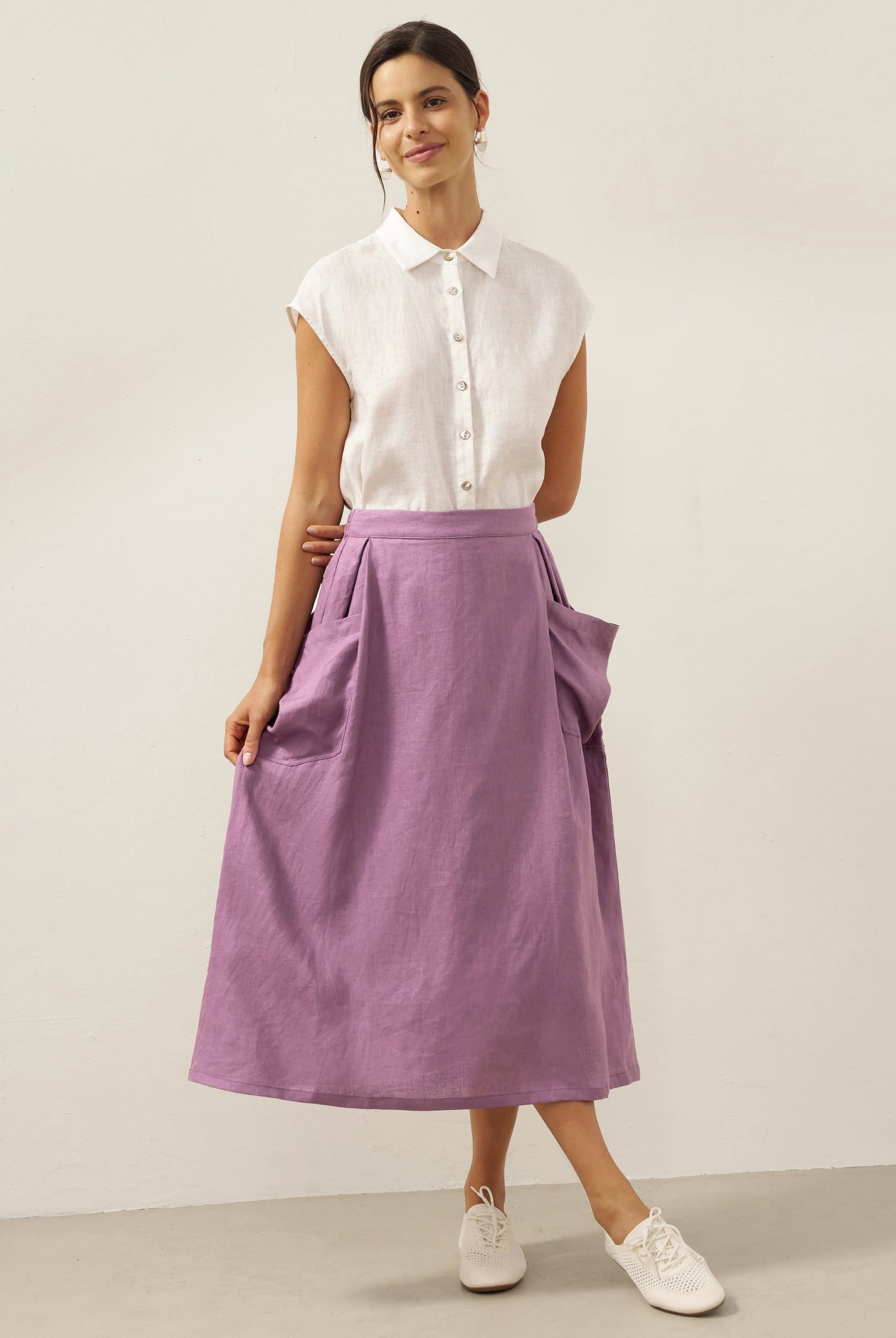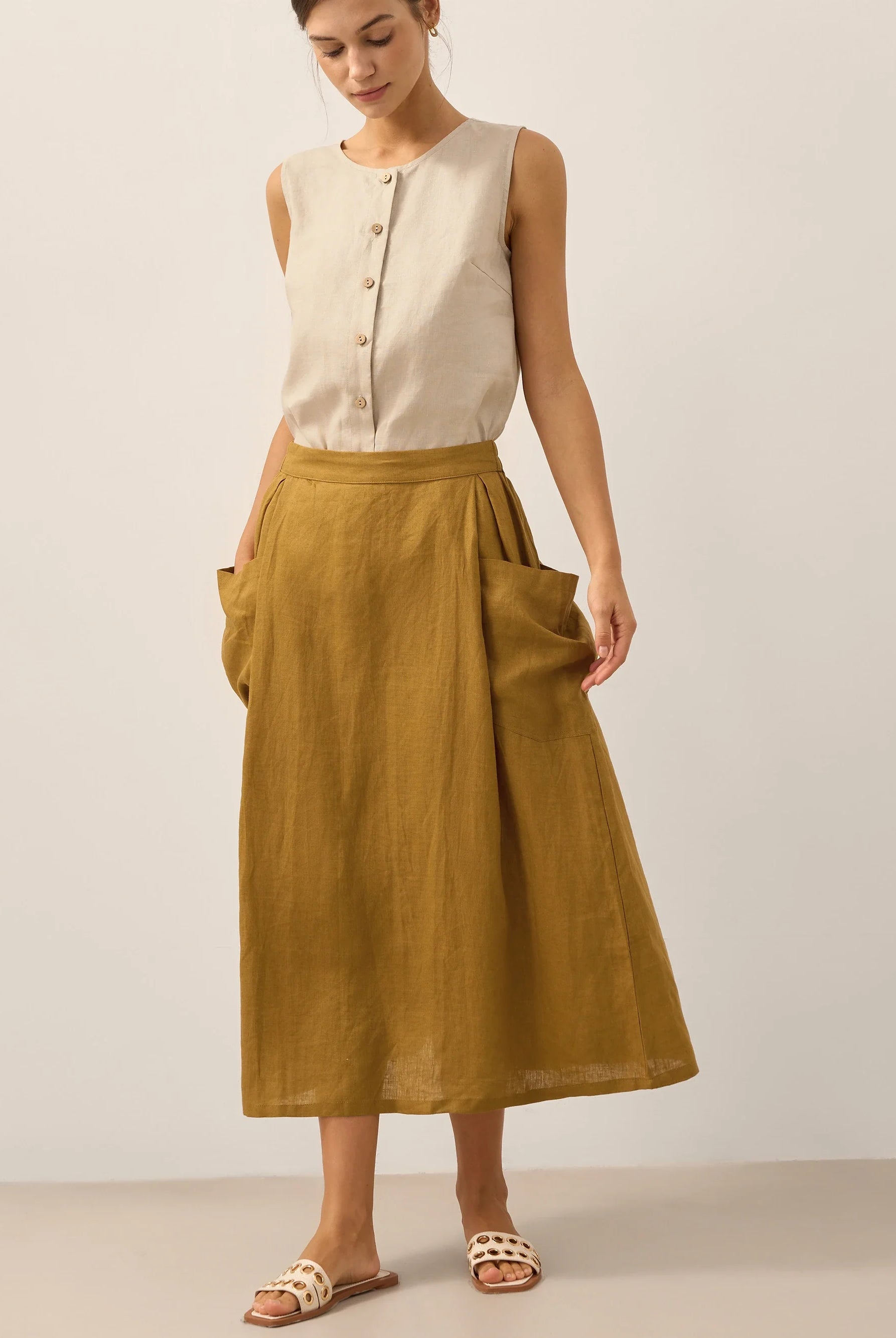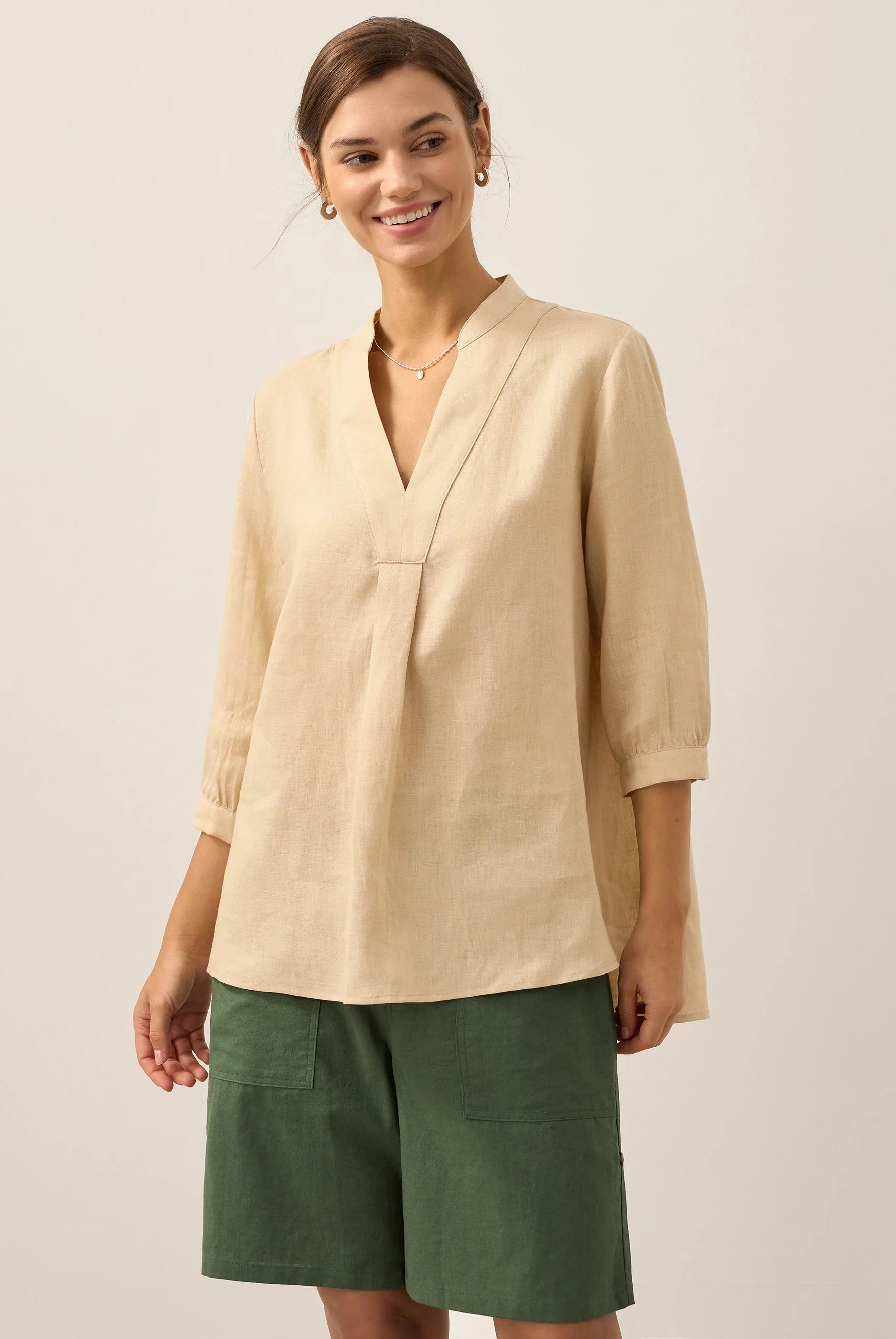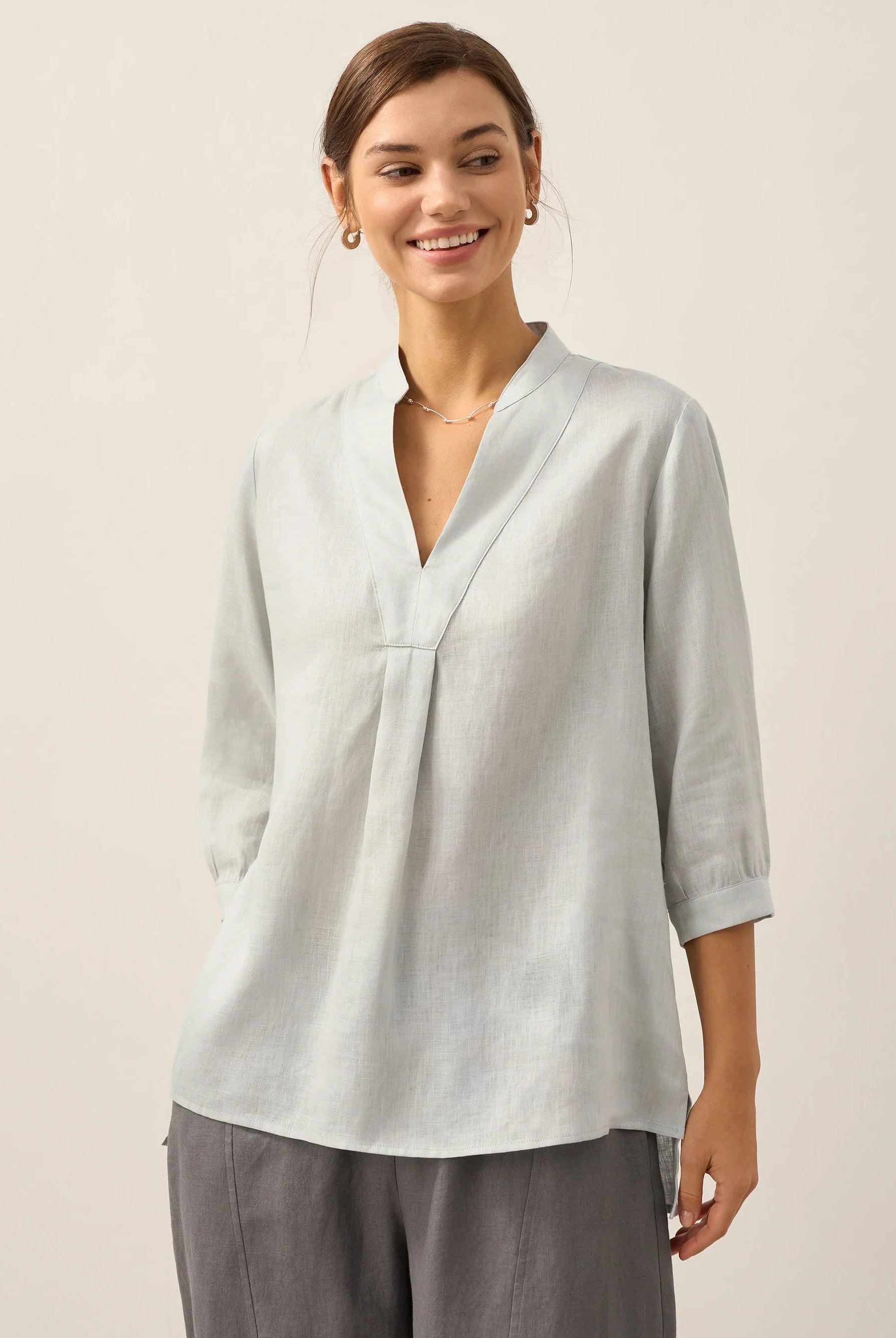 Glissez-vous dans notre haut en lin ultraléger — aussi aérien qu’un après-midi de lecture, où chaque frémissement du tissu porte le parfum des fleurs et des vieux livres.