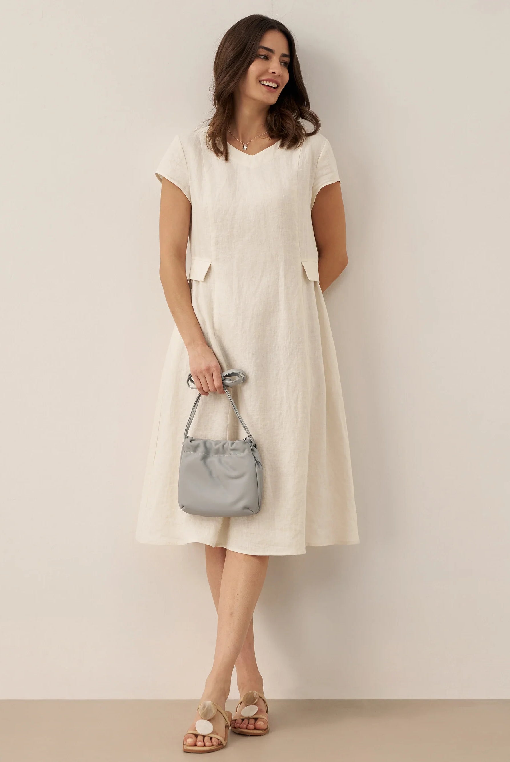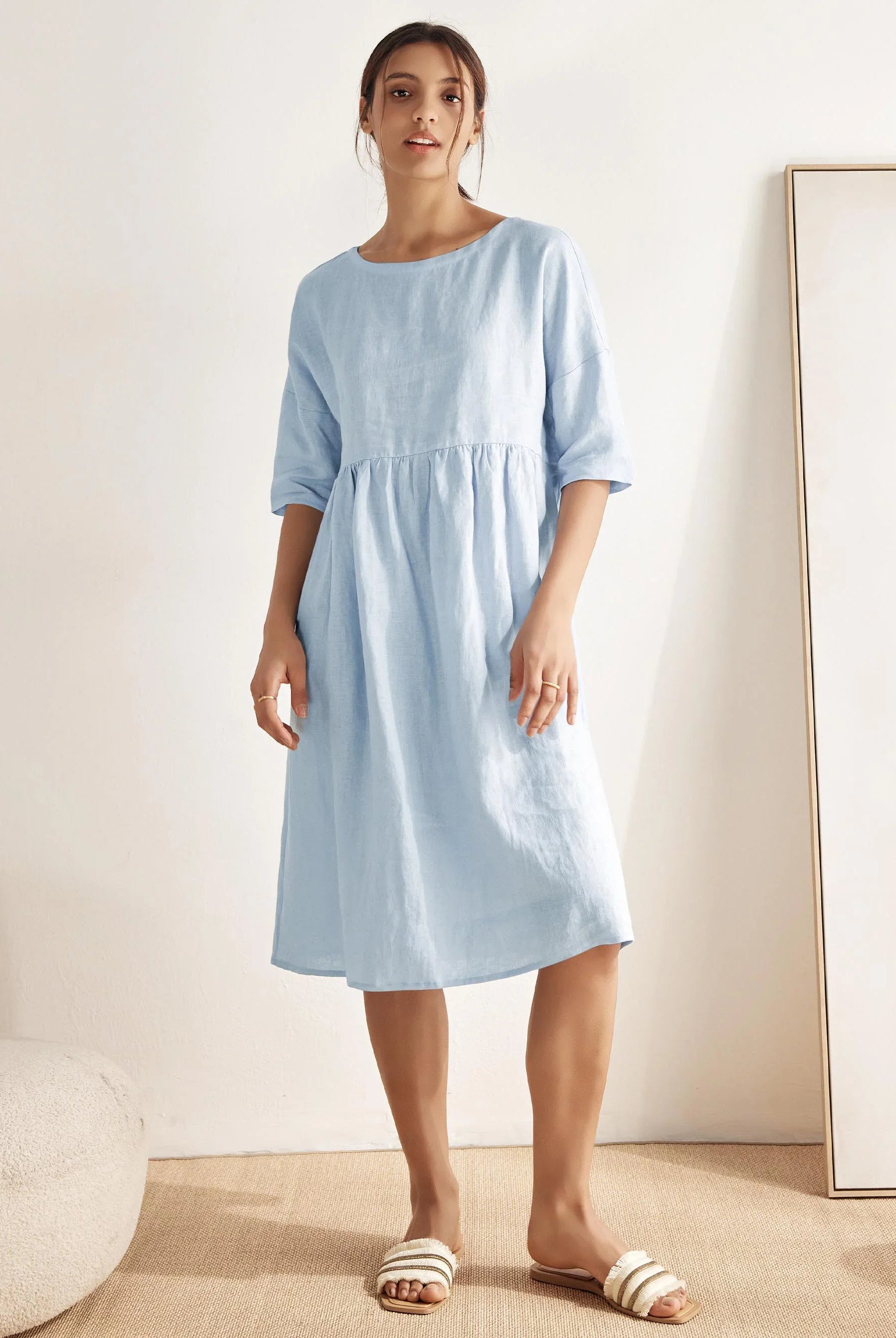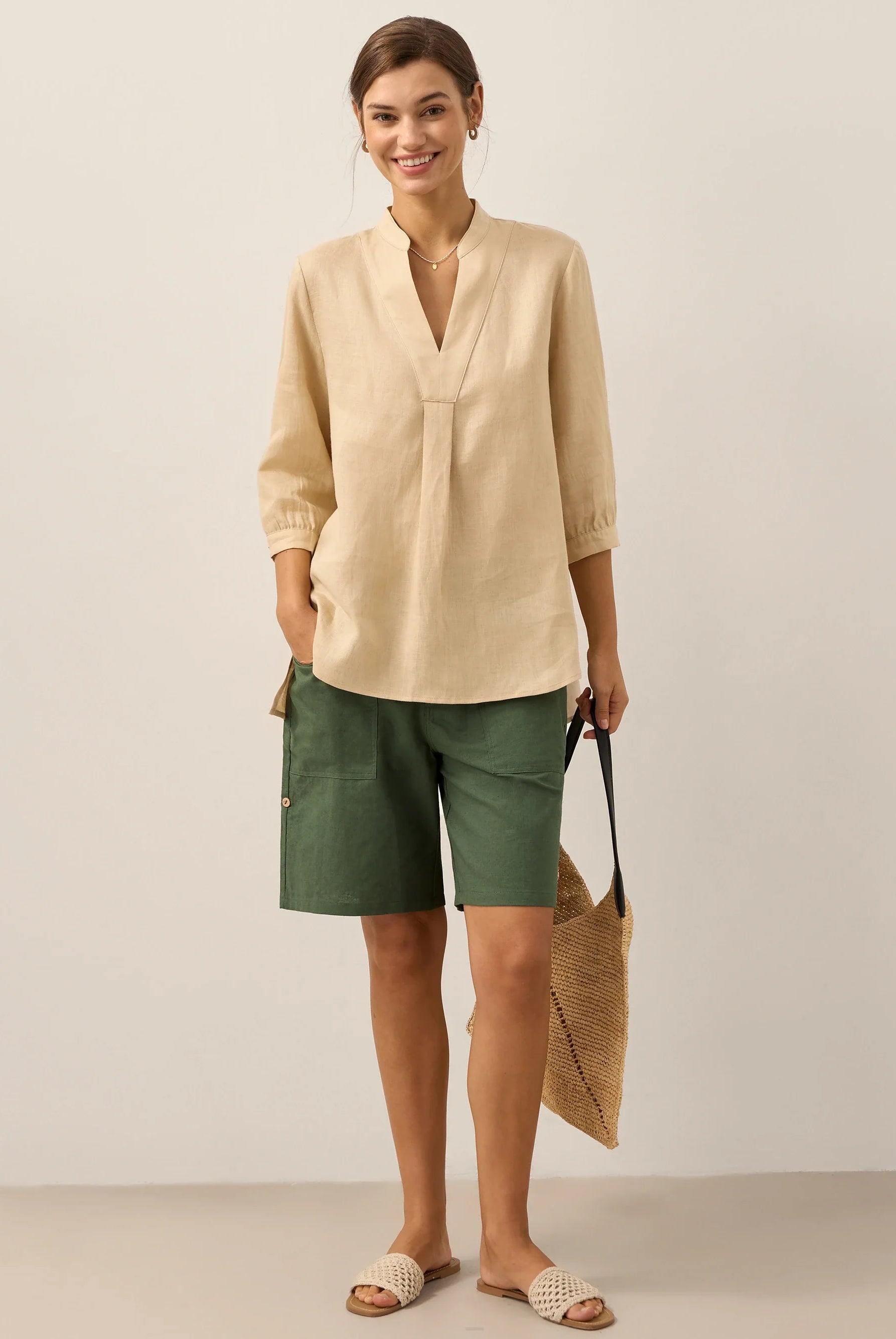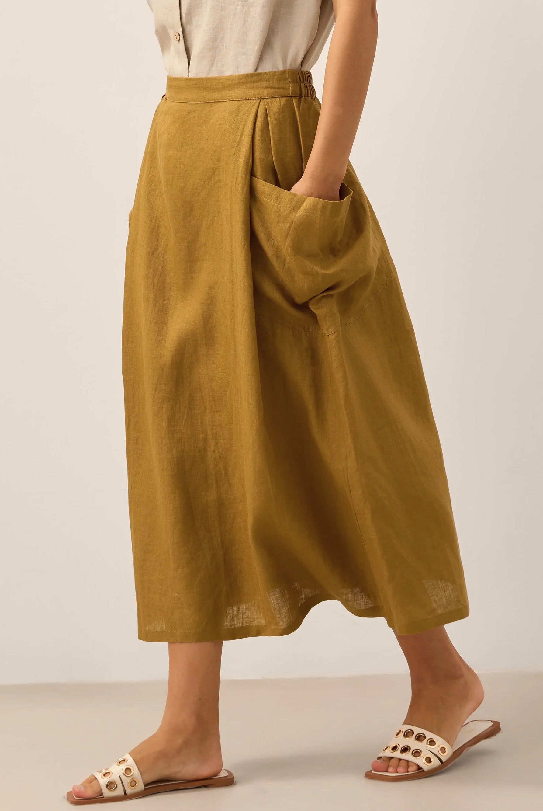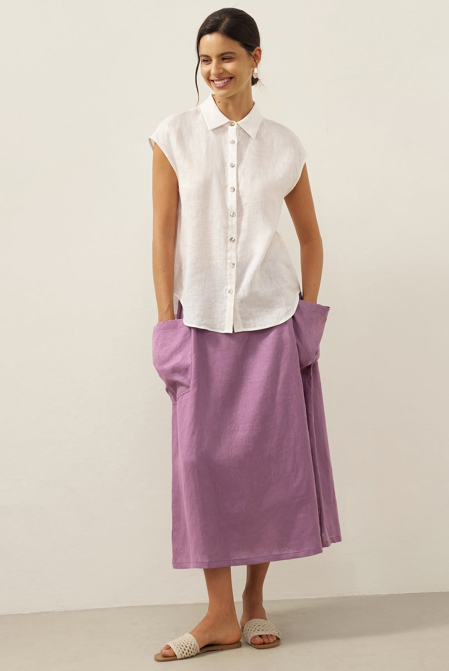 Glissez-vous dans notre haut en lin ultraléger — aussi aérien qu’un après-midi de lecture, où chaque frémissement du tissu porte le parfum des fleurs et des vieux livres.