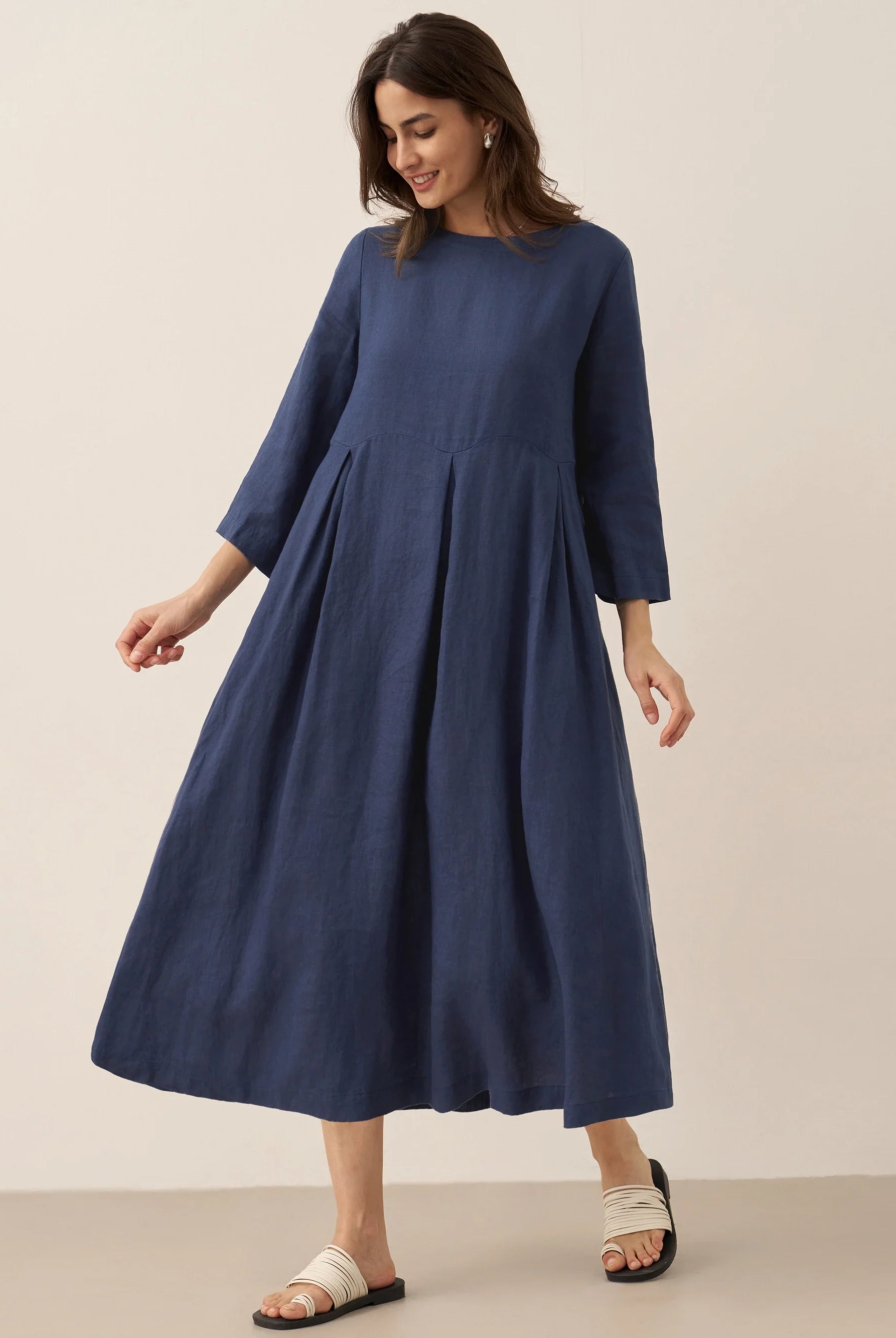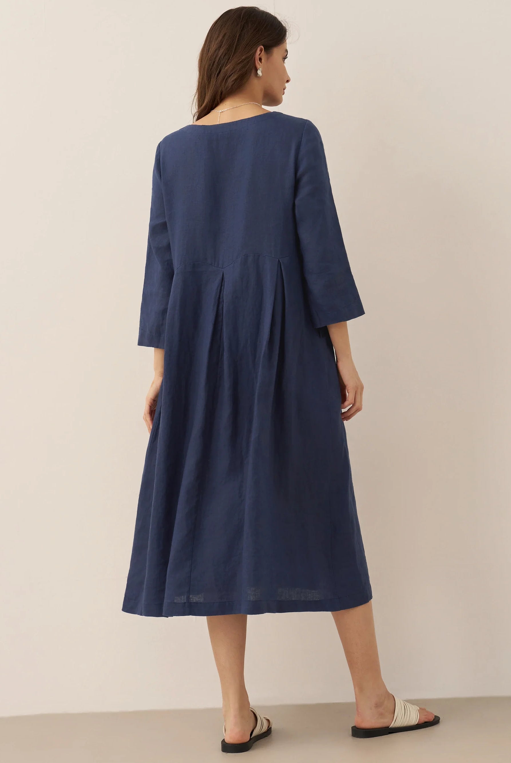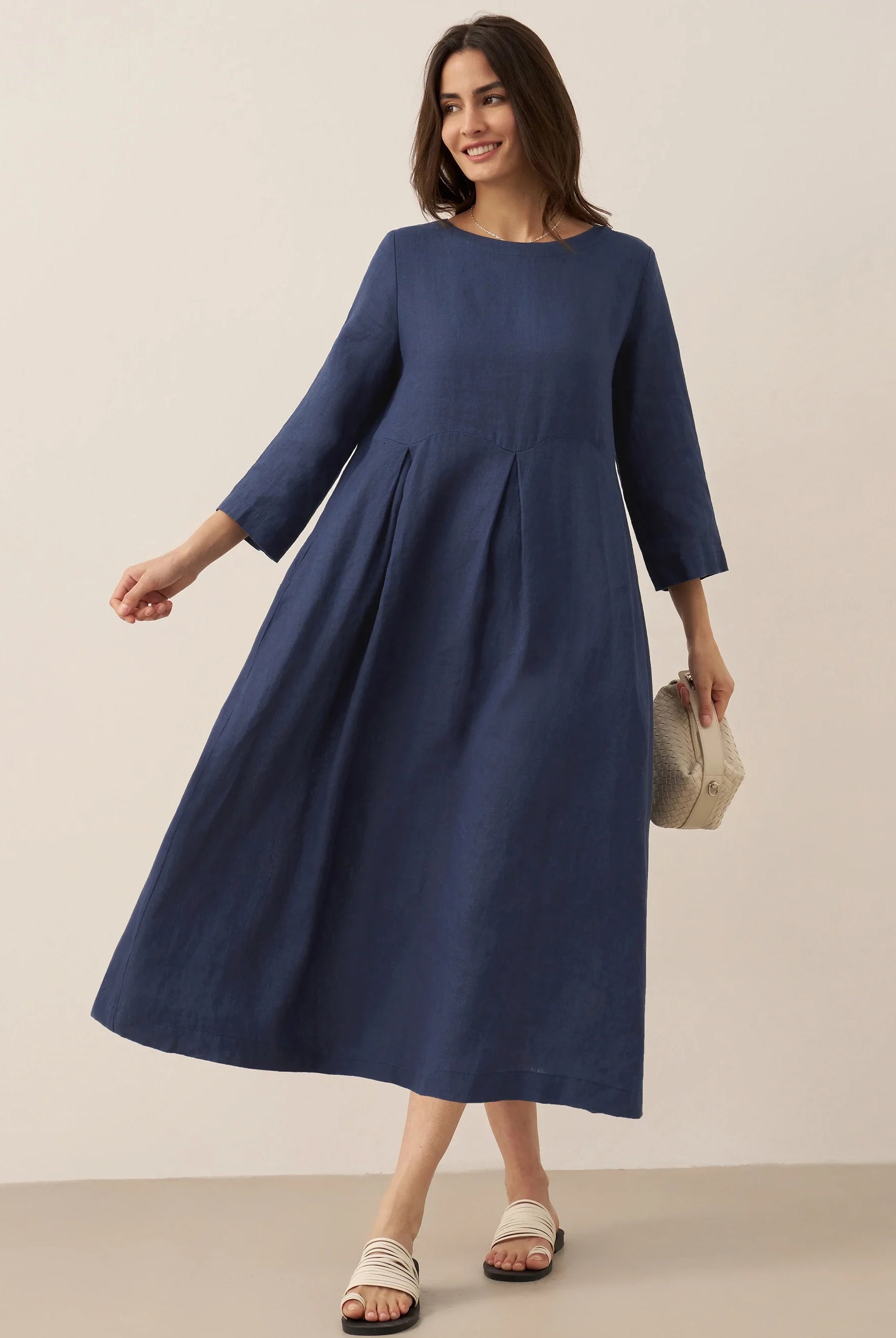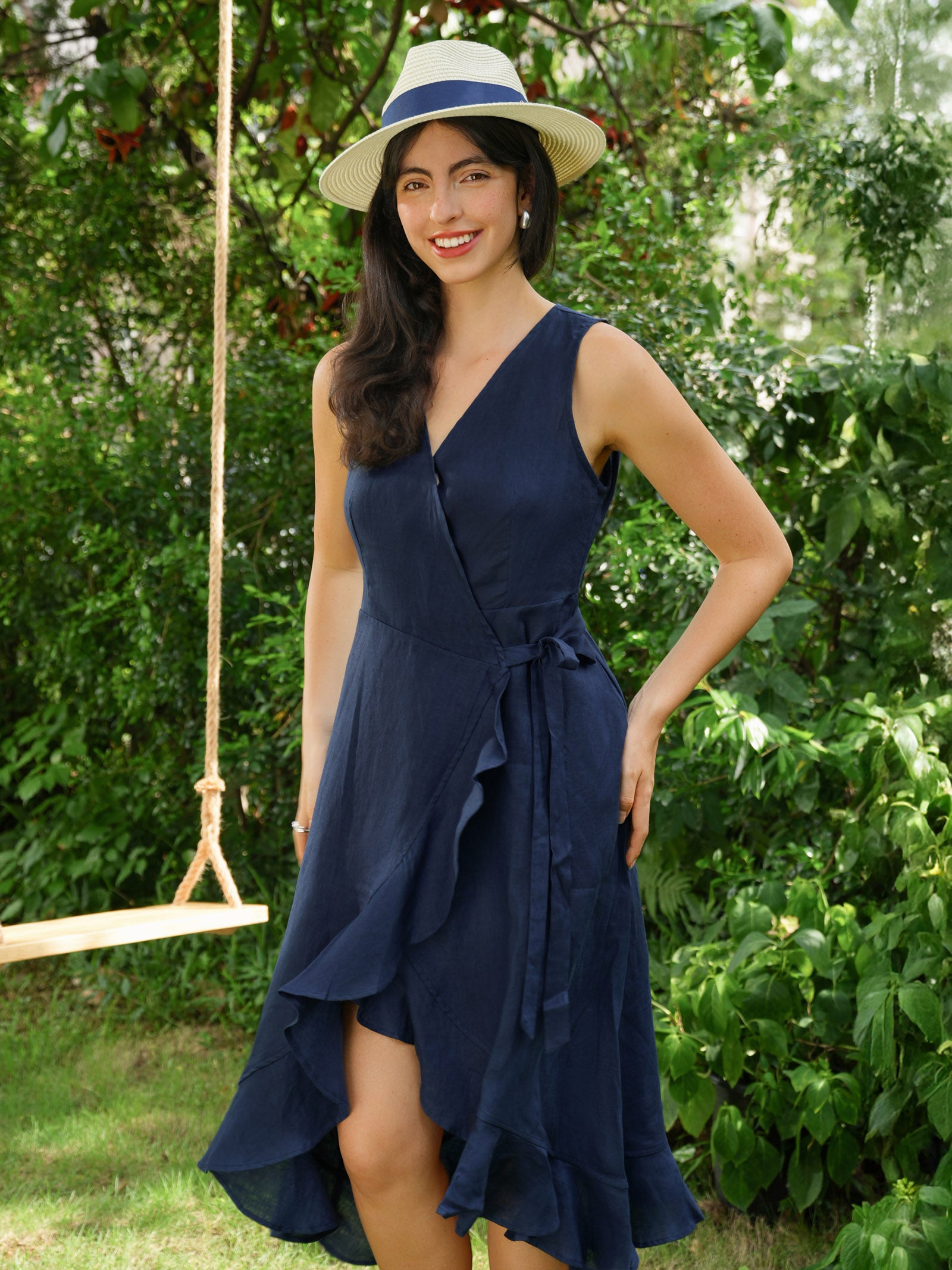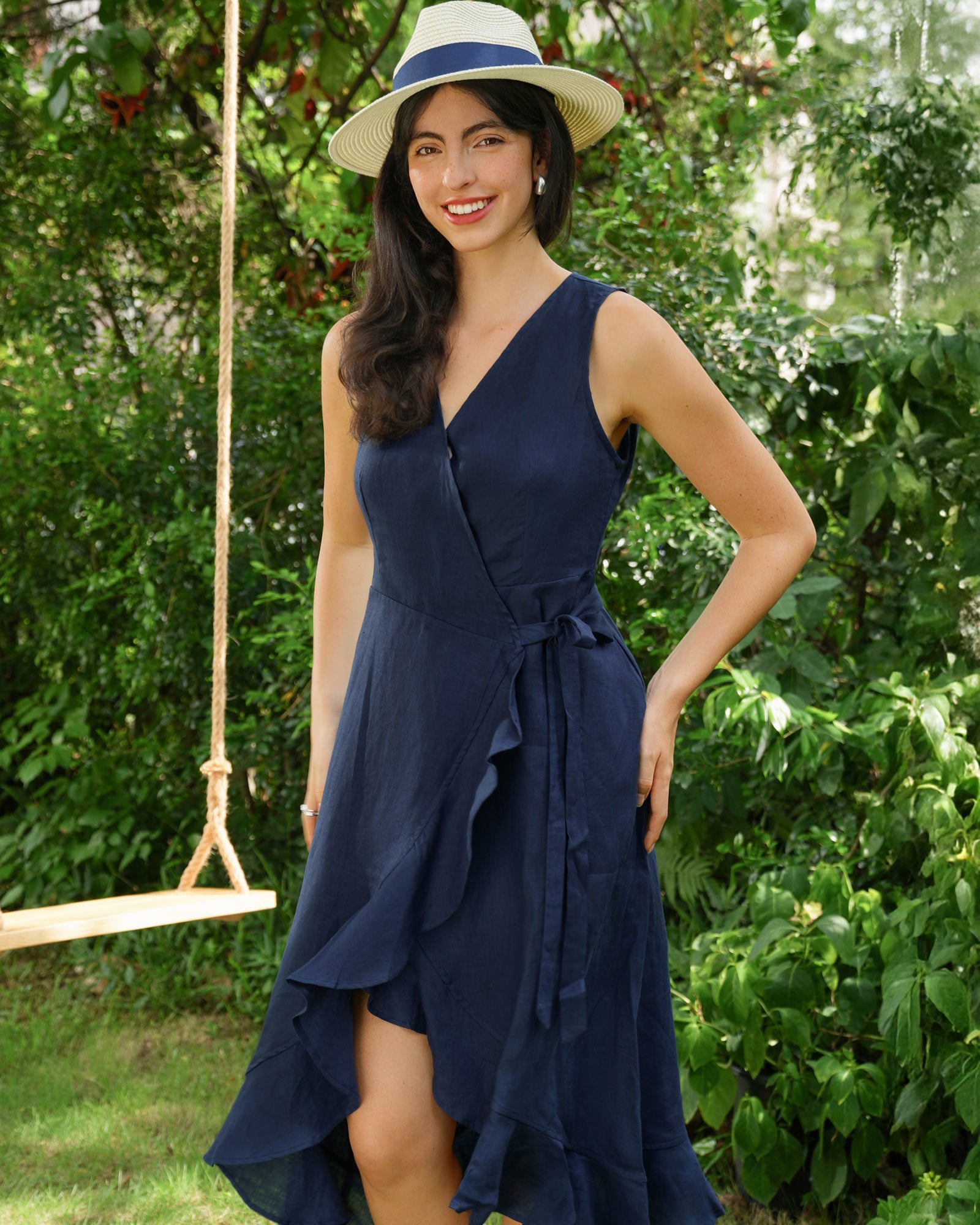 Ondoyant dans un lin aux nuances de minuit — où les brises provençales murmurent à chaque frémissement de votre mouvement.