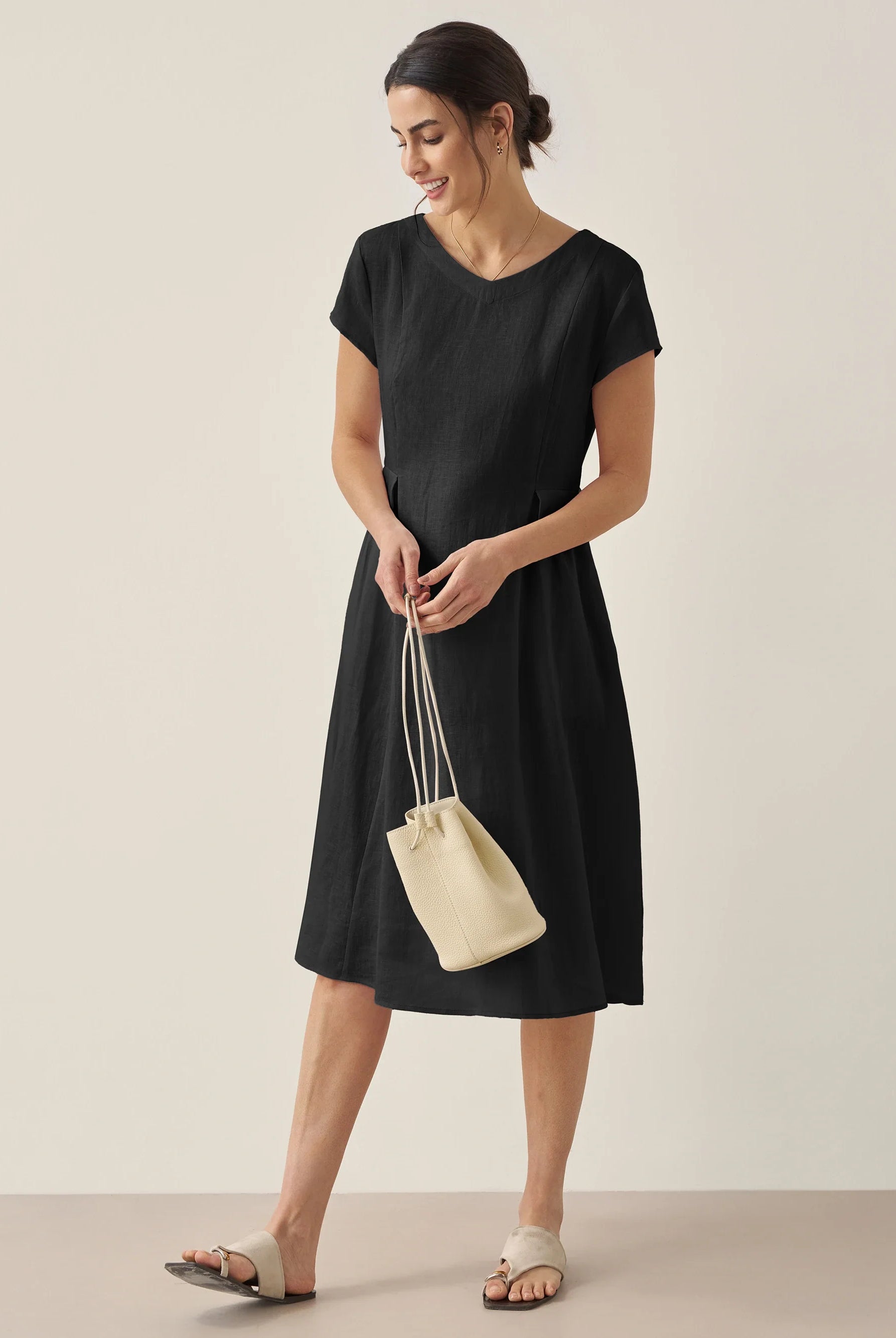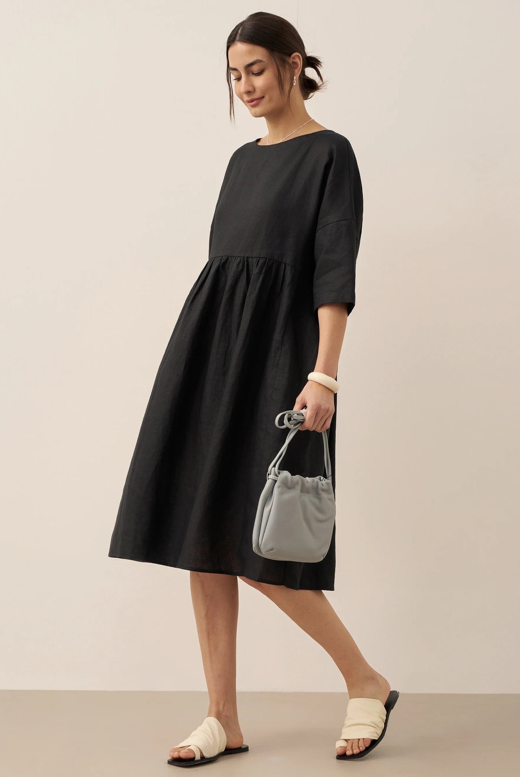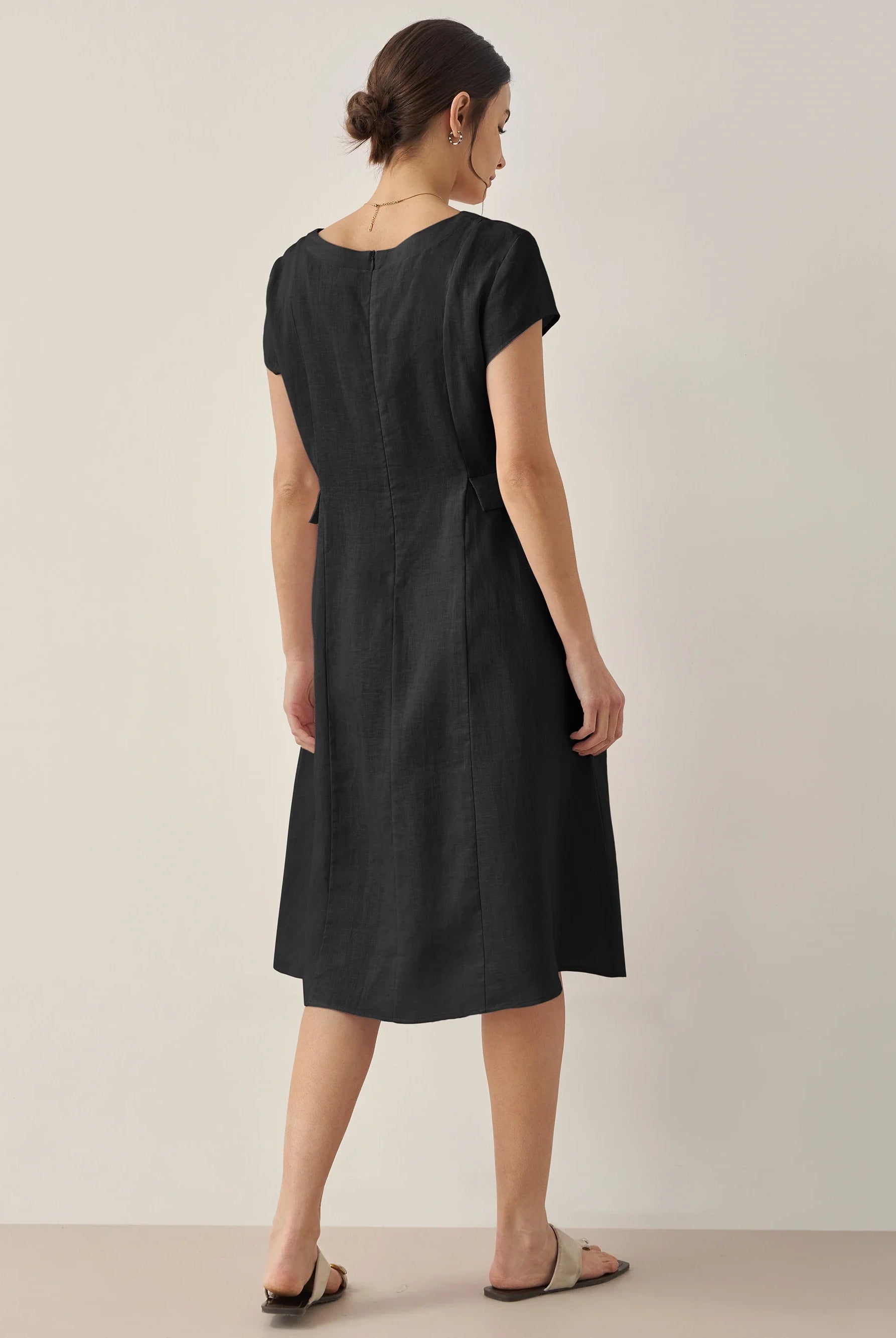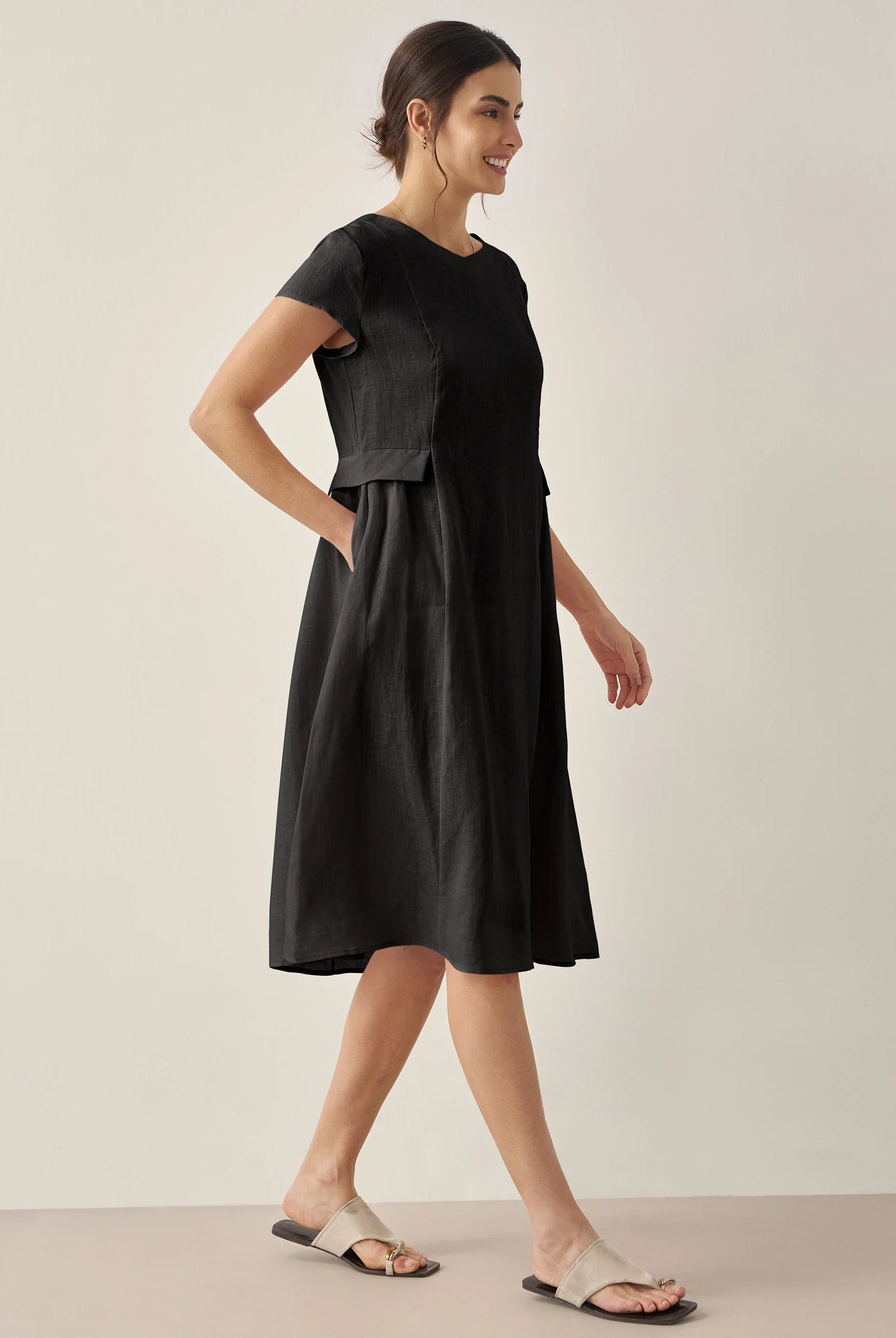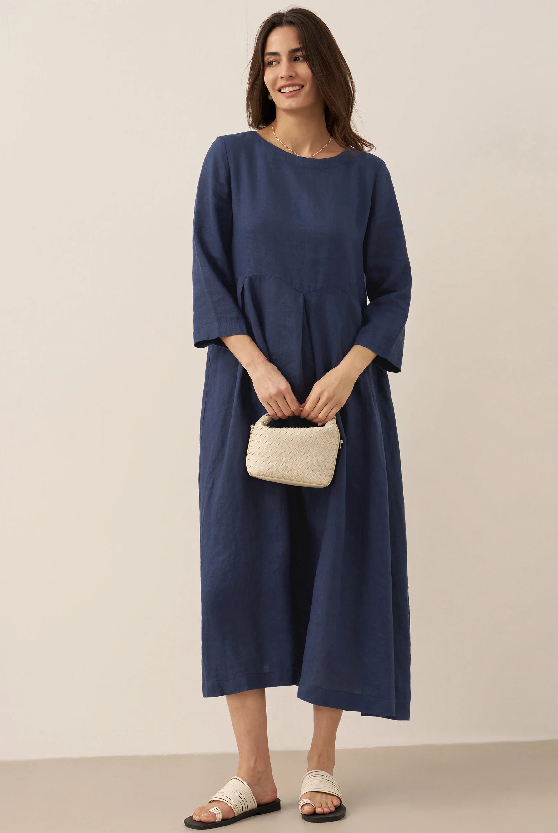Ondoyant dans un lin aux nuances de minuit — où les brises provençales murmurent à chaque frémissement de votre mouvement.