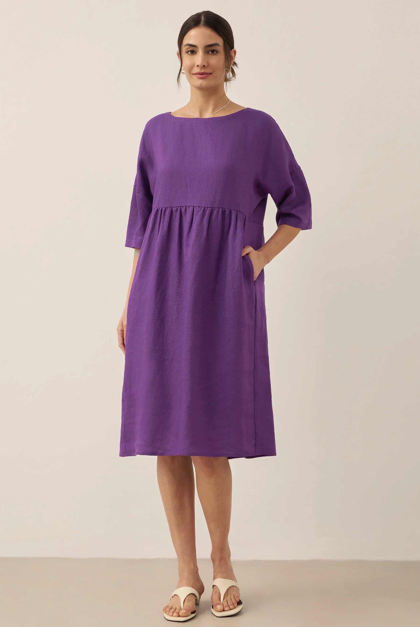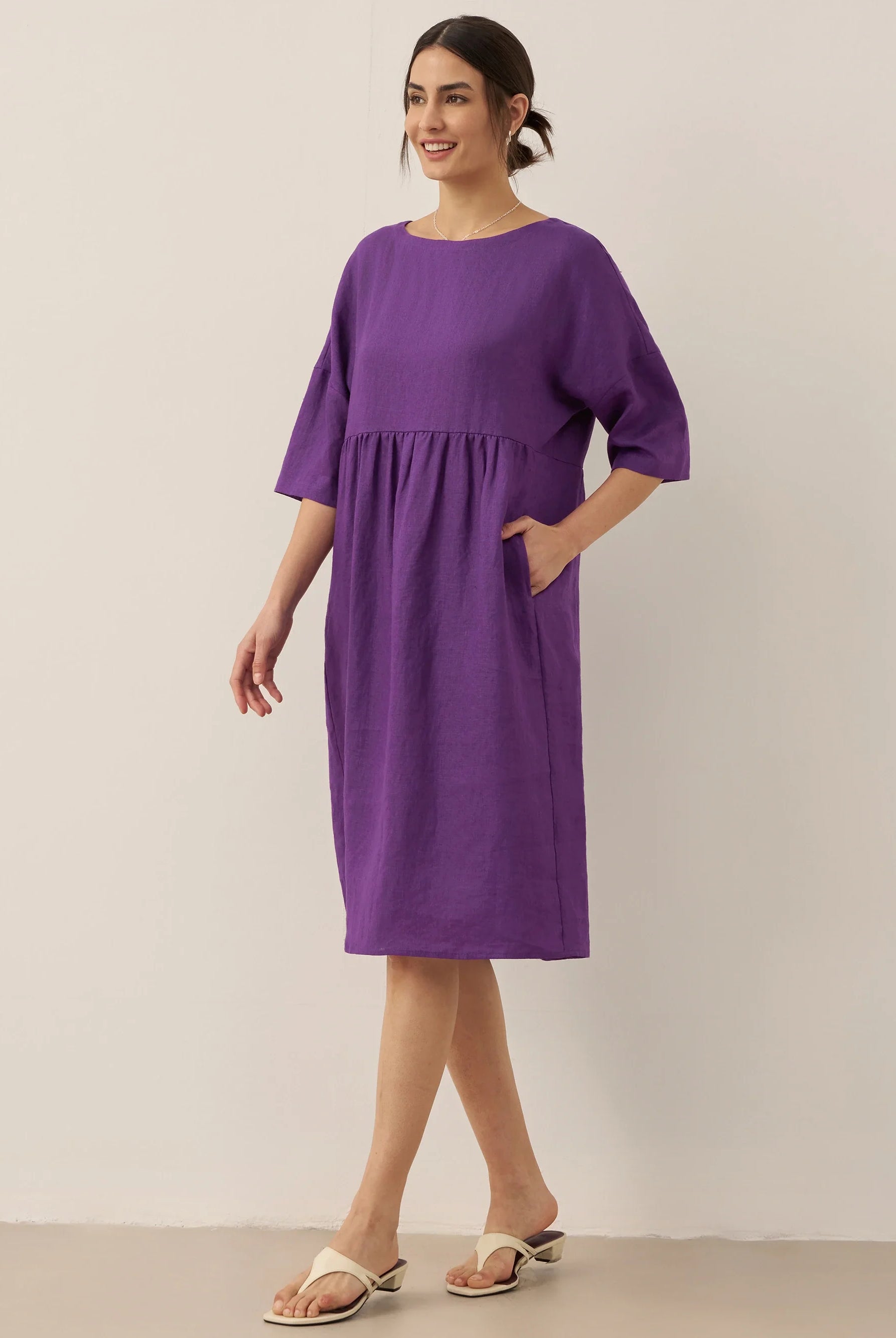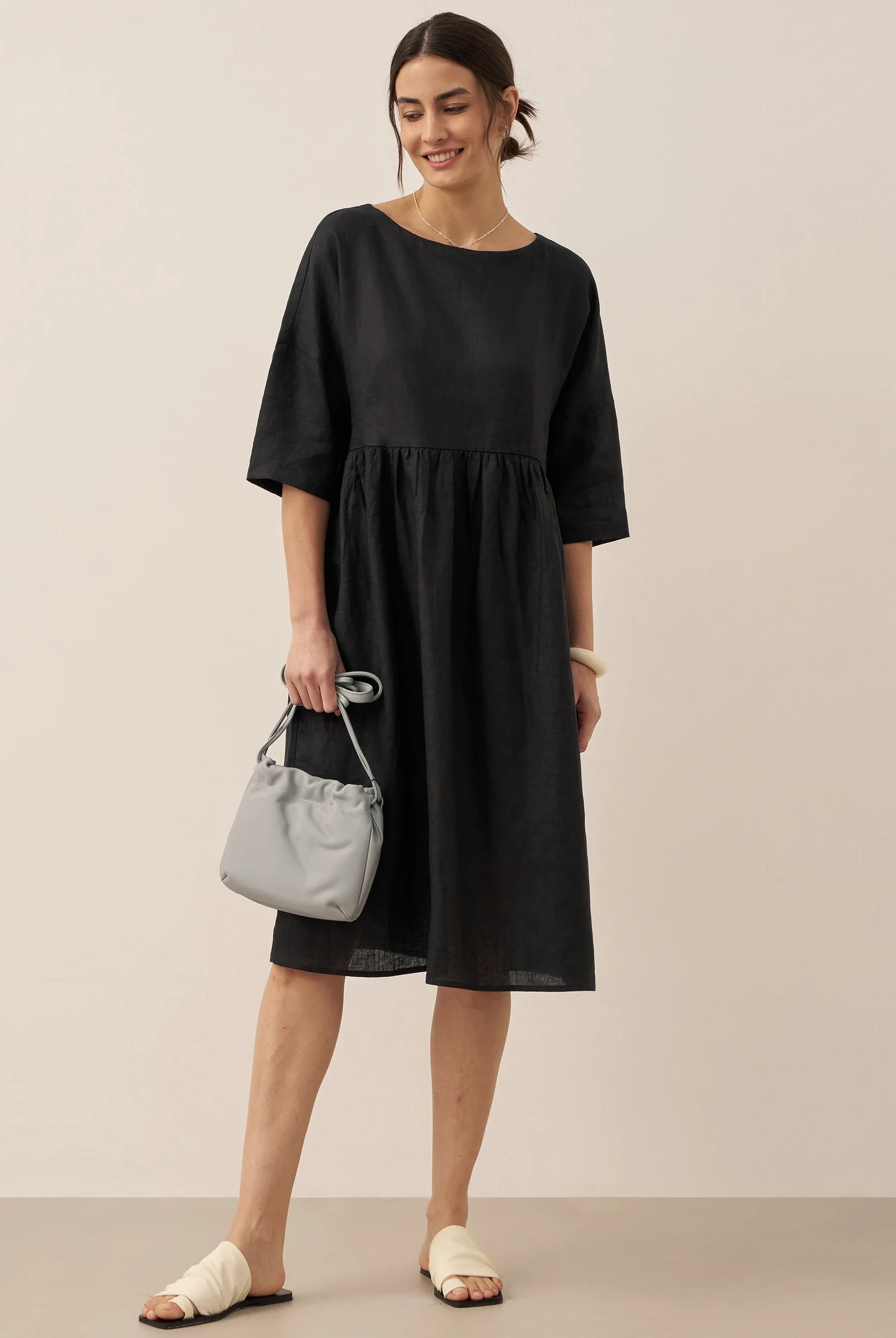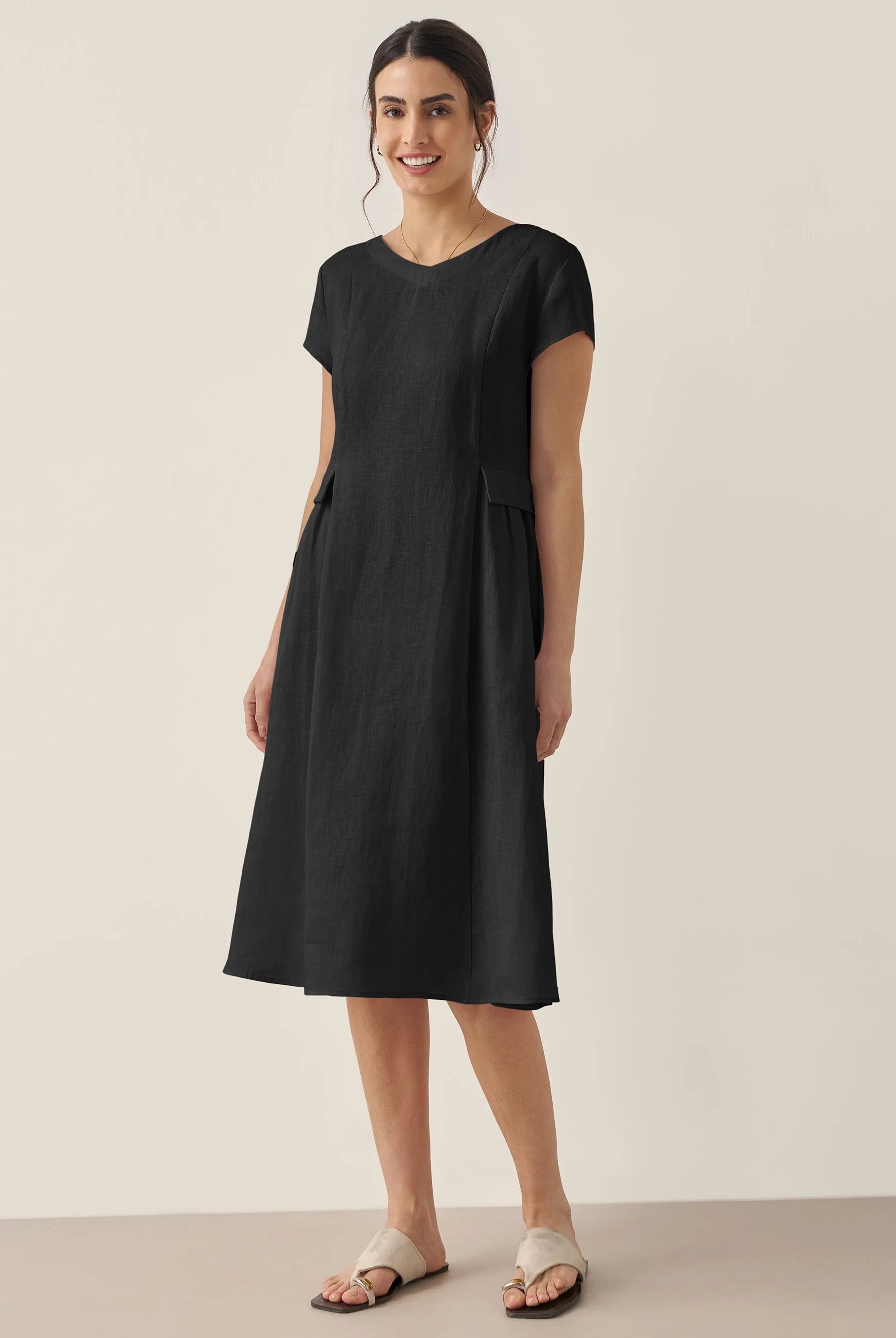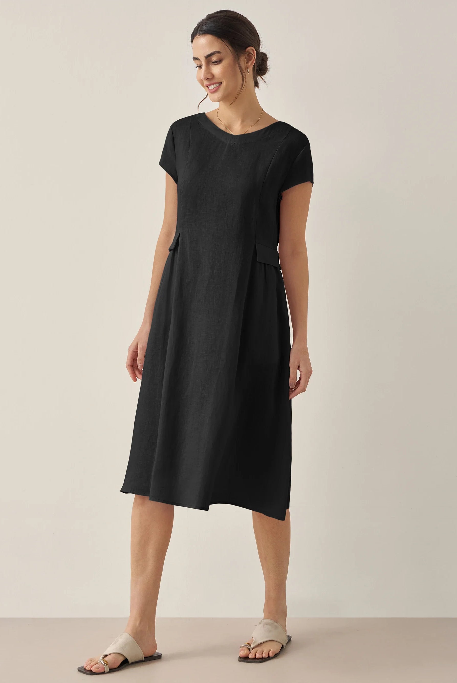 Ondoyant dans un lin aux nuances de minuit — où les brises provençales murmurent à chaque frémissement de votre mouvement.