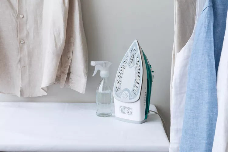 - Lorsque le vêtement en lin est encore humide, vaporisez légèrement les zones froissées ou marquées avec votre solution d’amidon.