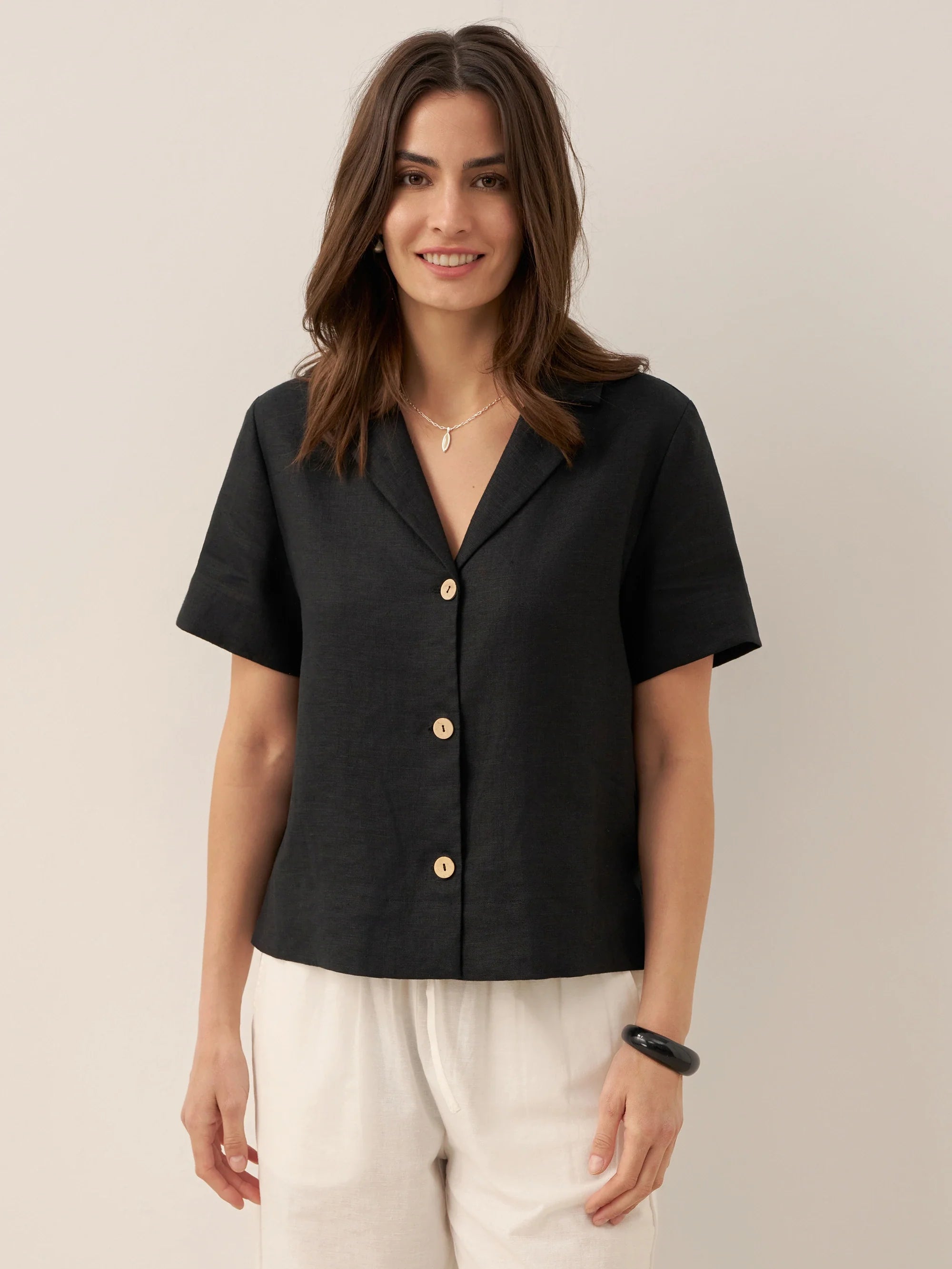Chemise à manches courtes boutonnée 100% lin ORENDA
