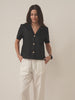 Le col de costume ajusté, combiné à une coupe standard et des manches courtes structurées aux épaules, crée un look raffiné mais décontracté, idéal pour diverses occasions.