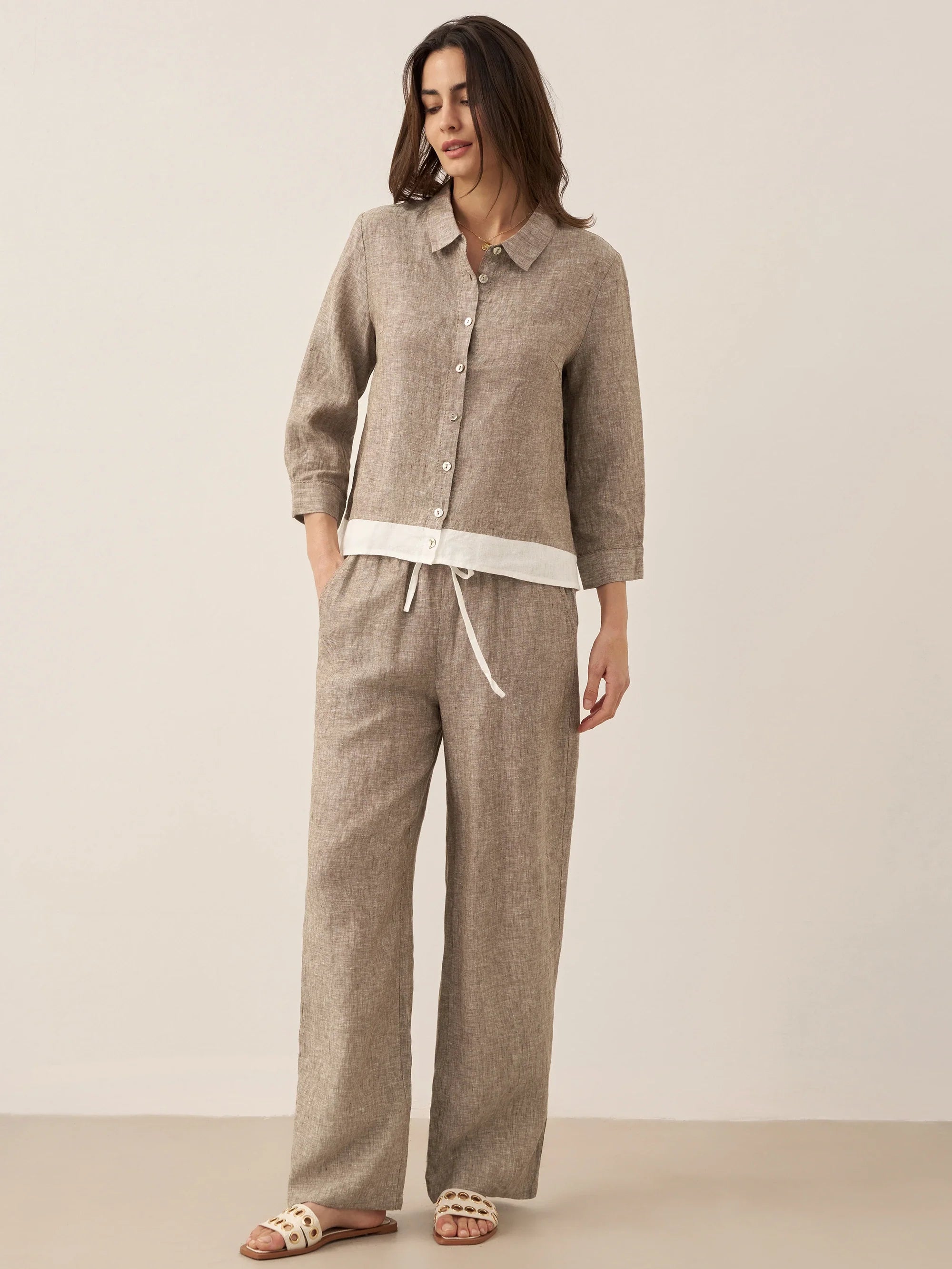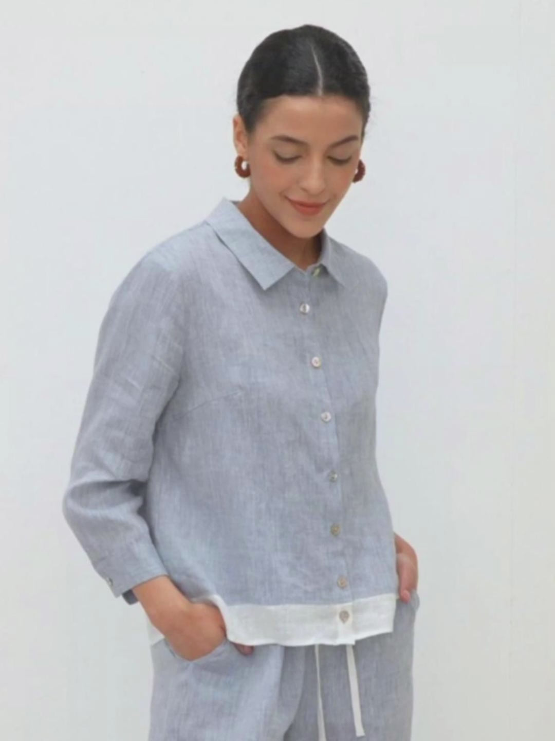 Chemise à blocs de couleur avec fermeture boutonnée en 100% lin JANICE