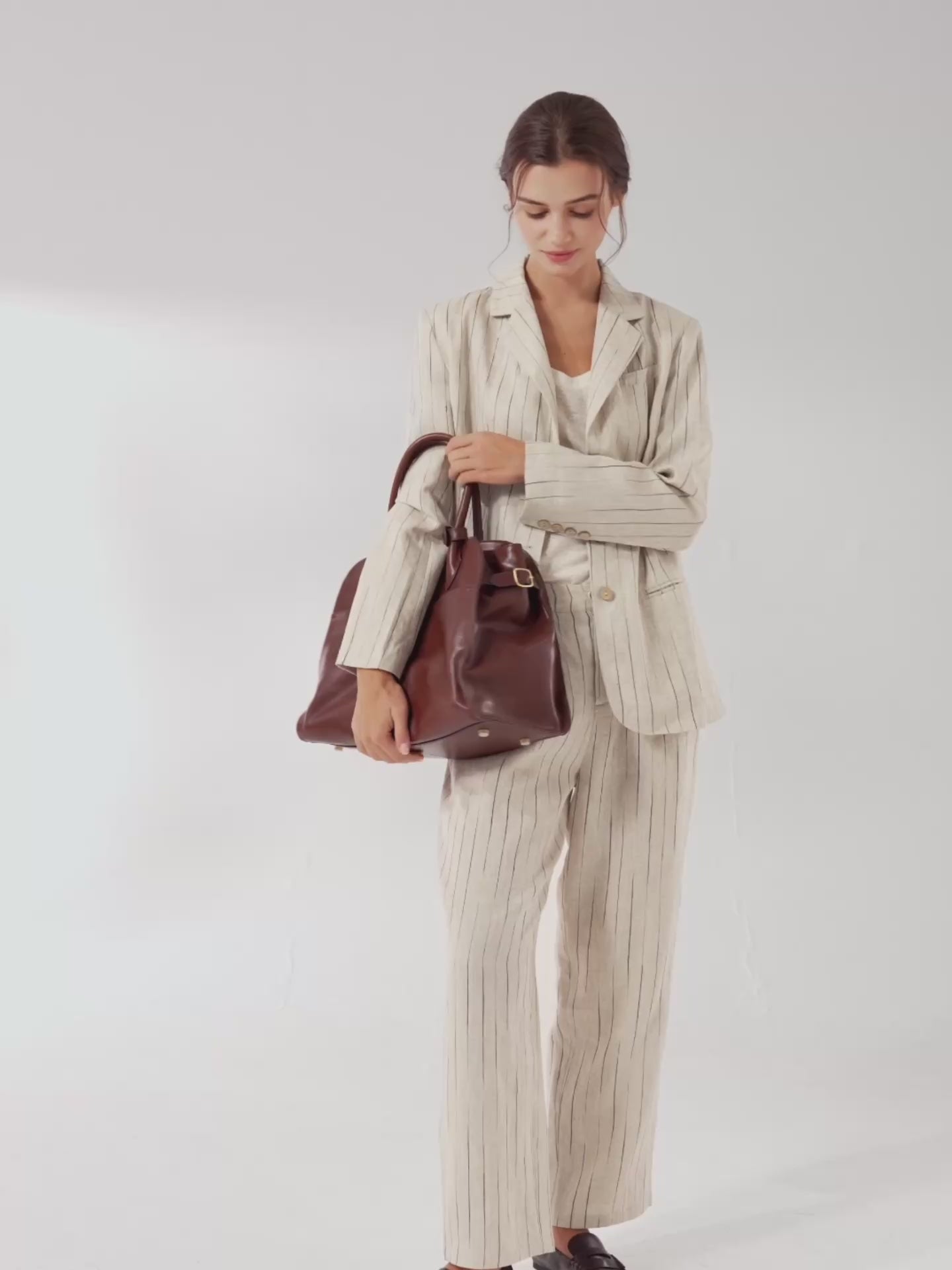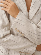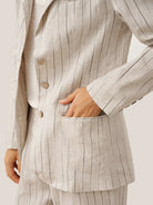 Le costume rétro classique, où la texture naturelle du lin rencontre des rayures ombrées semblables à des croquis, préservant une élégance intemporelle tout en créant un style rétro, naturel et artistique.