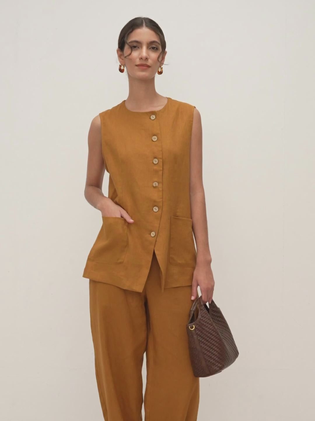 Gilet ELFRIDA 100% Lin à Boutons et Patte de Boutonnage Courbe
