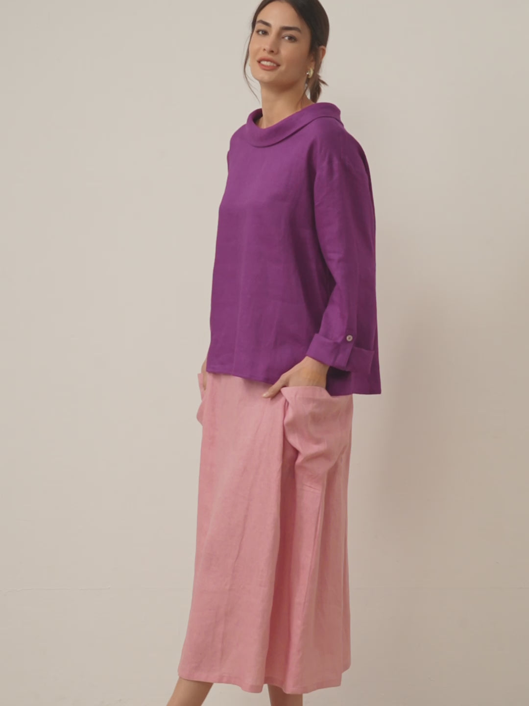 Haut à encolure drapée 100% lin HOLLIS