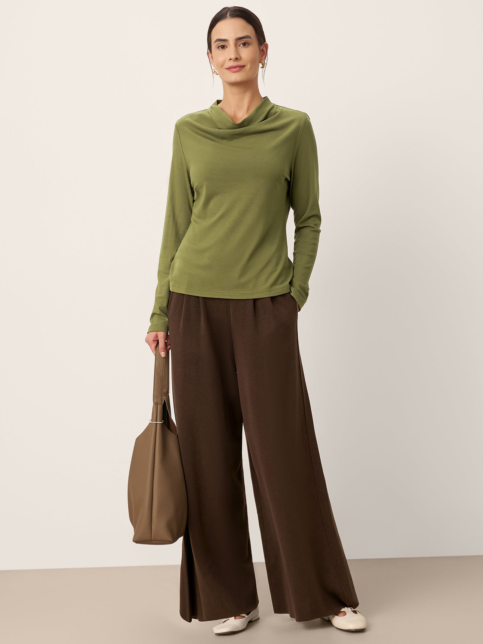 Haut à manches longues extensible avec col bénitier en laine INEKE