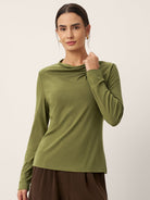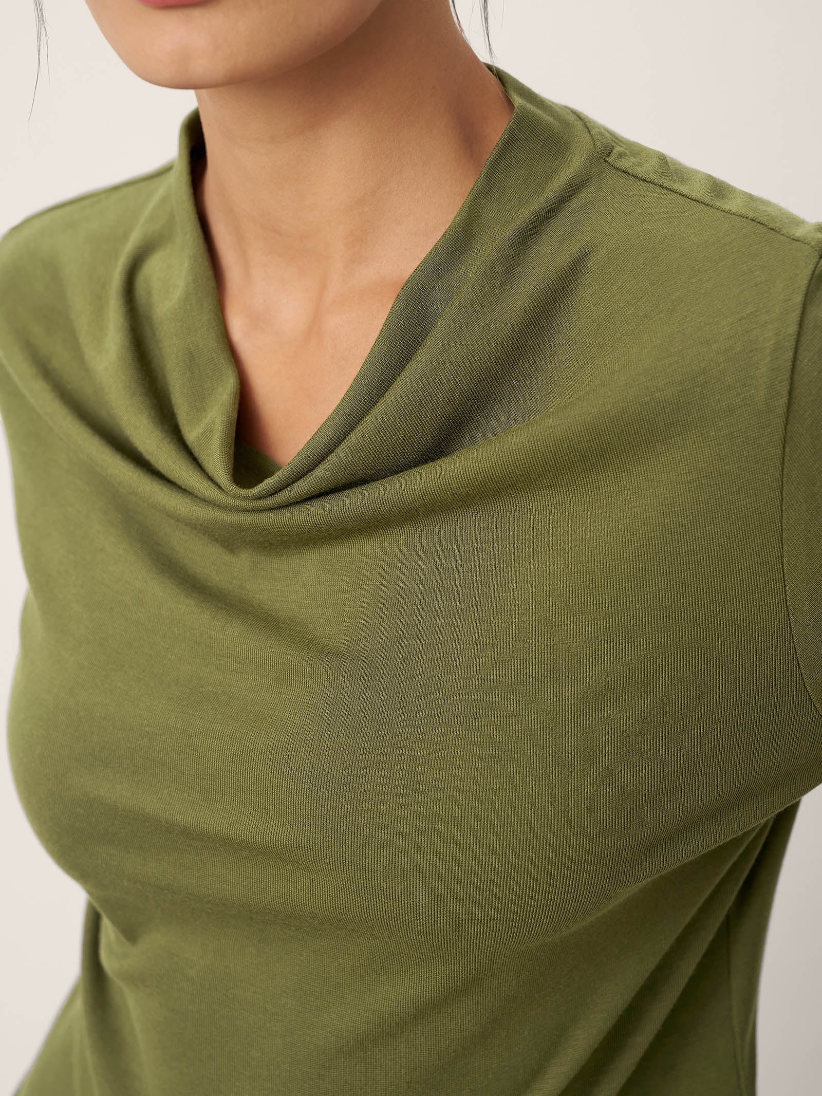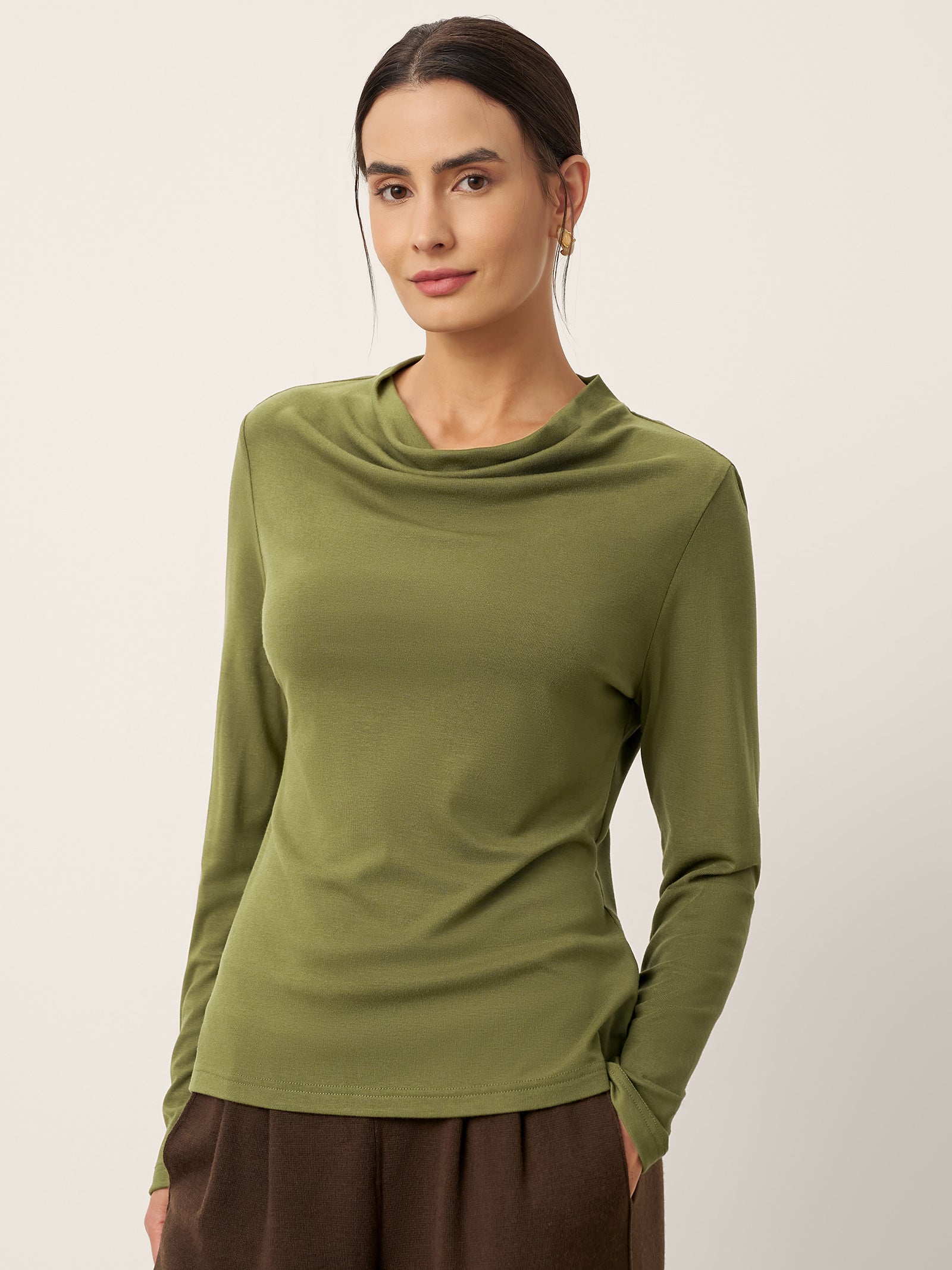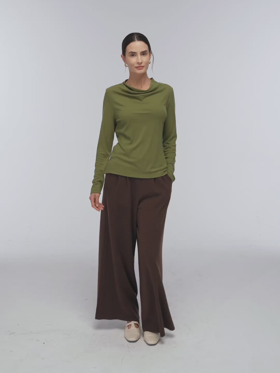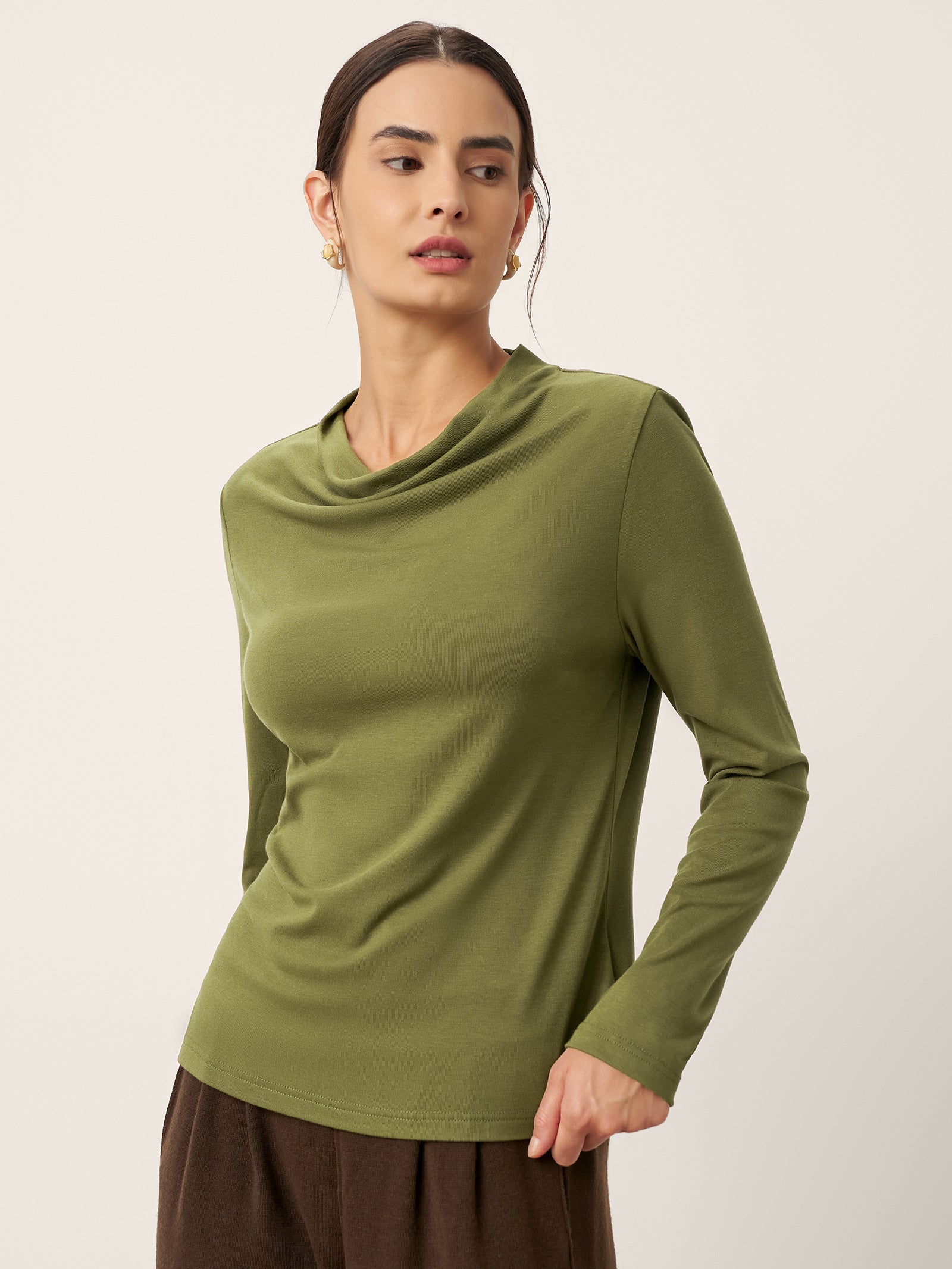 - Encolure drapée flatteuse: Les plis doucement froncés adoucissent les angles du visage et allongent le cou avec un mouvement gracieux