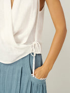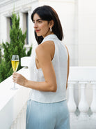 Un style estival sans effort rencontre des détails élégants dans ce haut en lin aéré.