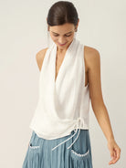 Haut court à col halter noué sur le devant en 100% lin FAYE