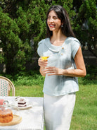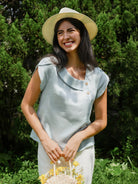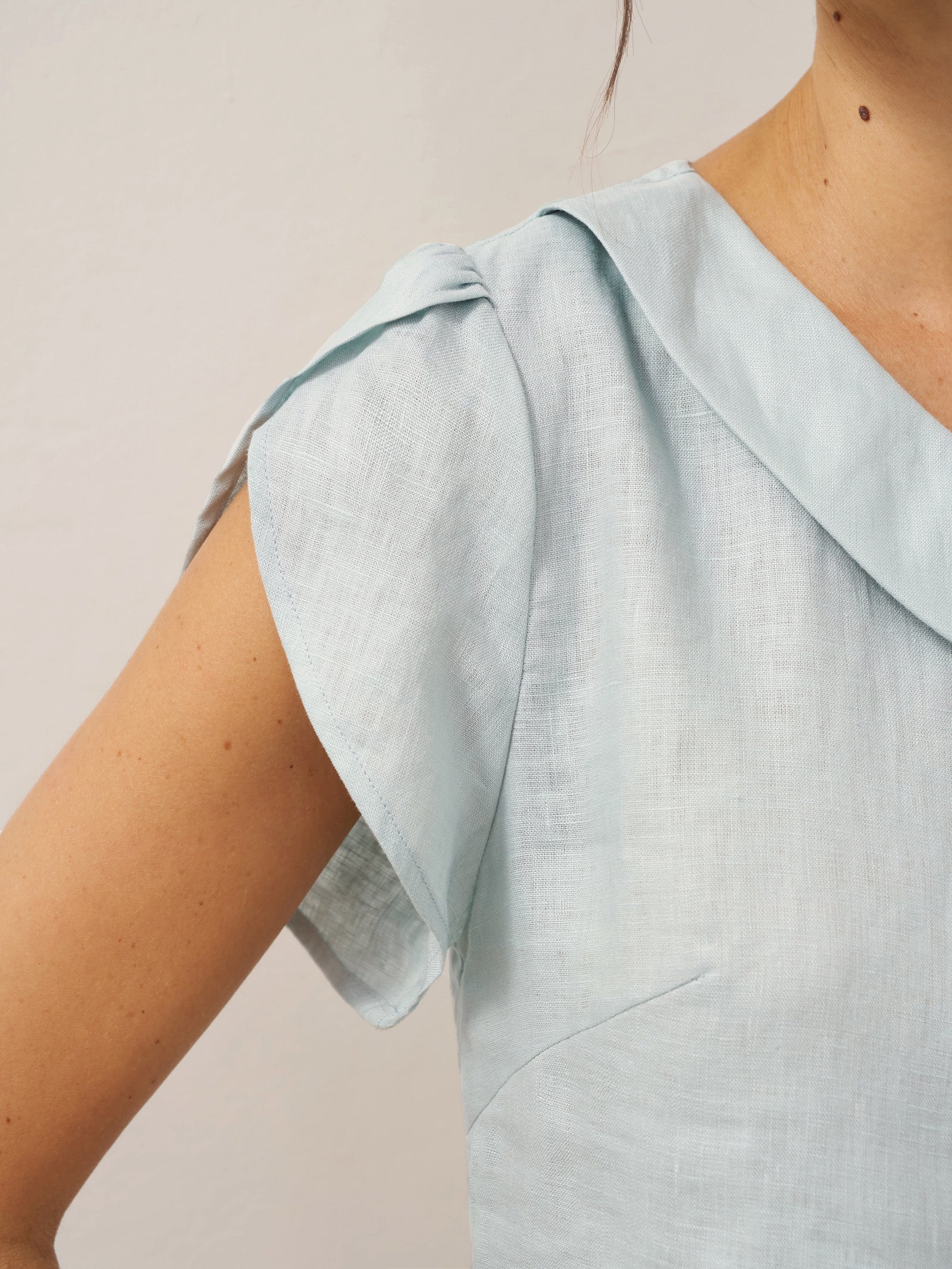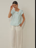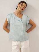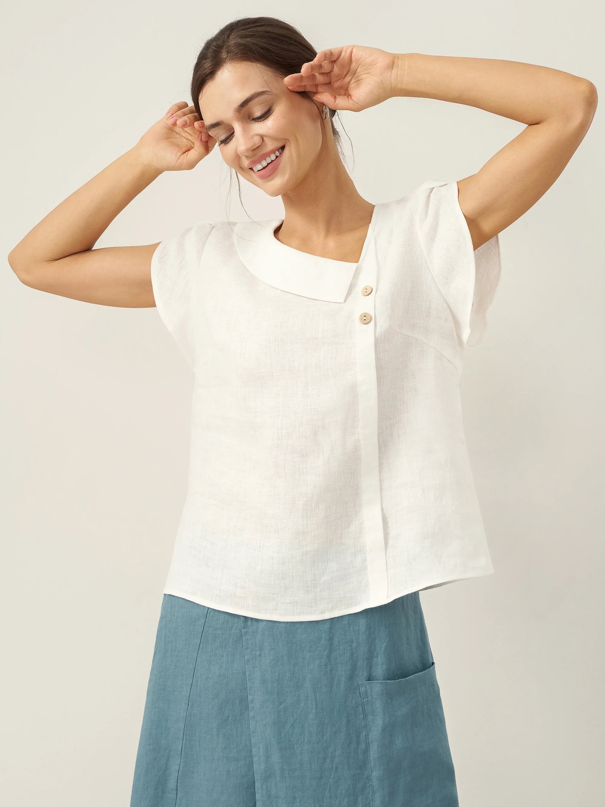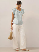 Haut en 100 % lin à col croissant et manches volantées FARA