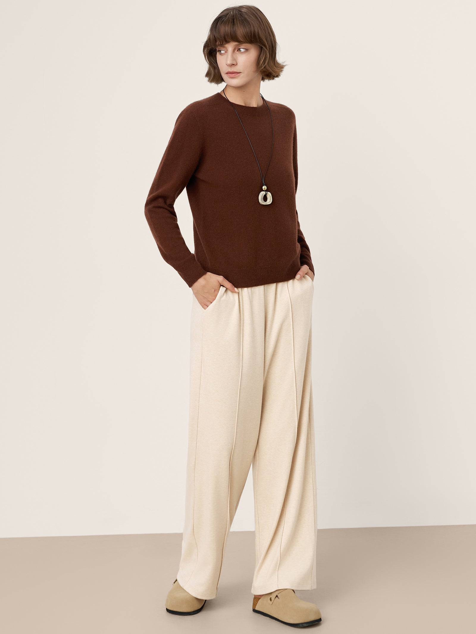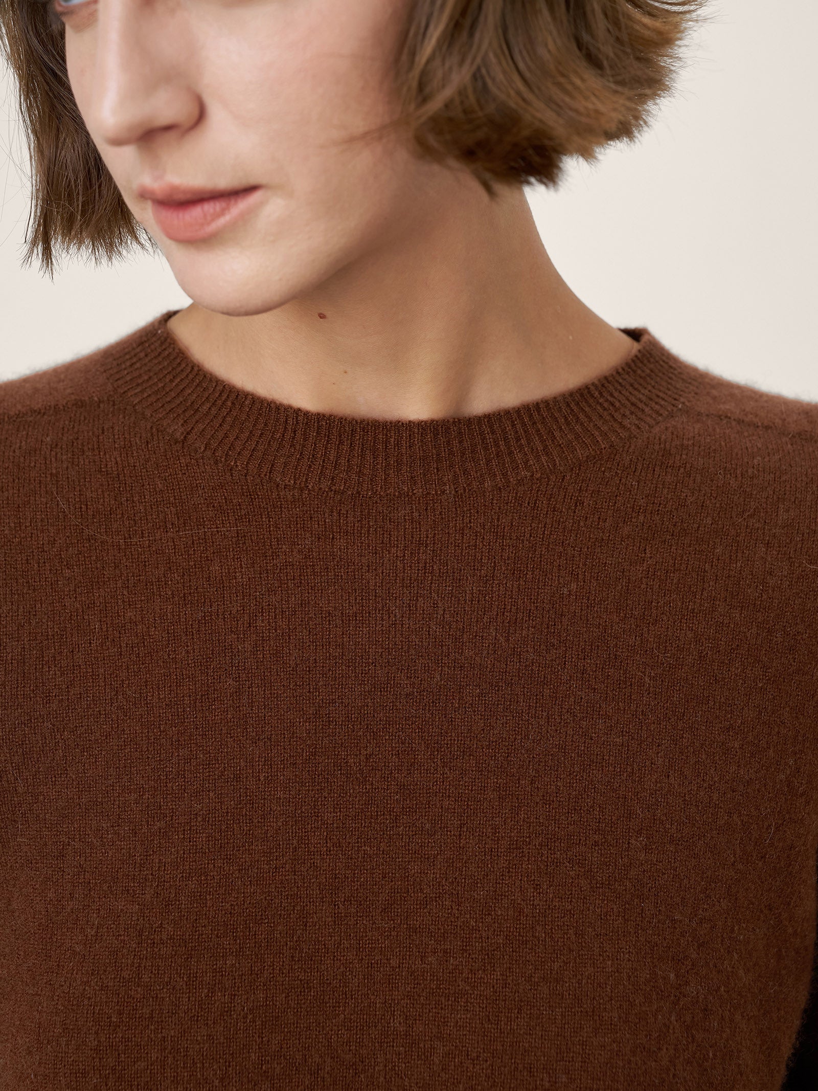 Haut en maille col rond sans couture en mélange de cachemire, finition à la main WANDA