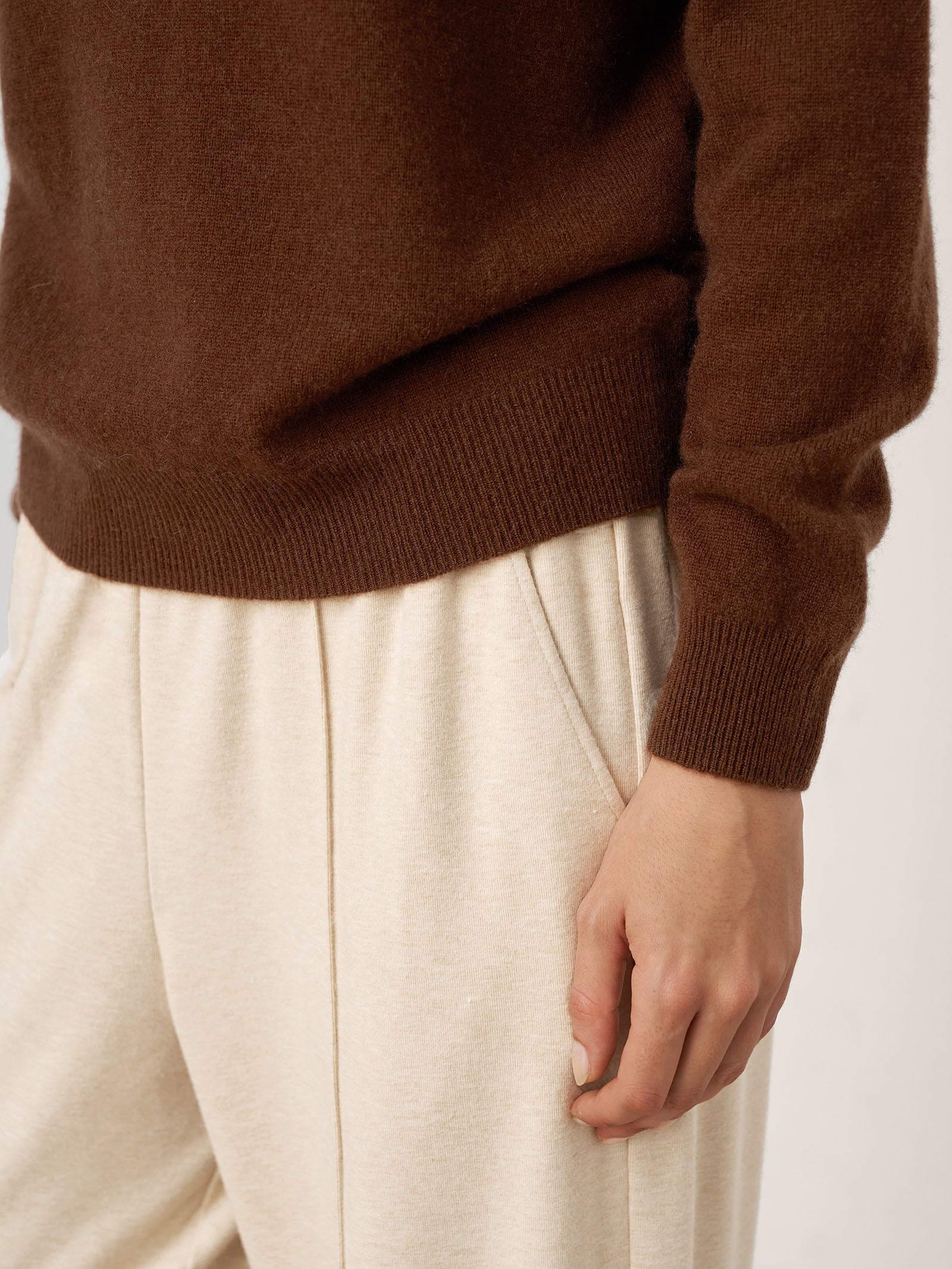 Un mélange soigneusement équilibré de fibres haut de gamme — cachemire, TENCEL™ et modal — crée un tissu aérien qui offre une sensation douce, lisse et parfaitement naturelle sur la peau.