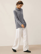 Un mélange soigneusement équilibré de fibres haut de gamme — cachemire, TENCEL™ et modal — crée un tissu aérien qui offre une sensation douce, lisse et parfaitement naturelle sur la peau.