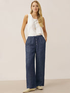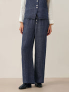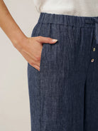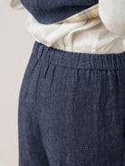 Pantalon à jambe droite à taille élastique en 100 % lin à texture denim HAZEL