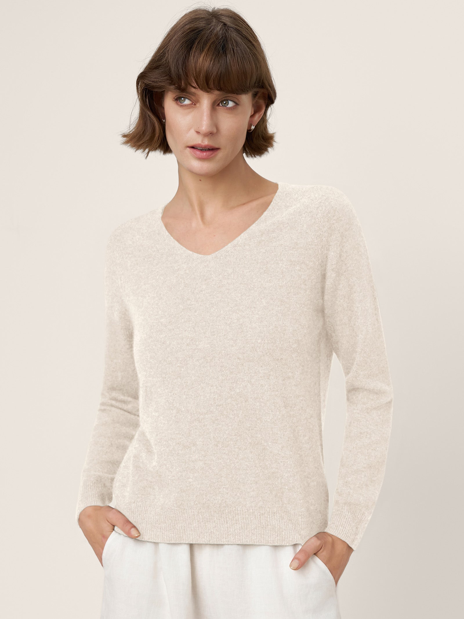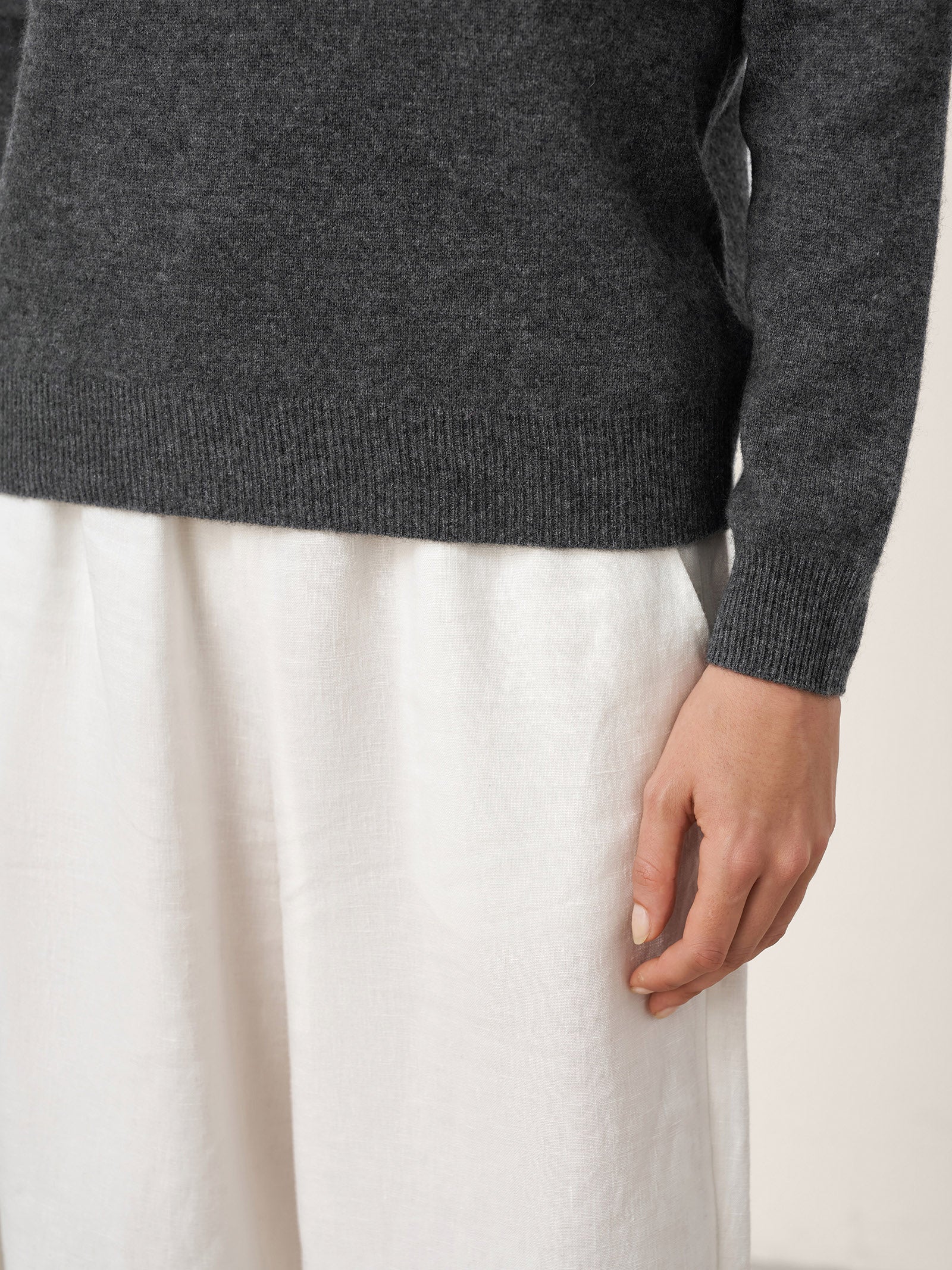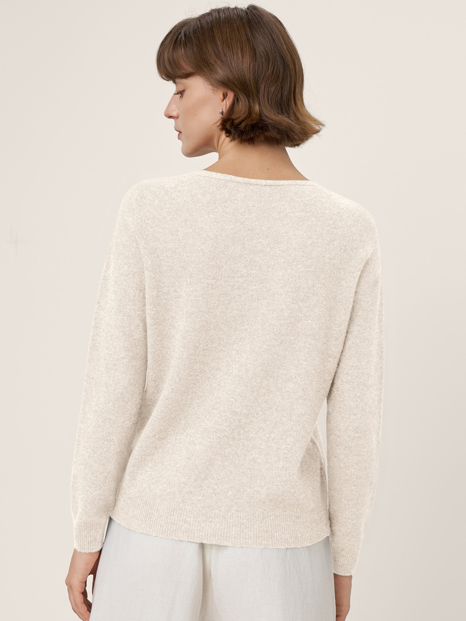 Un mélange soigneusement équilibré de fibres haut de gamme — cachemire, TENCEL™ et modal — crée un tissu aérien qui offre une sensation douce, lisse et parfaitement naturelle sur la peau.