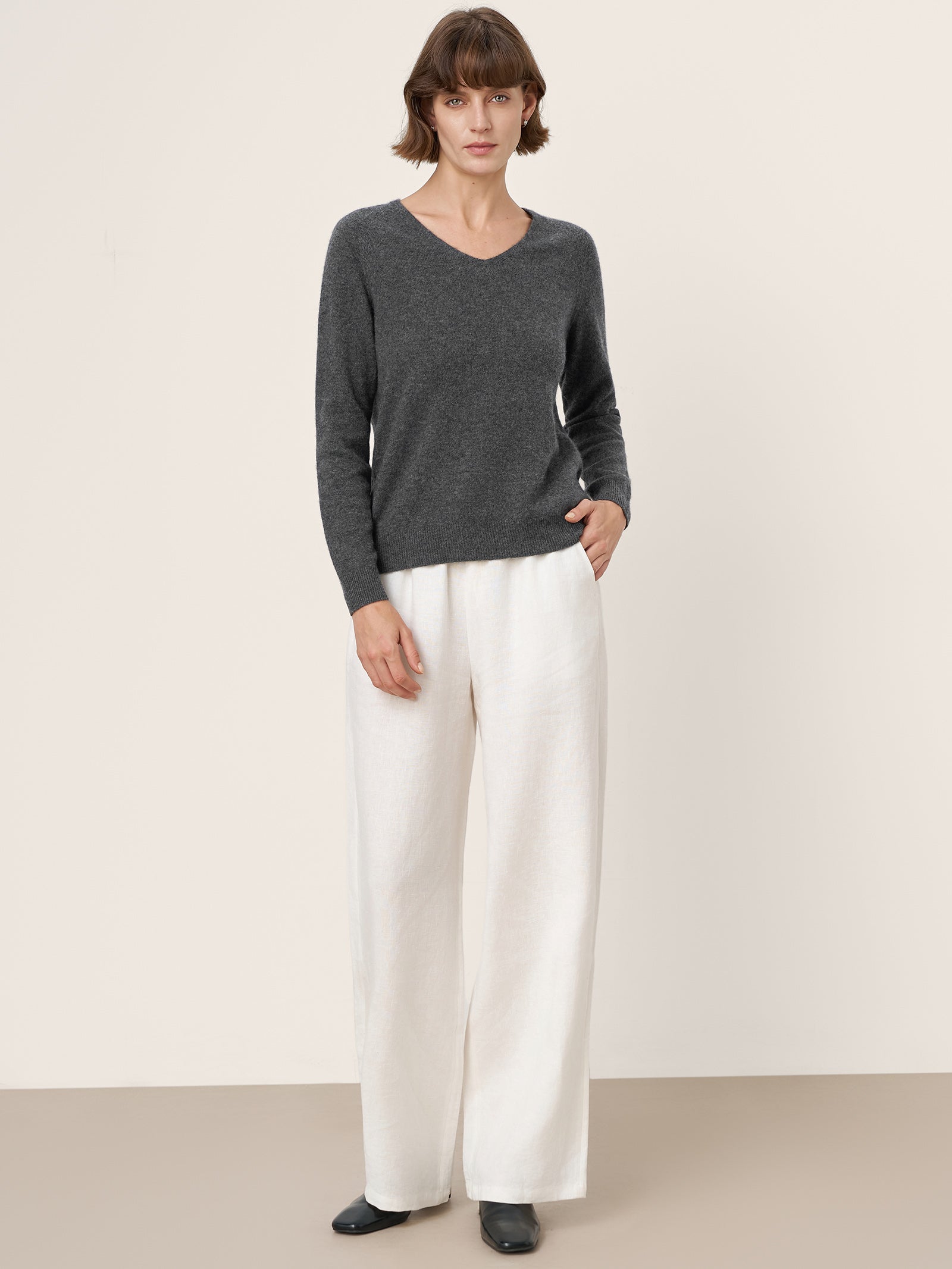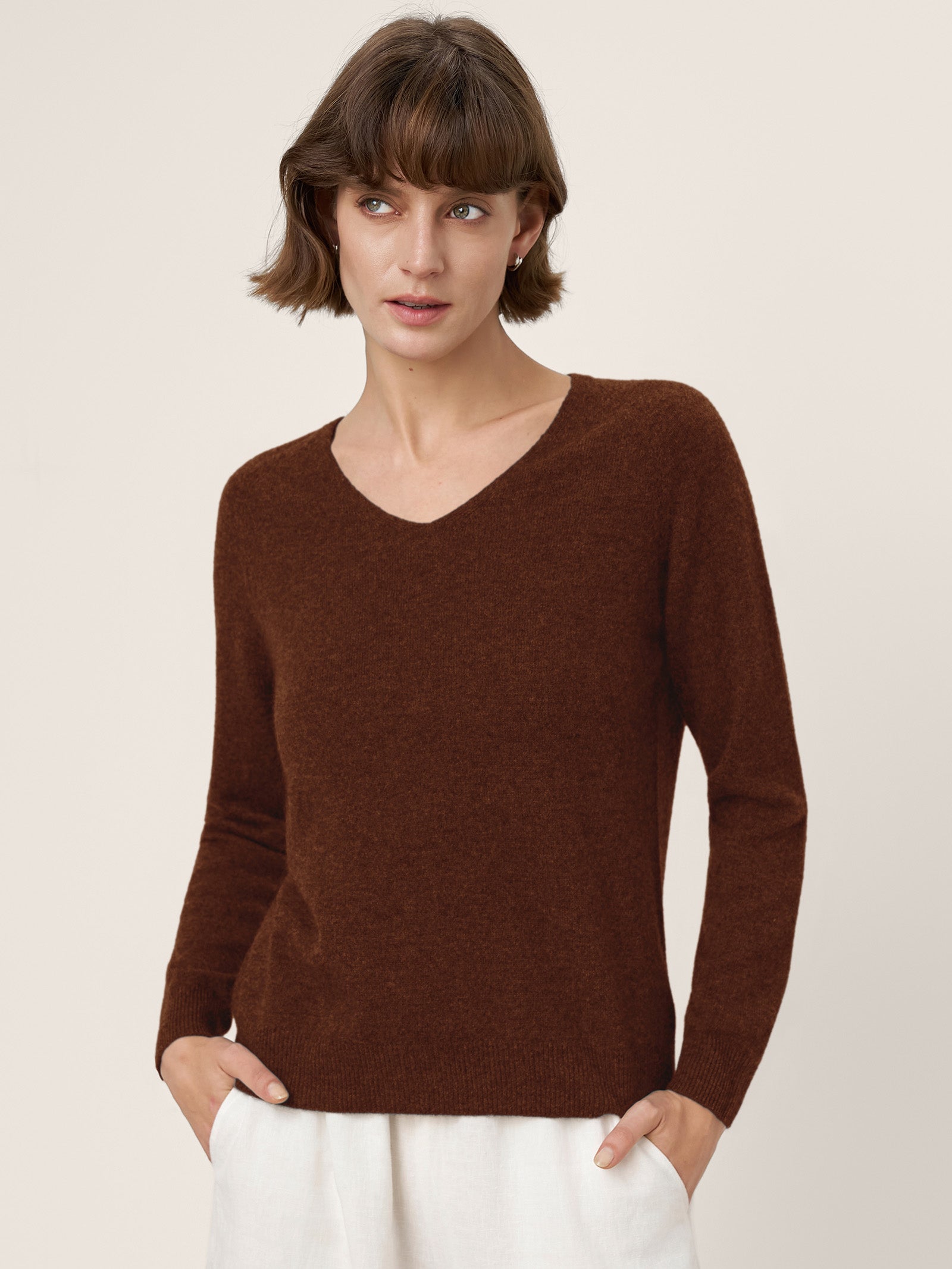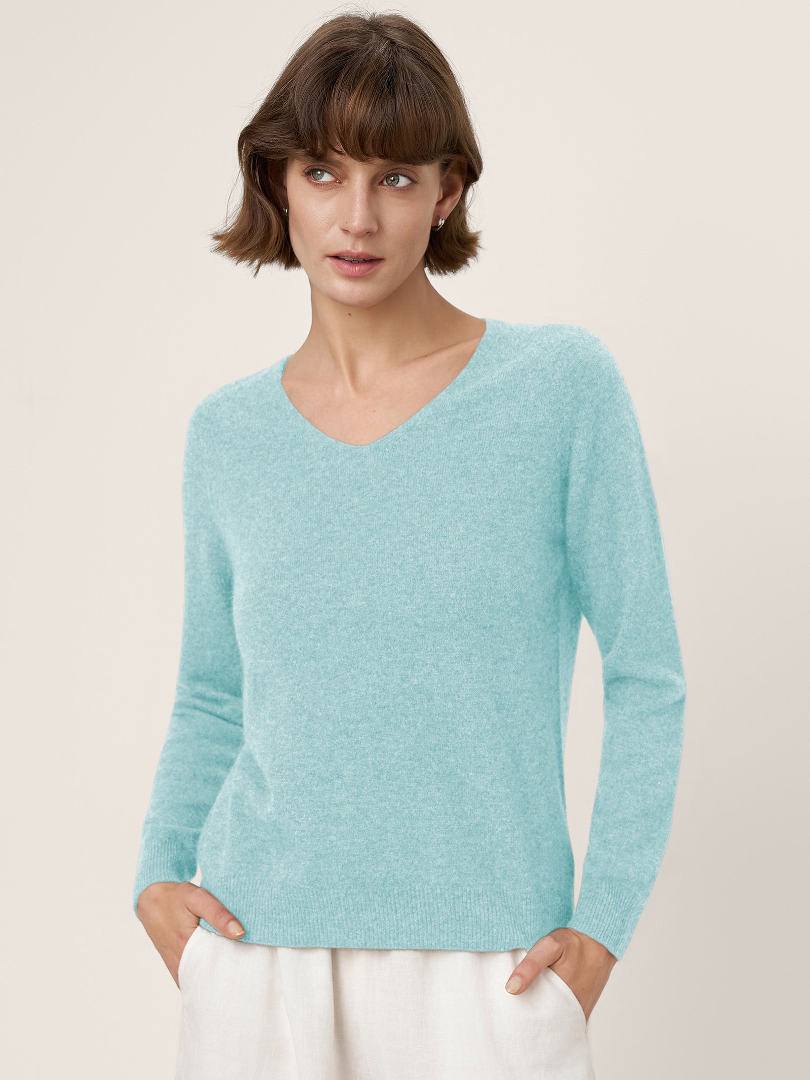 Un mélange soigneusement équilibré de fibres haut de gamme — cachemire, TENCEL™ et modal — crée un tissu aérien qui offre une sensation douce, lisse et parfaitement naturelle sur la peau.