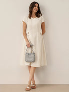 Succombez à la simplicité et à l'élégance avec notre robe résolument féminine, qui respire une sophistication intemporelle.