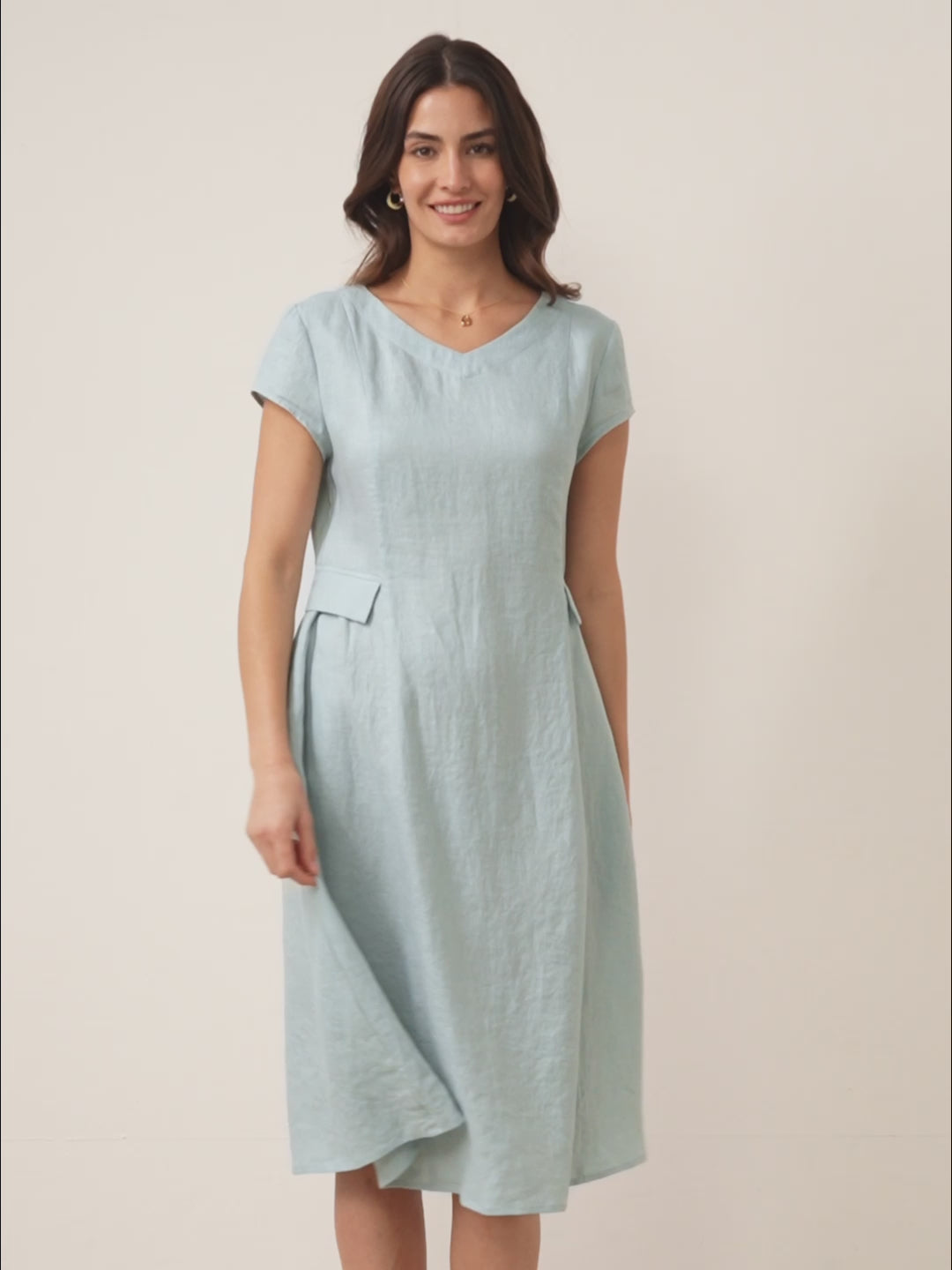 Une silhouette trapèze flatteuse avec un décolleté en V, soulignant la forme générale et rehaussant les contours du cou.