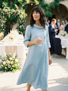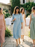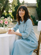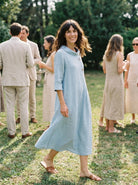 Robe longue 100% lin à col roulé et patte de boutonnage asymétrique ELARAINE