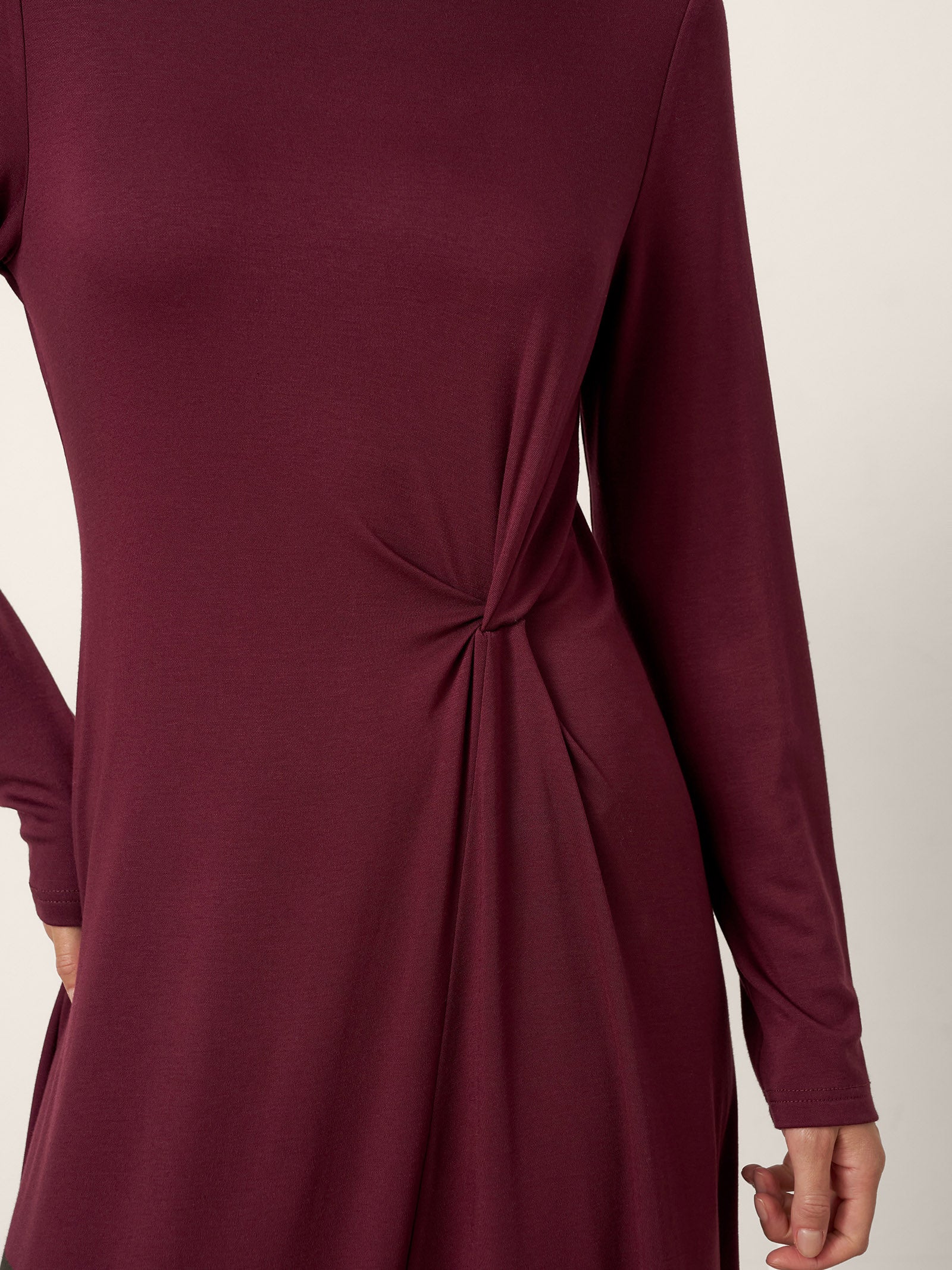 - Nœud Latéral Sculptural: Un détail de taille artistiquement torsadé crée un volume élégant tout en cintrre la taille pour flatter les courbes