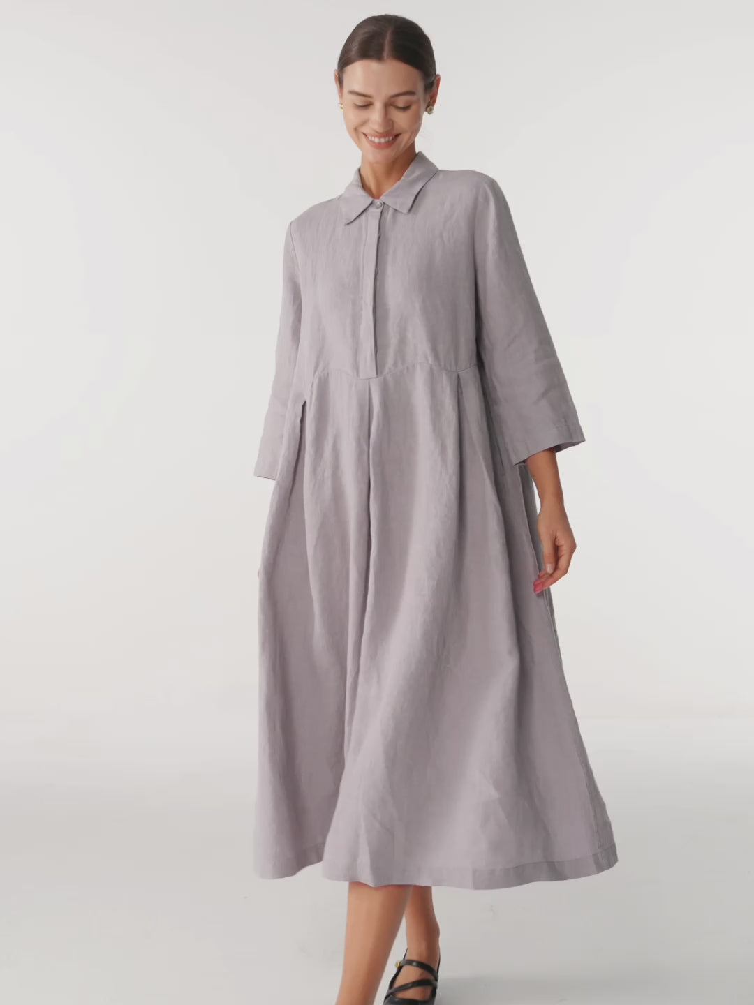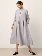 Robe longue en lin à plis creux et coutures incurvées VALERIE