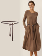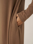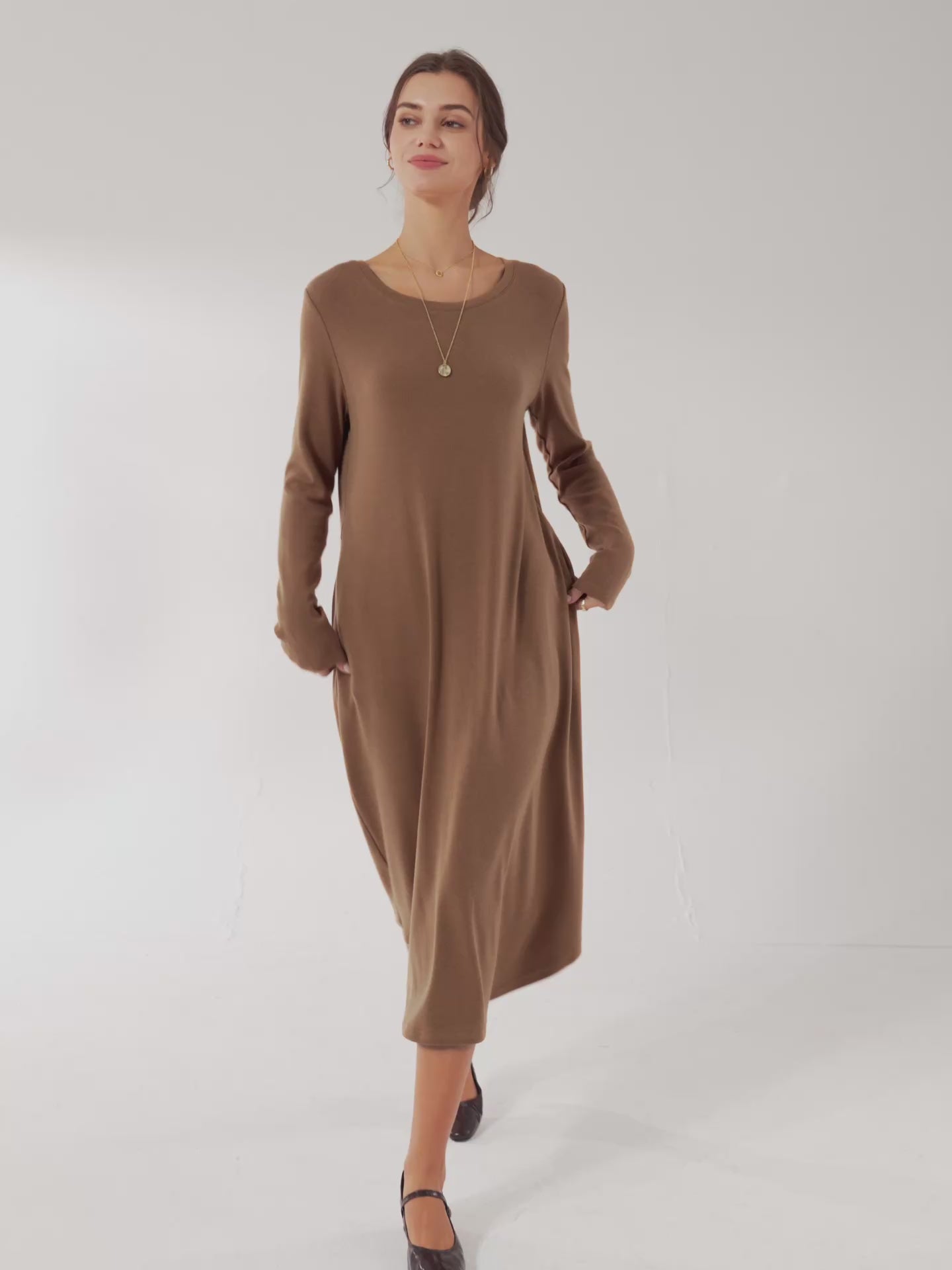 Robe longue KAYLA : Une robe coupe A décontractée, longueur sol, dotée d'un ourlet incurvé et de poches dissimulées pratiques pour un style et un confort sans effort.