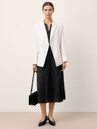 - Tissu mélangé Lin-Tencel : Texture respirante et anti-plis assurant un confort toute la journée avec un tombé luxueux.